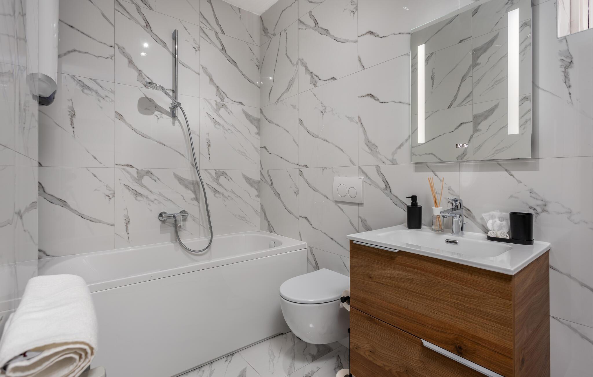Badezimmer 8m2 (nr. 2) - WC. Warmes und kaltes Wasser. Badewanne