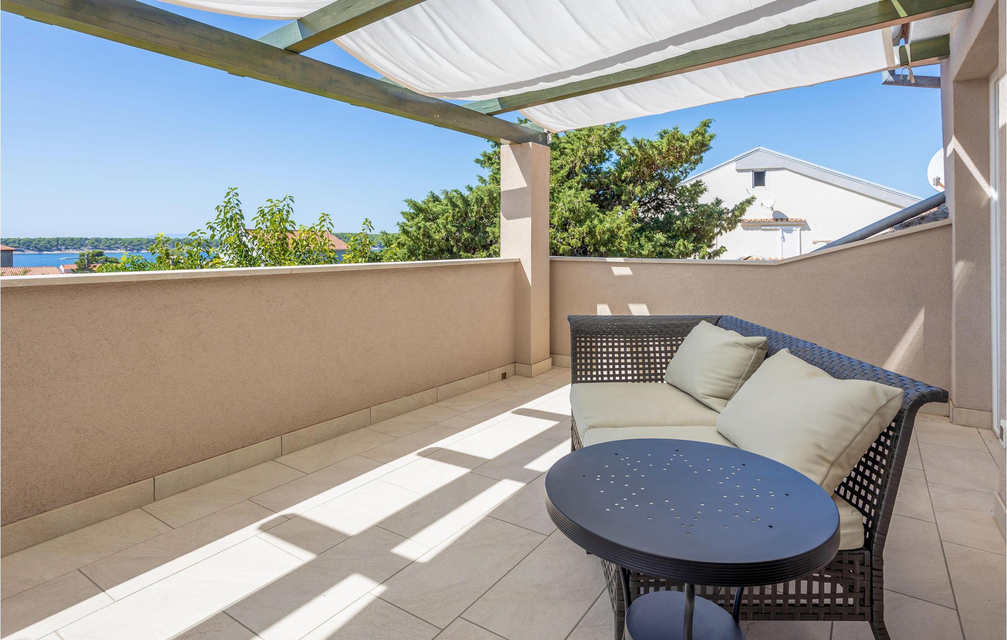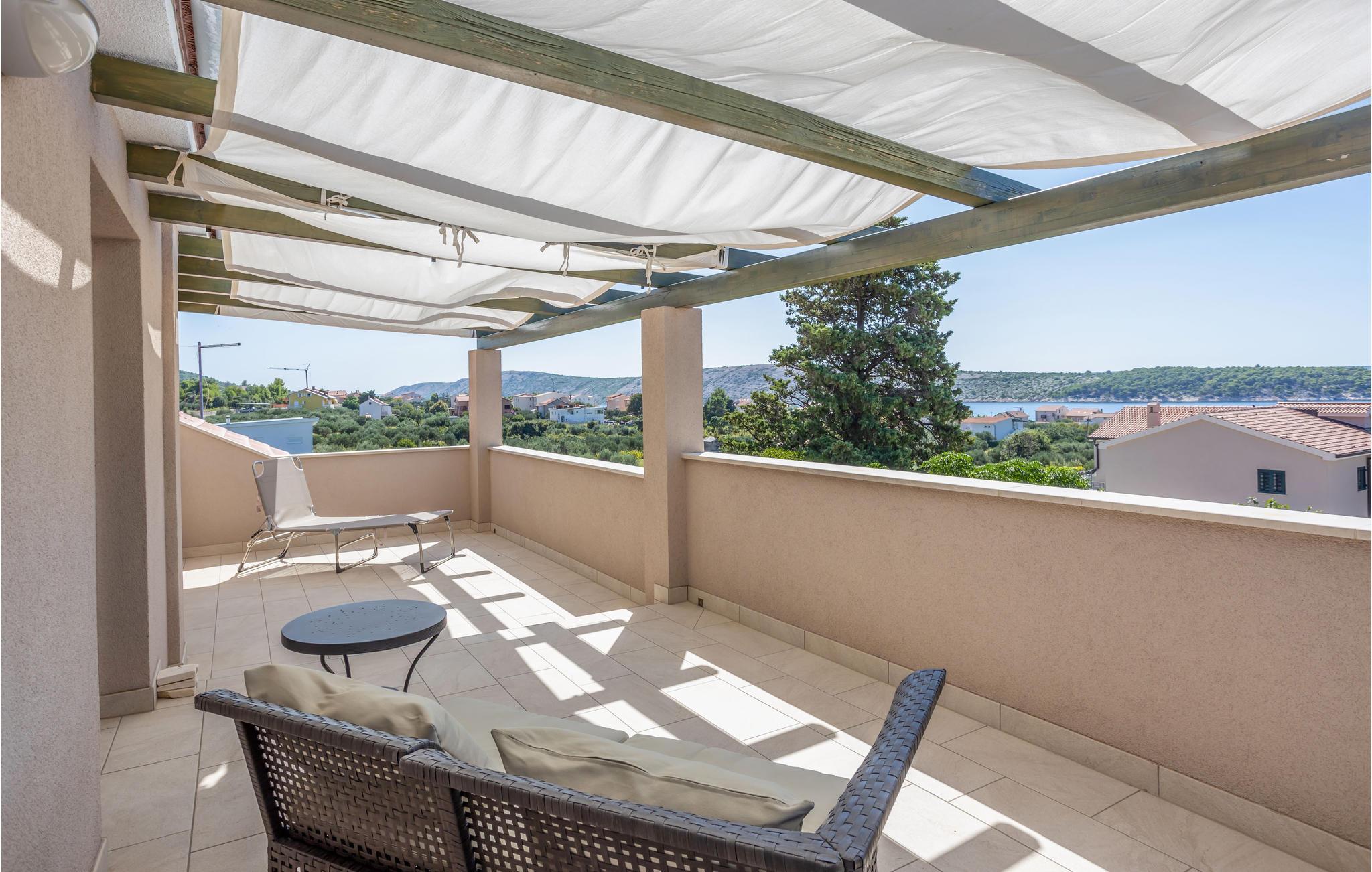 Lassen Sie sich auch auf der oberen Terrasse vom Meerblick verzaubern, auf der Terrasse im Erdgeschoss können Sie grillen und gemütlich im Freien zu Abend essen.