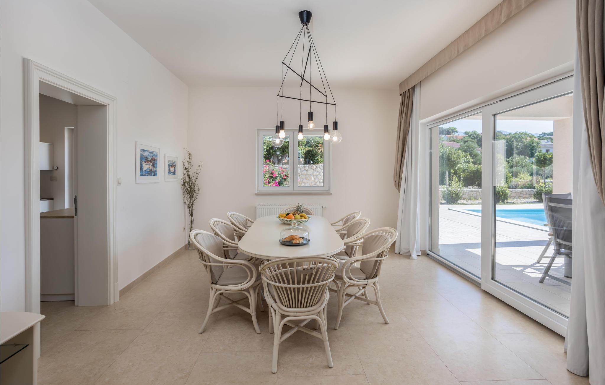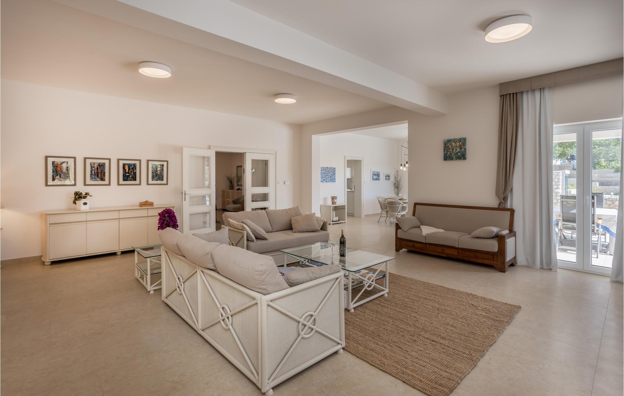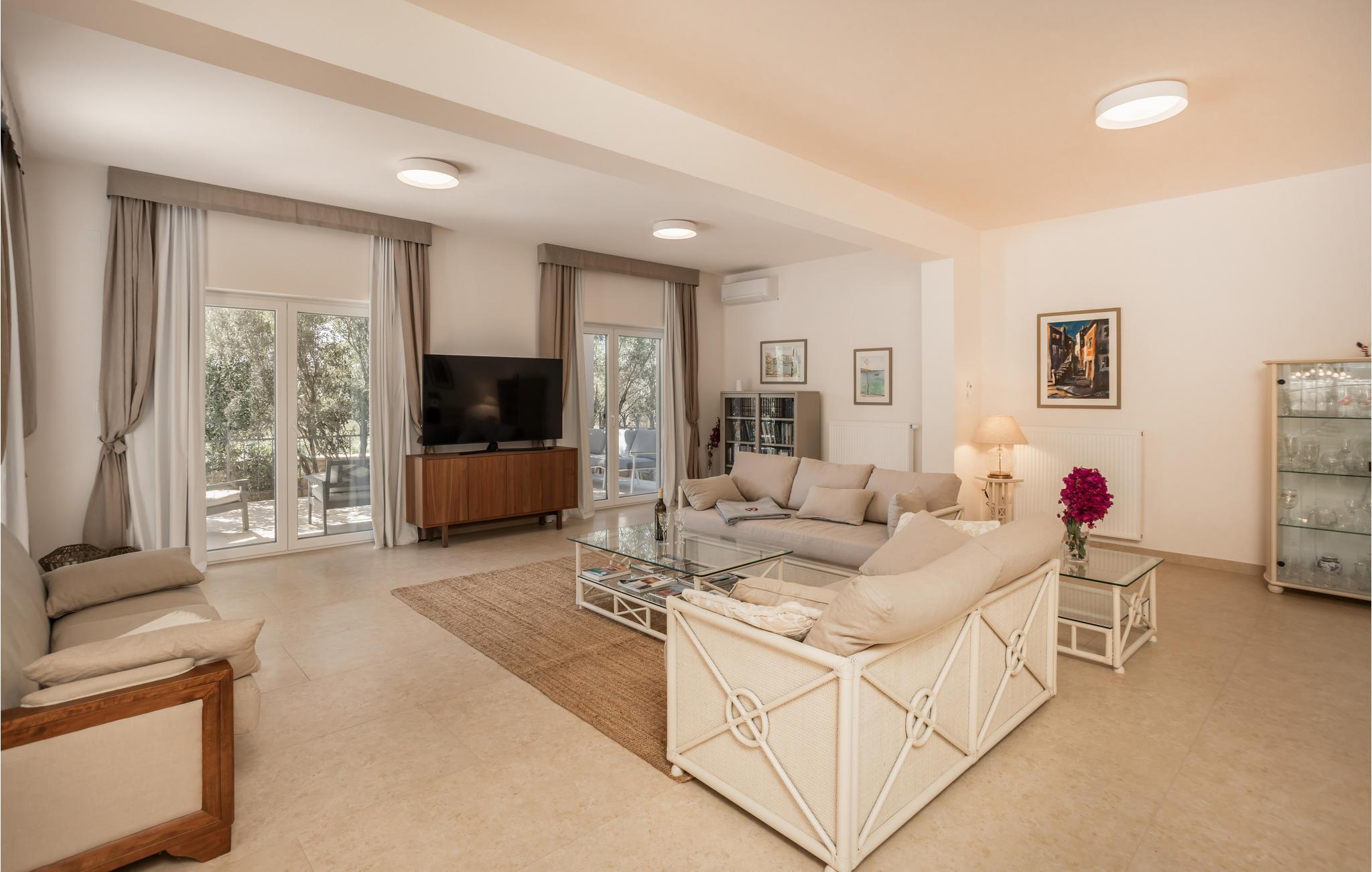 Willkommen in dem einladenden Haus, das mit seiner komfortablen Ausstattung und der tollen Panoramalage begeistert. Dezente Farben und eine stilvolle Einrichtung bilden hier den Rahmen für eine gelungene Auszeit. Entspannen Sie in ansprechendem Ambiente, speisen Sie am langen Esstisch mit schönem Blick auf den Pool und freuen Sie sich auf gemütliche Abende in Ihrer Urlaubsoase, das bequeme Sofa lädt zum Plaudern ein.