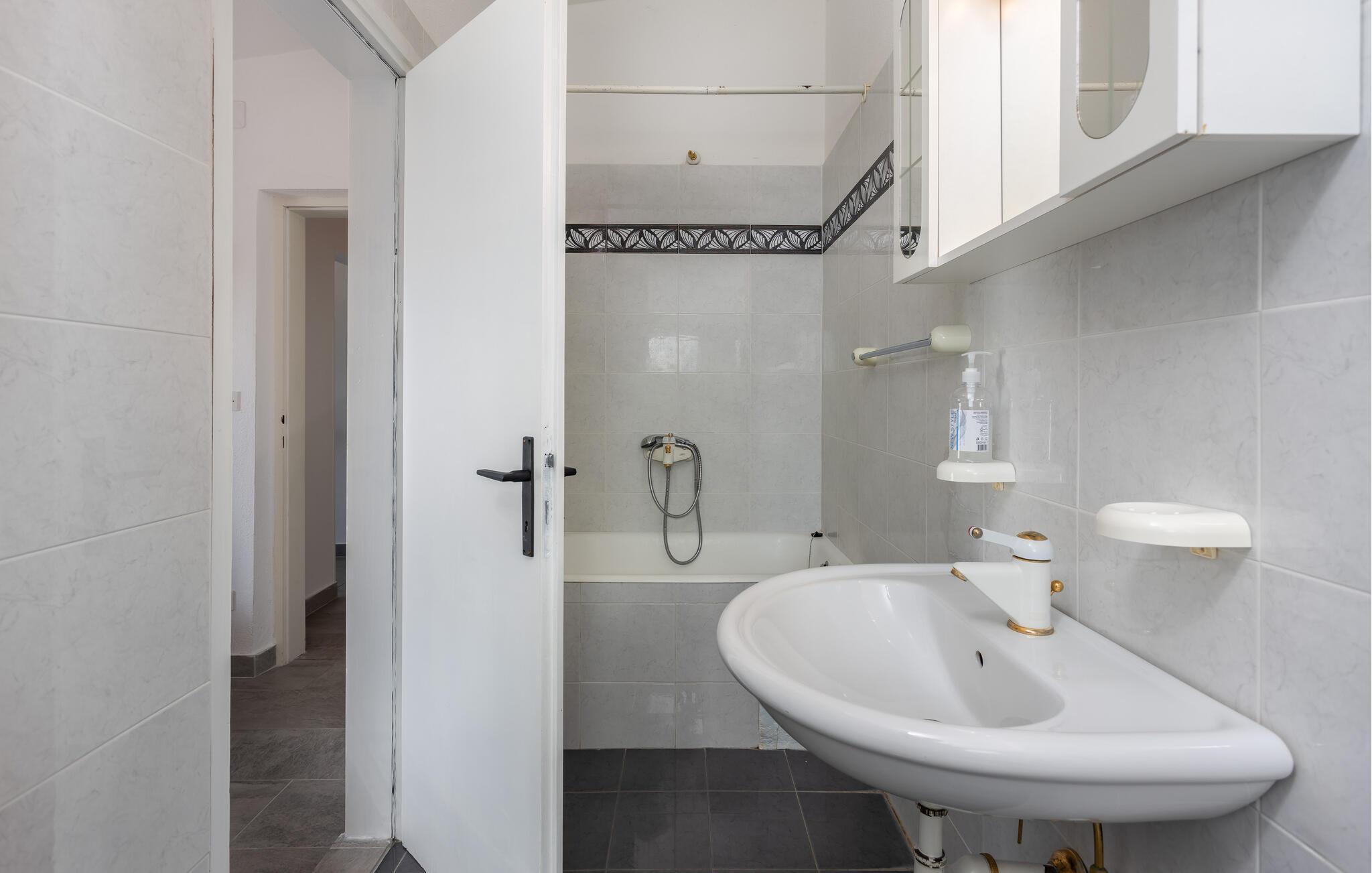 Ihre moderne Unterkunft bietet Ihnen und Ihren Liebsten den idealen Ort für einen entspannten Urlaub am Meer. Starten Sie Ihren Tag auf der überdachten Terrasse, wo Sie beim Frühstück den Blick über die mediterrane Landschaft genießen können. Die Terrasse ist ideal, um die frische Luft und das angenehme Klima schon am Morgen zu erleben. Im Inneren der Wohnung finden Sie eine stilvolle Küche, die dazu einlädt, leckere Gerichte nach Ihrem Geschmack zuzubereiten. Nehmen Sie Platz am Esstisch und genießen Sie Ihre Mahlzeiten in gemütlicher Atmosphäre. Die Wohnung ist funktional und geschmackvoll eingerichtet und sorgt für ein behagliches Wohngefühl.