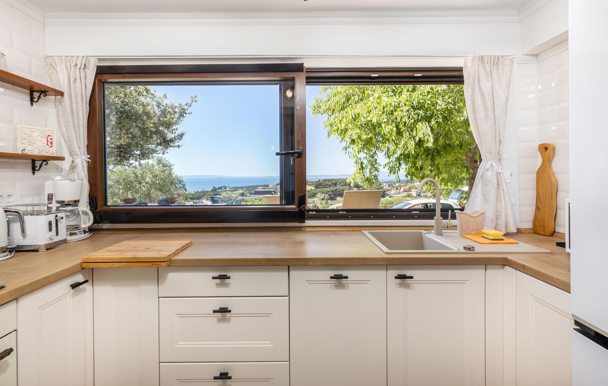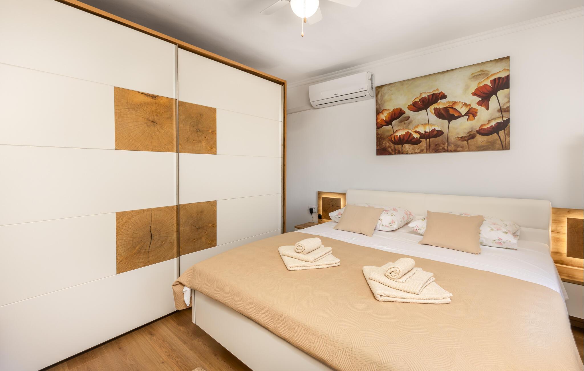 In diesem geschmackvollen Ferienhaus auf der Insel Rab genießen Sie eine Auszeit mit herrlicher Aussicht auf das Meer. Die lichtdurchfluteten Räume sorgen für eine angenehme Atmosphäre, während die stilvolle Einrichtung Komfort und Wohlbefinden vereint. In der gut ausgestatteten Küche können Sie mit Blick auf das Wasser und die Insel kulinarische Köstlichkeiten zubereiten. Die komfortablen Schlafzimmer laden Sie zum Entspannen ein.