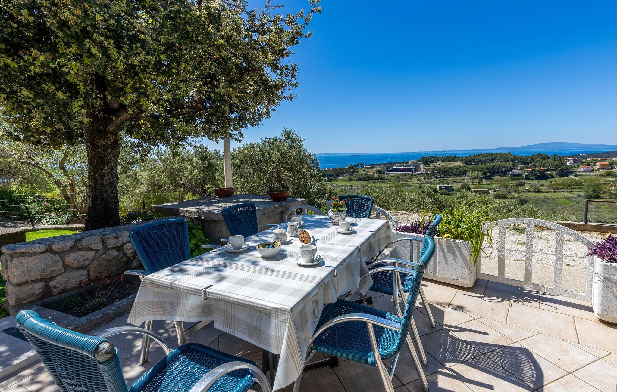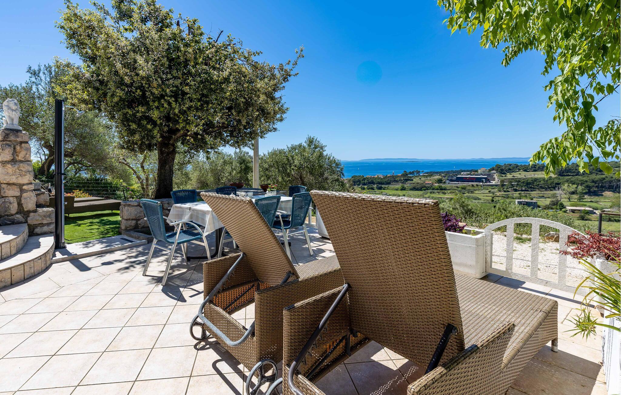Besonders einladend ist die großzügige Terrasse, ideal für Mahlzeiten im Freien, Sonnenbäder oder einfach, um die atemberaubende Kulisse zu genießen.