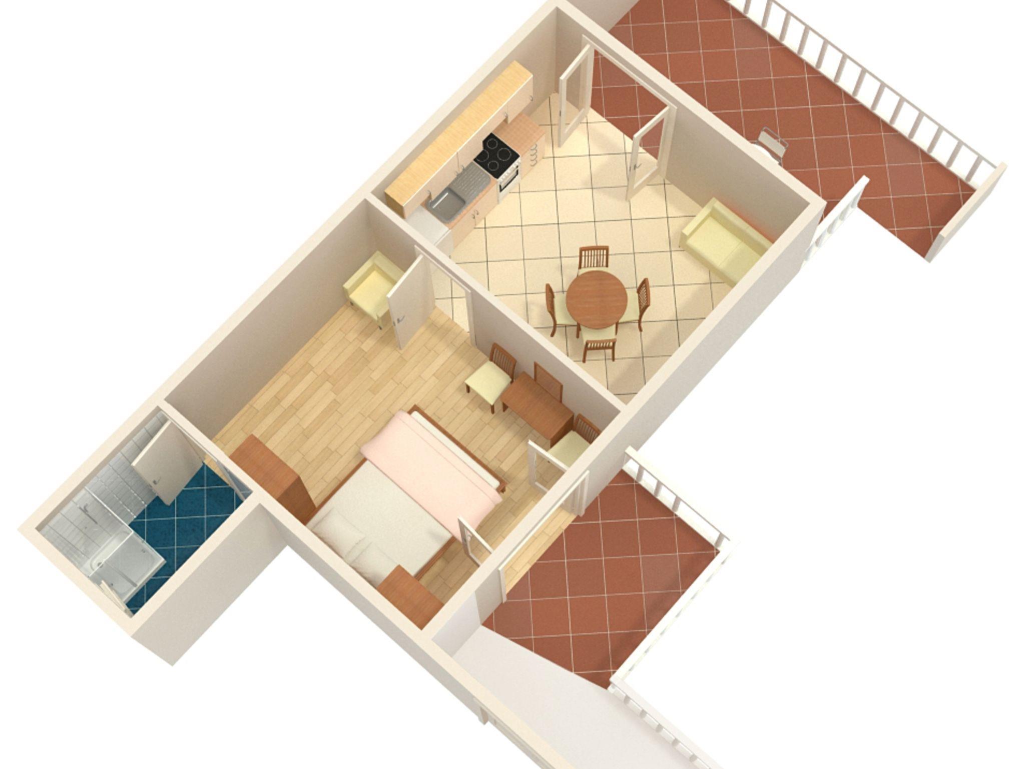 Ferienwohnung bietet Platz für 3 Gäste. Die Betten sind in Schlafzimmern, die es 1 gibt, innerhalb einer Gesamtfläche von 37m2, angeordnet. Die Gäste haben eine eigene Terrasse zur Verfügung, auf der sie in warmen Sommernächten genießen können. Das Apartment bietet Meerblick. Es ist erlaubt, Speisen auf dem Gemeinschafts-Grill vorzubereiten. In der Unterkunftseinheit besteht die Möglichkeit des Mitbringens von Haustieren gegen Aufpreis. IM PREIS INBEGRIFFEN: Kurtaxe, Endreinigung, Klimatisierung, Parkplatz, Internet, Bügeleisen, Föhn, tragbarer Grill, Liegestühle. VERBINDLICHE ZUSÄTZLICHE KOSTEN: Aufzahlung für Kurzaufenthalte (prozentualer Zuschlag pro Nächtigungsanzahl: 30% - 1, 20% - 2, 10% - 3). UNVERBINDLICHE ZUSÄTZLICHE KOSTEN: Wäschewaschen (10,00 € Waschen), Boot (180,00 € pro Nacht), Bootsanlegeplatz (15,00 € pro Nacht), Haustiere (10,00 € pro Nacht), Zusatzbett (10,00 € pro Nacht). Die Verfügbarkeit zusätzlicher Dienstleistungen in Ihrem reservierten Termin und die Preise derselben (falls nicht aufgeführt) müssen im Voraus überprüft werden. Zusätzliche Dienstleistungen die in der Zahlungsaufforderung nicht aufgeführt sind werden direkt beim Vermieter bezahlt, angenommen der Gast nutzt auch diese.