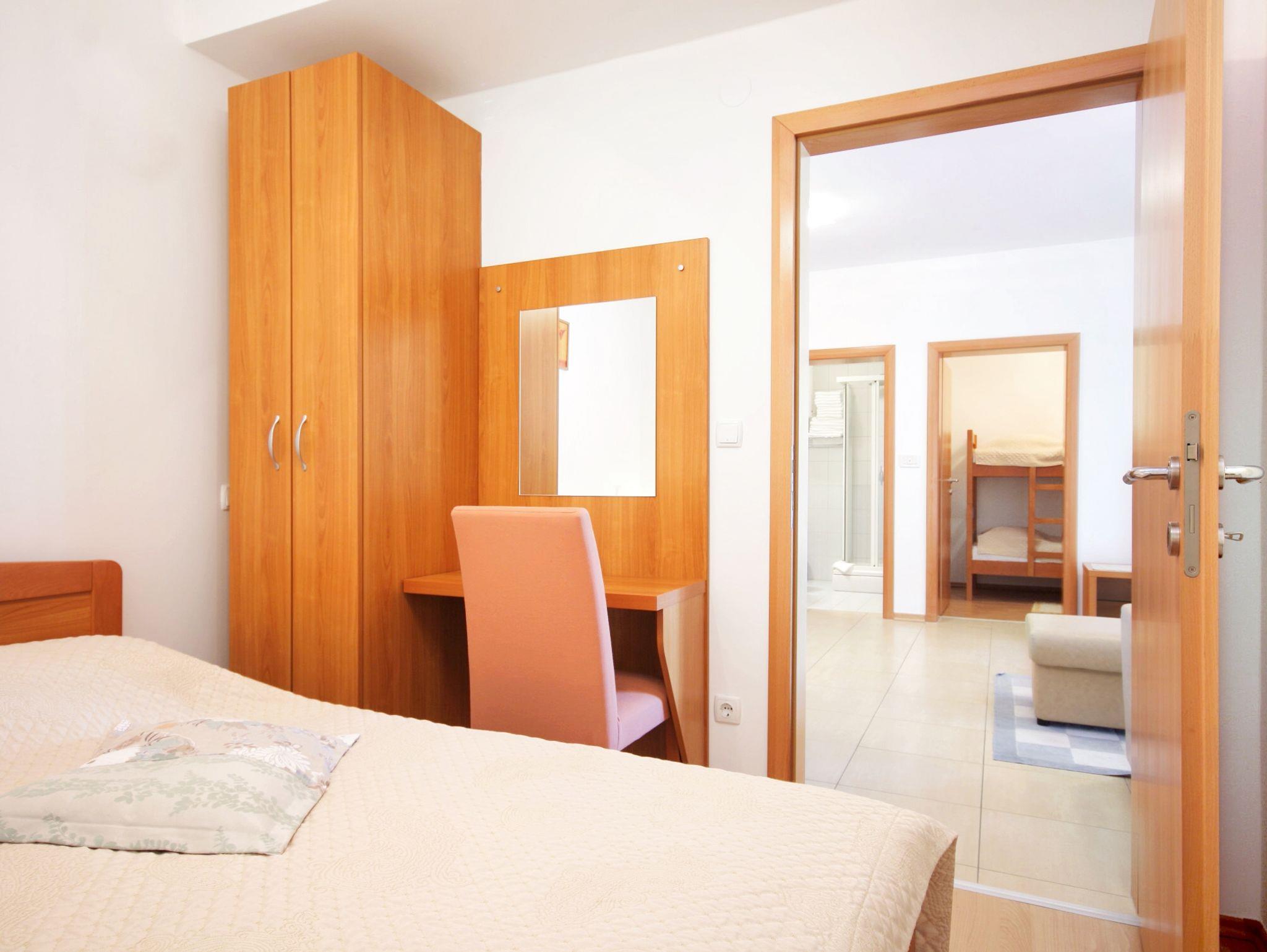 Ferienwohnung bietet Platz für 6 Gäste. Die Betten sind in Schlafzimmern, die es 2 gibt, und in Wohnzimmer, innerhalb einer Gesamtfläche von 42m2, angeordnet. Die Gäste haben eine eigene Terrasse zur Verfügung, auf der sie in warmen Sommernächten genießen können. Das Apartment bietet Meerblick. Es ist erlaubt, Speisen auf dem Gemeinschafts-Grill vorzubereiten. Während ihres Aufenthalts können Gäste das gemeinsam zur Nutzung stehende Schwimmbad benutzen. In der gebuchten Unterkunftseinheit zahlt man am Ort ein Depositum ( der Preis ist an der Internetseite angeführt ). IM PREIS INBEGRIFFEN: Endreinigung, Klimatisierung, Pool, Parkplatz, Internet, Föhn. VERBINDLICHE ZUSÄTZLICHE KOSTEN: Kurtaxe (Erwachsene 0,93 € - 1,90 € Nacht/Person, Kinderermäßigung 12 - 17 Jahre), Kaution (100,00 € Einmalzahlung). Die Verfügbarkeit zusätzlicher Dienstleistungen in Ihrem reservierten Termin und die Preise derselben (falls nicht aufgeführt) müssen im Voraus überprüft werden. Zusätzliche Dienstleistungen die in der Zahlungsaufforderung nicht aufgeführt sind werden direkt beim Vermieter bezahlt, angenommen der Gast nutzt auch diese.