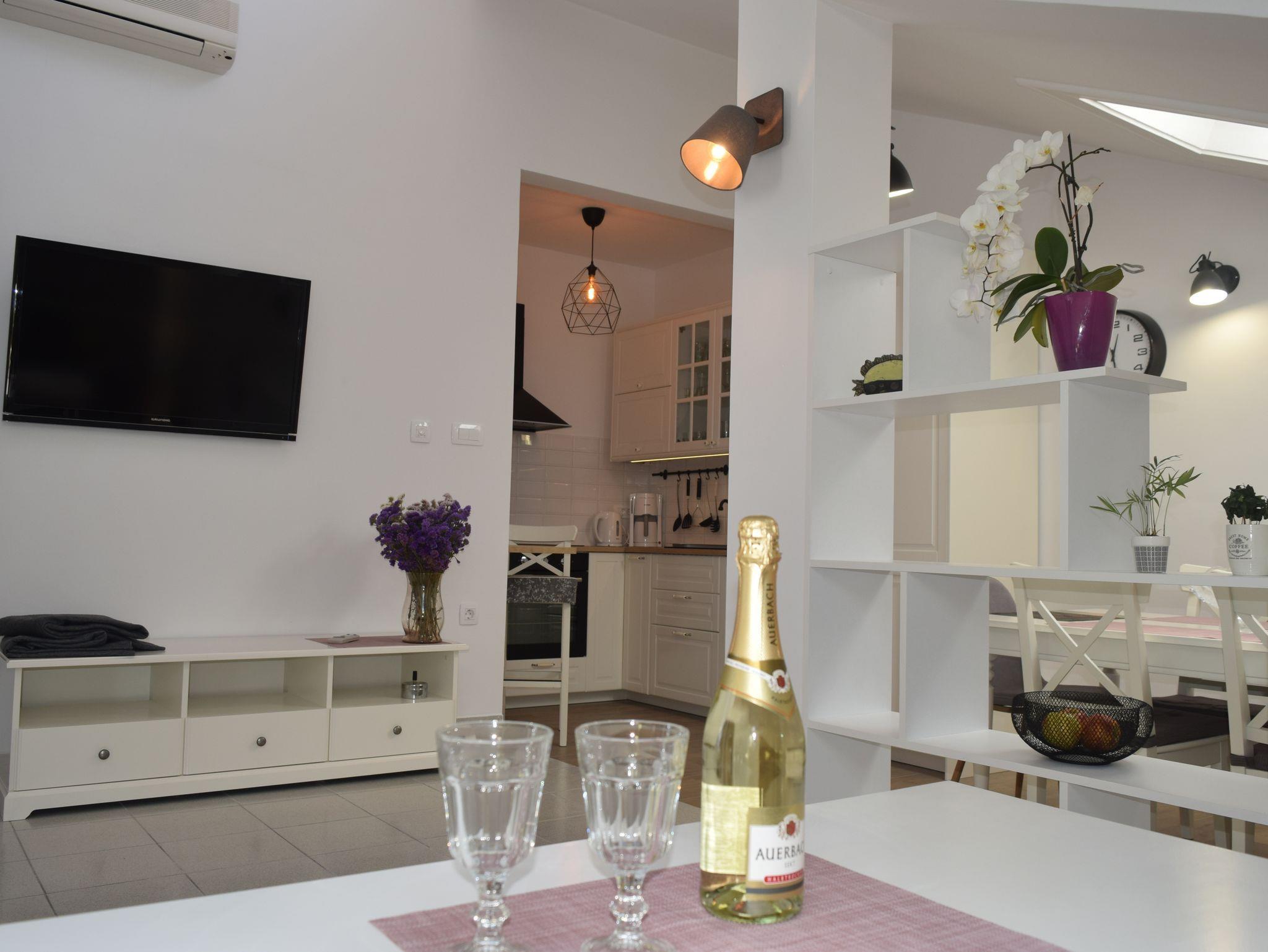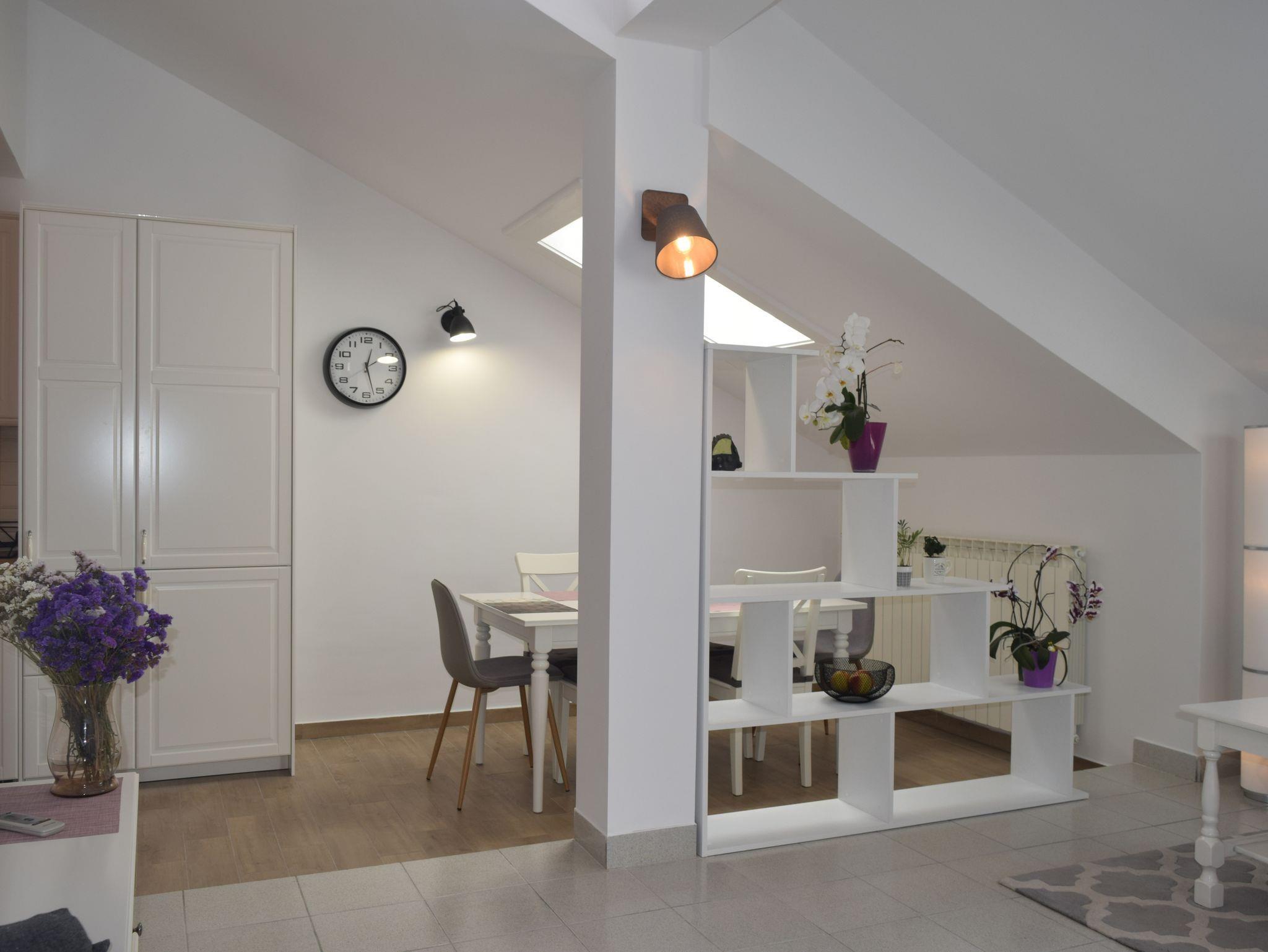 Ferienwohnung bietet Platz für 6 Gäste. Die Betten sind in Schlafzimmern, die es 3 gibt, innerhalb einer Gesamtfläche von 94m2, angeordnet. Die Gäste haben eine eigene Terrasse zur Verfügung, auf der sie in warmen Sommernächten genießen können. Das Apartment bietet Meerblick. Es ist erlaubt, Speisen auf dem Gemeinschafts-Grill vorzubereiten. IM PREIS INBEGRIFFEN: Kurtaxe, Endreinigung, Klimatisierung, Parkplatz, Internet, Kinderbett. VERBINDLICHE ZUSÄTZLICHE KOSTEN: Aufzahlung für Kurzaufenthalte (prozentualer Zuschlag pro Nächtigungsanzahl: 30% - 1, 20% - 2, 10% - 3). UNVERBINDLICHE ZUSÄTZLICHE KOSTEN: Frühstück (10,00 €, 50% Nachlass für Kinder zwischen 4 und 12 Jahren, Kinder bis 4 Jahre sind frei.), Wäschewaschen (3,00 € Waschen), Bootsanlegeplatz (10,00 € pro Nacht). Die Verfügbarkeit zusätzlicher Dienstleistungen in Ihrem reservierten Termin und die Preise derselben (falls nicht aufgeführt) müssen im Voraus überprüft werden. Zusätzliche Dienstleistungen die in der Zahlungsaufforderung nicht aufgeführt sind werden direkt beim Vermieter bezahlt, angenommen der Gast nutzt auch diese.