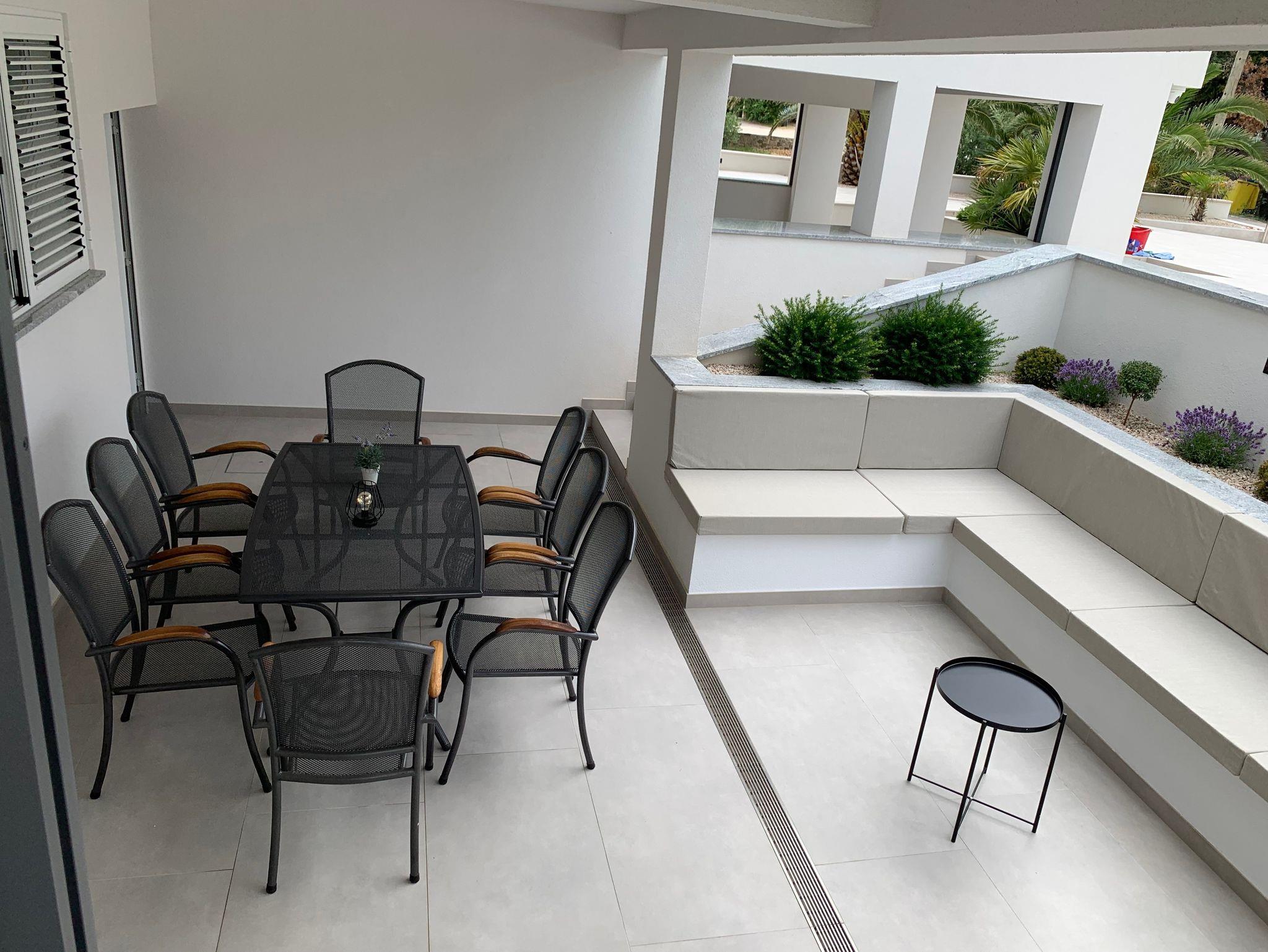 Ferienwohnung bietet Platz für 8 Gäste. Die Betten sind in Schlafzimmern, die es 3 gibt, und in Wohnzimmer, innerhalb einer Gesamtfläche von 74m2, angeordnet. Die Gäste haben eine eigene Terrasse zur Verfügung, auf der sie in warmen Sommernächten genießen können. Es ist erlaubt, Speisen auf dem Gemeinschafts-Grill vorzubereiten. IM PREIS INBEGRIFFEN: Kurtaxe, Endreinigung, Klimatisierung, Parkplatz, Internet. VERBINDLICHE ZUSÄTZLICHE KOSTEN: Aufzahlung für Kurzaufenthalte (prozentualer Zuschlag pro Nächtigungsanzahl: 30% - 1, 20% - 2, 10% - 3). UNVERBINDLICHE ZUSÄTZLICHE KOSTEN: Bootsanlegeplatz (25,00 € pro Nacht). Die Verfügbarkeit zusätzlicher Dienstleistungen in Ihrem reservierten Termin und die Preise derselben (falls nicht aufgeführt) müssen im Voraus überprüft werden. Zusätzliche Dienstleistungen die in der Zahlungsaufforderung nicht aufgeführt sind werden direkt beim Vermieter bezahlt, angenommen der Gast nutzt auch diese.