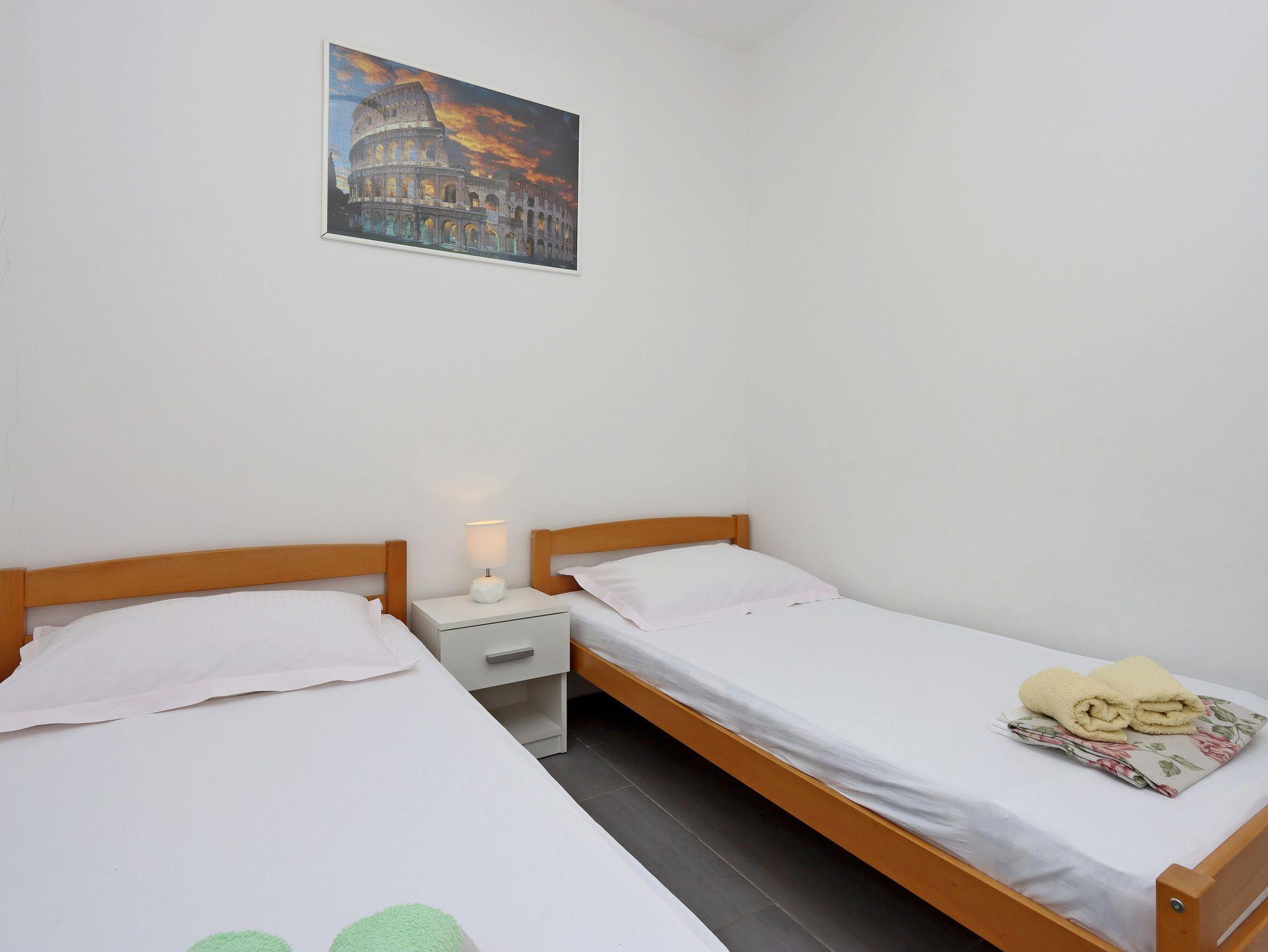 Ferienwohnung bietet Platz für 8 Gäste. Die Betten sind in Schlafzimmern, die es 4 gibt, innerhalb einer Gesamtfläche von 79m2, angeordnet. Die Gäste haben eine eigene Terrasse zur Verfügung, auf der sie in warmen Sommernächten genießen können. Das Apartment bietet Meerblick. Es ist erlaubt, Speisen auf dem Gemeinschafts-Grill vorzubereiten. IM PREIS INBEGRIFFEN: Kurtaxe, Endreinigung, Klimatisierung, Parkplatz, Internet, Bootsanlegeplatz, Bügeleisen, Bügelbrett, Föhn. Die Verfügbarkeit zusätzlicher Dienstleistungen in Ihrem reservierten Termin und die Preise derselben (falls nicht aufgeführt) müssen im Voraus überprüft werden. Zusätzliche Dienstleistungen die in der Zahlungsaufforderung nicht aufgeführt sind werden direkt beim Vermieter bezahlt, angenommen der Gast nutzt auch diese.