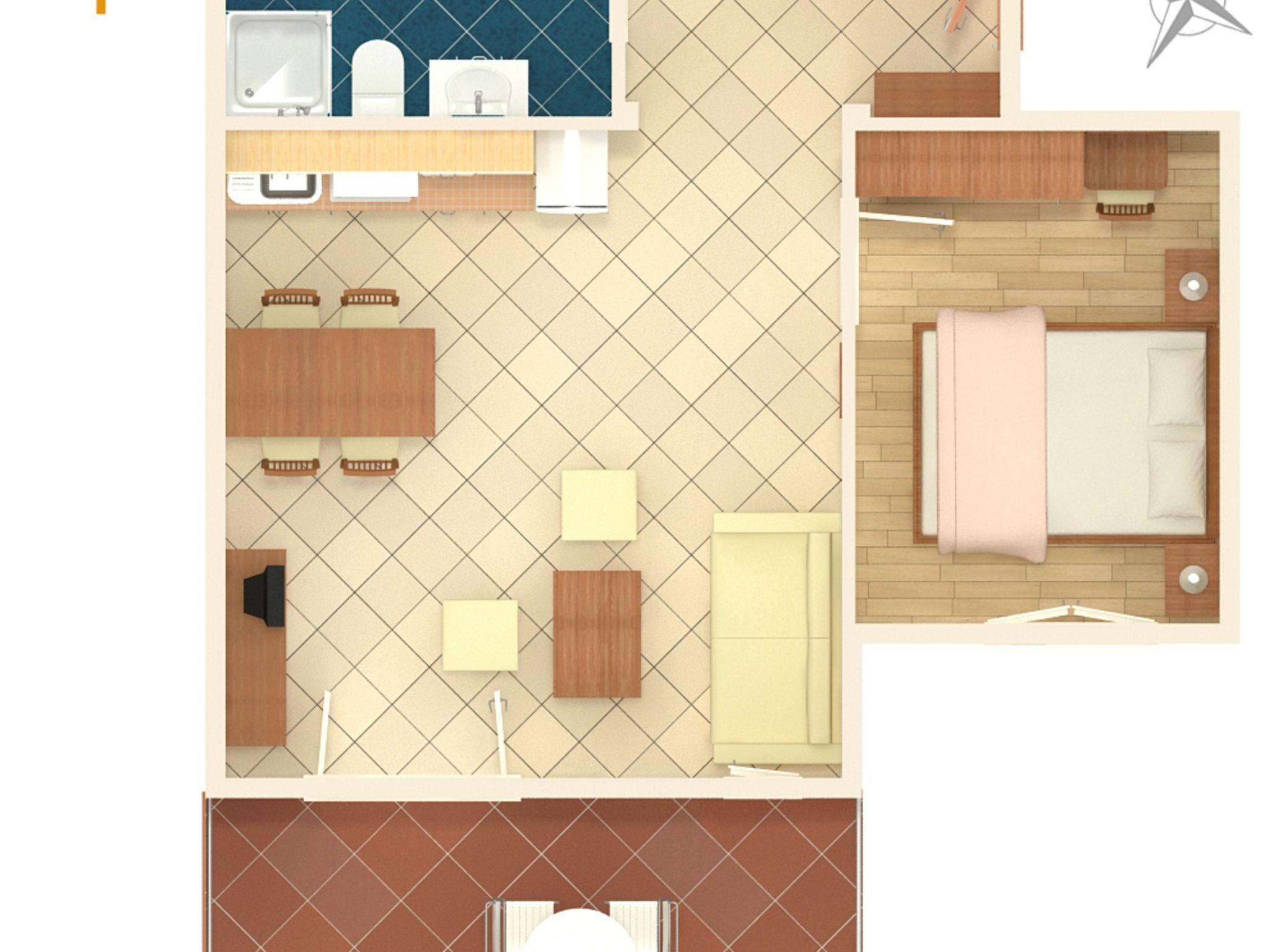 Ferienwohnung bietet Platz für 4 Gäste. Die Betten sind in Schlafzimmern, die es 1 gibt, und in Wohnzimmer, innerhalb einer Gesamtfläche von 39m2, angeordnet. Die Gäste haben eine eigene Terrasse zur Verfügung, auf der sie in warmen Sommernächten genießen können. Es ist erlaubt, Speisen auf dem Gemeinschafts-Grill vorzubereiten. Während ihres Aufenthalts können Gäste das gemeinsam zur Nutzung stehende Schwimmbad benutzen. In der gebuchten Unterkunftseinheit zahlt man am Ort ein Depositum ( der Preis ist an der Internetseite angeführt ). IM PREIS INBEGRIFFEN: Endreinigung, Klimatisierung, Pool, Parkplatz, Internet, Föhn. VERBINDLICHE ZUSÄTZLICHE KOSTEN: Kurtaxe (Erwachsene 0,93 € - 1,90 € Nacht/Person, Kinderermäßigung 12 - 17 Jahre), Kaution (100,00 € Einmalzahlung). Die Verfügbarkeit zusätzlicher Dienstleistungen in Ihrem reservierten Termin und die Preise derselben (falls nicht aufgeführt) müssen im Voraus überprüft werden. Zusätzliche Dienstleistungen die in der Zahlungsaufforderung nicht aufgeführt sind werden direkt beim Vermieter bezahlt, angenommen der Gast nutzt auch diese.