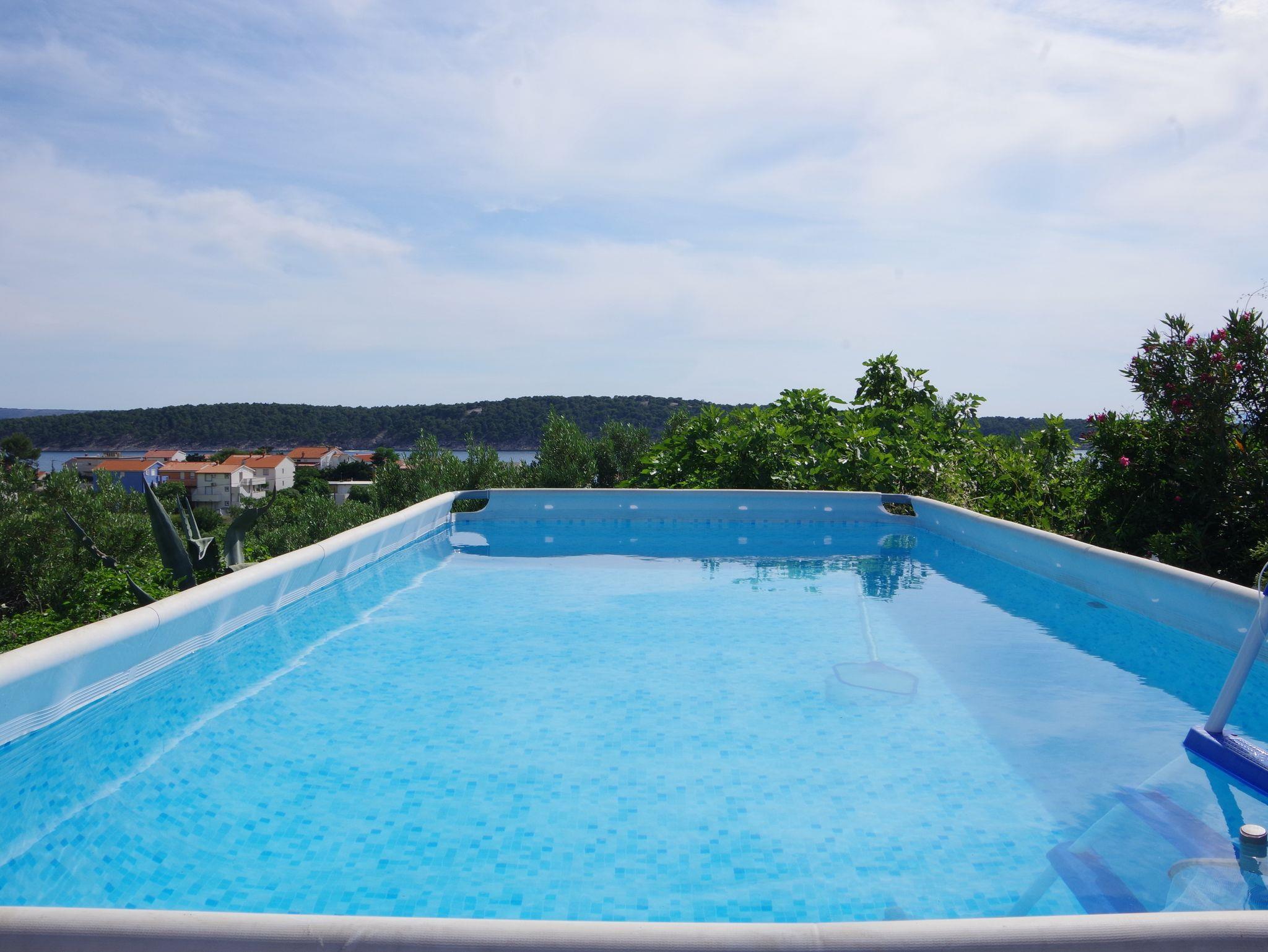 Hof (550m2, Kinderbereich, Sitzbereich), Parkplatz (Anzahl der Parkplätze: 8, Entfernung vom Objekt: im Hof), Pool: gemeinsam, Dimensionen: 6m x 2.5m x 1m, Wassertyp: Süßwasser, Grill: gemeinsam, WiFi Internet, Sonnenschirm, Kinderbett