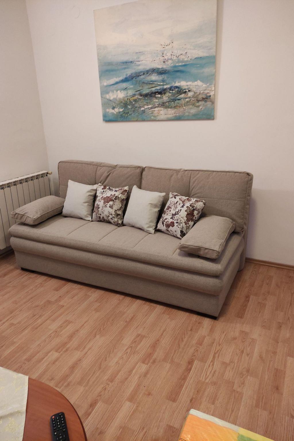 Unsere Wohnung liegt im Erdgeschoss, ist 35 m2 groß und im modernen Stil eingerichtet. Die Wohnung verfügt über eine überdachte Terrasse von ca. 10 m2 und einen Bereich mit Tisch und Stühlen. Die Wohnung verfügt über ein Schlafzimmer mit Doppelbett, ein Badezimmer, eine Küche mit Essbereich und ein Wohnzimmer.