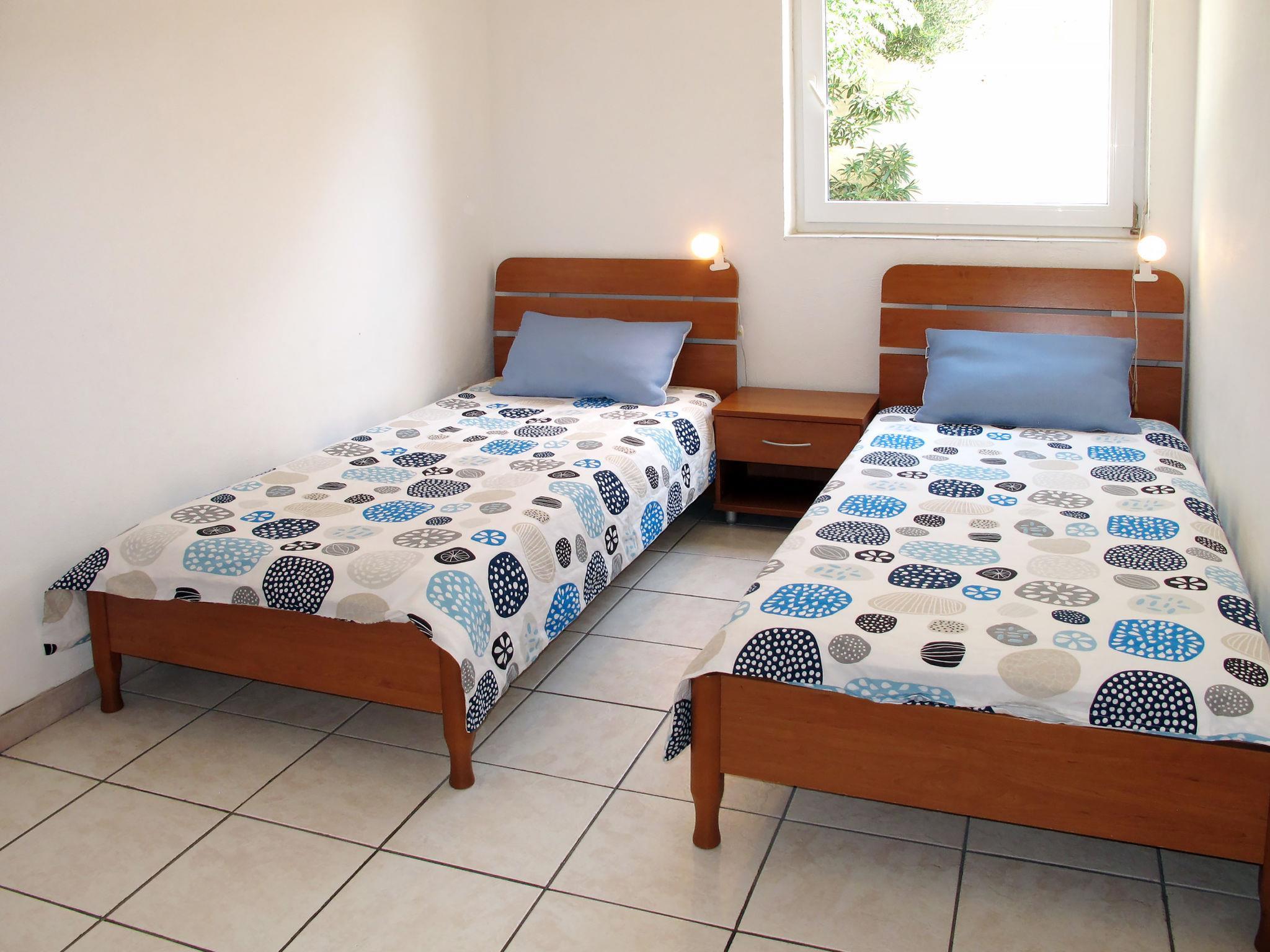 "Andrea", 6-Zimmer-Wohnung 97 m2, im Erdgeschoss. Wohn-/Esszimmer mit Küchenblock, Sat-TV und Klimaanlage. Ausgang zur Terrasse. 1 Zimmer mit 1 Doppelbett (2 x 80 cm, Länge 200 cm). 1 Zimmer mit 2 Betten (90 cm, Länge 200 cm). Wohn-/Esszimmer mit Sat-TV und Klimaanlage. Ausgang zur Terrasse. 1 Zimmer mit 1 Doppelbett (2 x 80 cm, Länge 200 cm). 1 Zimmer mit 2 Betten (90 cm, Länge 200 cm). Offene Küche (2 Kochplatten, Geschirrspüler, Toaster, Wasserkocher, Mikrowelle, elektrische Kaffeemaschine). 2 Duschen/WC. Keine Heizmöglichkeit. 2 Terrassen überdacht. Terrassenmöbel. Sicht auf das Meer. Zur Verfügung: Waschmaschine. Internet (Wireless LAN, gratis). Maximal 2 Haustiere/Hunde erlaubt. Das Apartment besteht aus zwei Wohnungen, vermietet als eine Einheit. Jede Ferienwohnung mit Wohn-/Esszimmer, offener Küche und 2 Schlafzimmern.