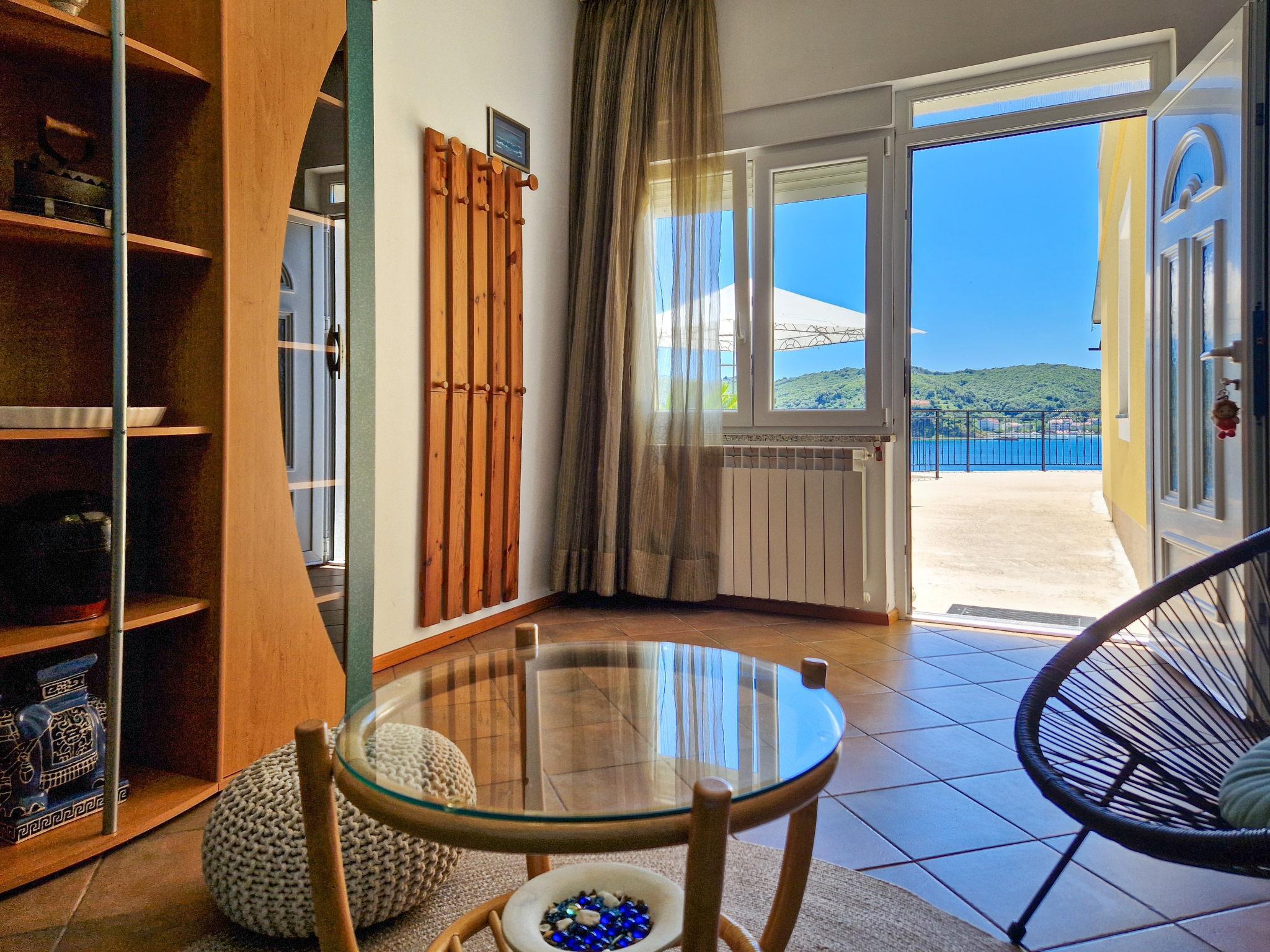 2-Zimmer-Wohnung 43 m2, im Erdgeschoss. Wohn-/Esszimmer mit 1 Doppeldiwanbett (160 cm, Länge 200 cm), Sat-TV und Klimaanlage. 1 Zimmer mit 1 franz. Bett (160 cm, Länge 200 cm). Offene Küche (4 Kochplatten, Backofen, Mikrowelle, Tiefkühler, elektrische Kaffeemaschine). Dusche/WC. Klimaanlage (extra). Rasen 10 m2. Terrassenmöbel. Sicht auf das Meer. Zur Verfügung: Internet (Wireless LAN, gratis). Bitte beachten: Maximal 1 Haustier/Hund erlaubt. Eigener Eingang. Das Fenster im Schlafzimmer zeigt zur Wand.