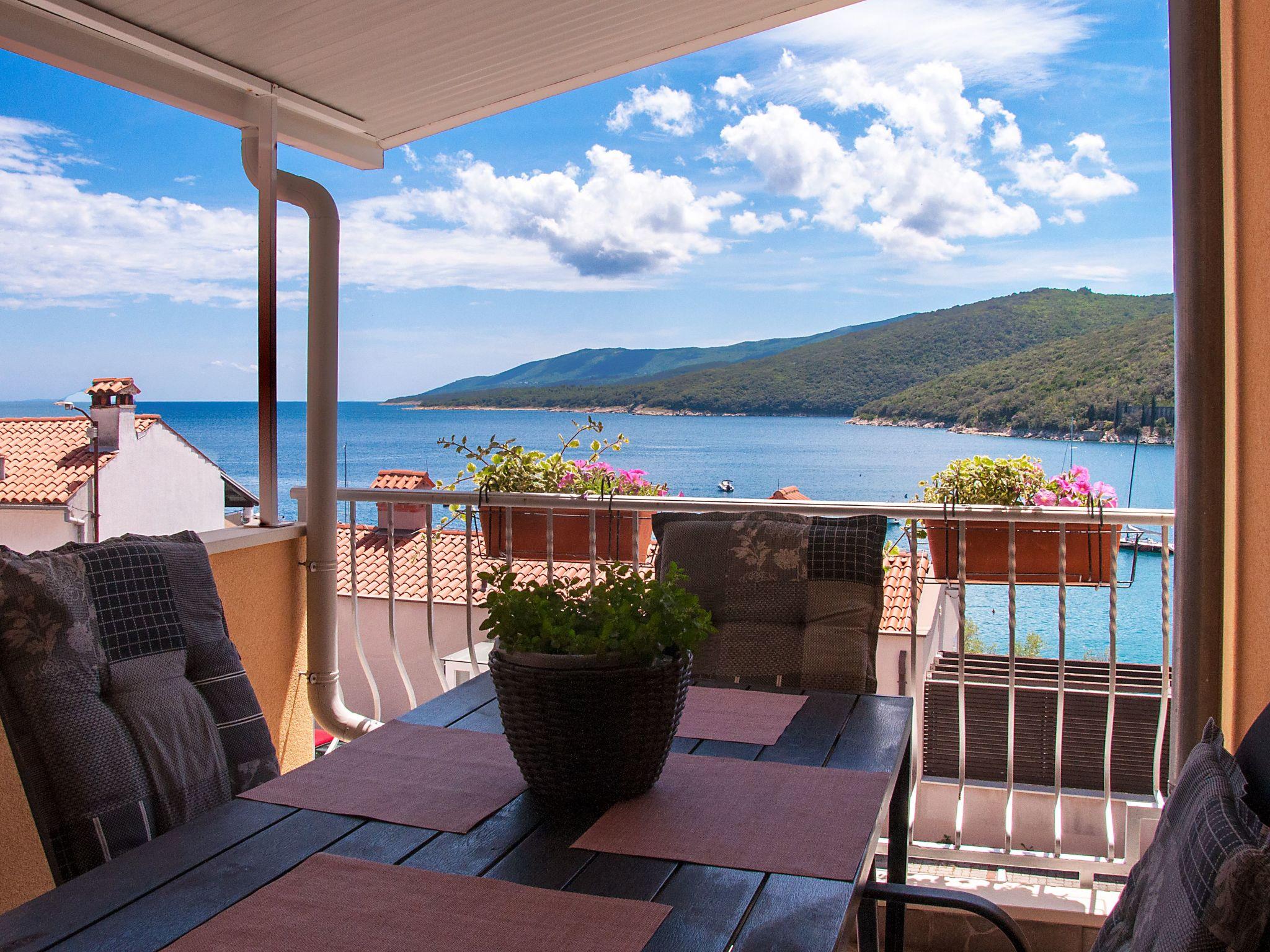 Treten Sie hinaus auf den Balkon, einen intimen Ort, an dem das leise Rauschen des Meeres und die sanfte Brise eine Symphonie der Ruhe schaffen. Dieser Außenbereich lädt Sie dazu ein, Ihren Morgenkaffee zu genießen oder sich abends mit einem Buch zu entspannen, und bietet einen privaten Blick auf das pulsierende Leben von Rabac.