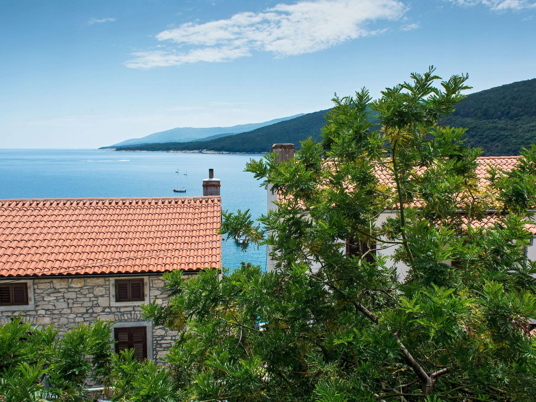 Der Außenbereich der Wohnung ist eine schöne Erweiterung des Wohnbereichs. Eine große, teilweise über dem Appartement liegende Terrasse mit Meerblick wird mit dem Eigentümer geteilt und bietet einen herrlichen Platz zum Entspannen und Genießen der ruhigen Umgebung. Obwohl das Grillen nicht erlaubt ist, ist dieser Ort im Freien perfekt, um einen Morgenkaffee oder ein abendliches Glas Wein zu genießen, umhüllt von der sanften Meeresbrise und der ruhigen Atmosphäre von Rabac.