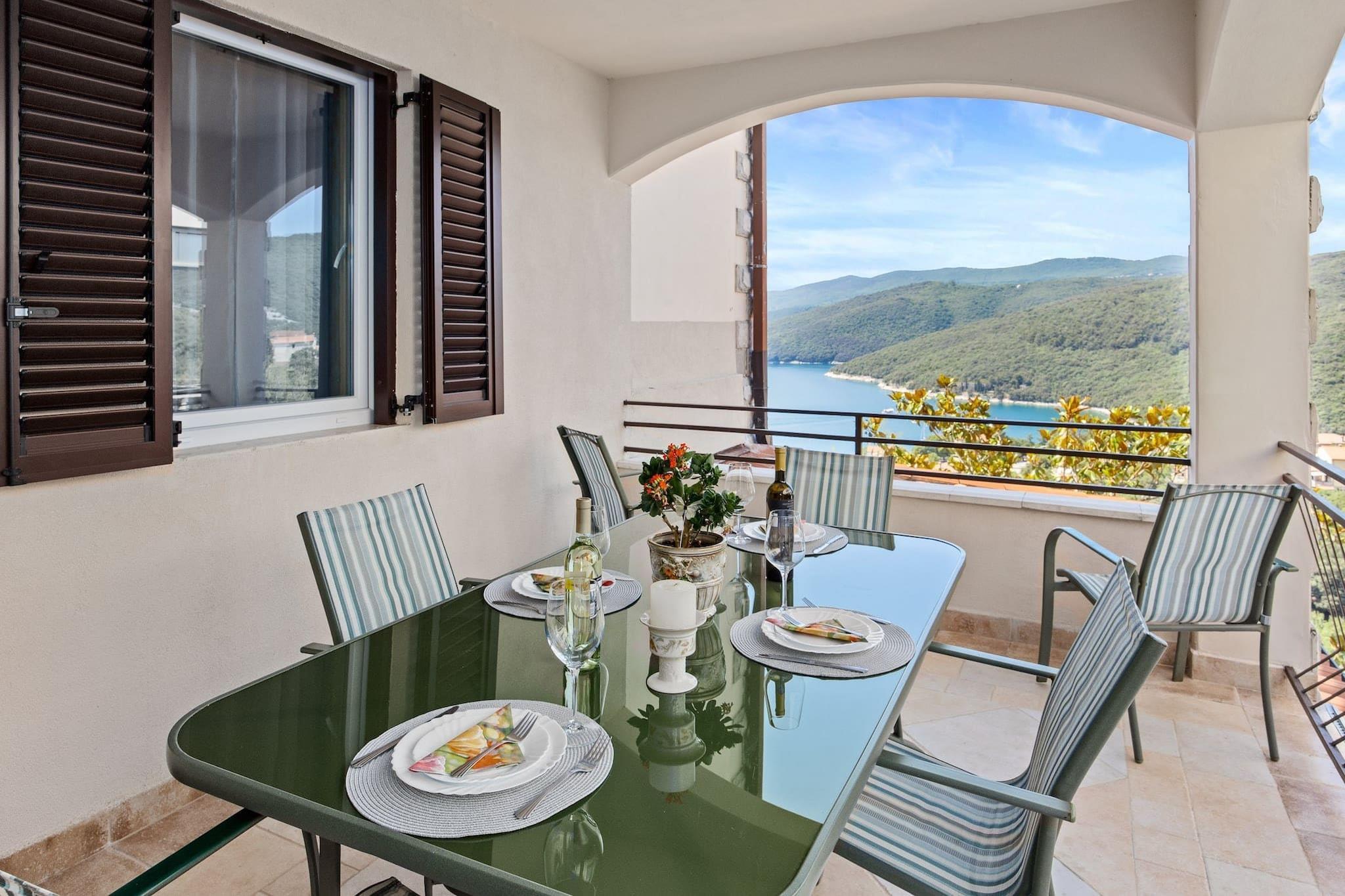 Das stilvolle Apartment Lady M White im malerischen Rabac bietet Platz für bis zu vier Gäste. Es verfügt über einen großzügigen Balkon mit Panoramablick auf das Meer, eine voll ausgestattete Küche mit Essbereich und ein eigenes Bad. Ein Schlafzimmer ist mit einem Doppelbett, die anderen beiden mit Einzelbetten ausgestattet – ideal für Familien oder kleine Gruppen. Zur Ausstattung gehören Klimaanlage, kostenloses WLAN, Sat-TV (englische Sender) und Parkplätze auf dem Gelände. Nur 400 Meter vom Strand, einem Lebensmittelgeschäft und dem beliebten Restaurant Rapcanka entfernt, bietet das Apartment Komfort und Ruhe. Die mit der Blauen Flagge ausgezeichneten Strände von Rabac – Maslinica, Sv. Andrea, Lanterna und Girandella – laden zum Schwimmen und Sonnenbaden ein. Die Strandpromenade lädt zum Radfahren, Joggen oder Skaten ein. Gäste können außerdem in der Nähe Aktivitäten wie Tauchen, Tennis, Bootsverleih und Jetskifahren nachgehen. Ob Sie auf dem Balkon entspannen oder die Küste erkunden – dieses Apartment bietet einen unvergesslichen Urlaub in Istrien.