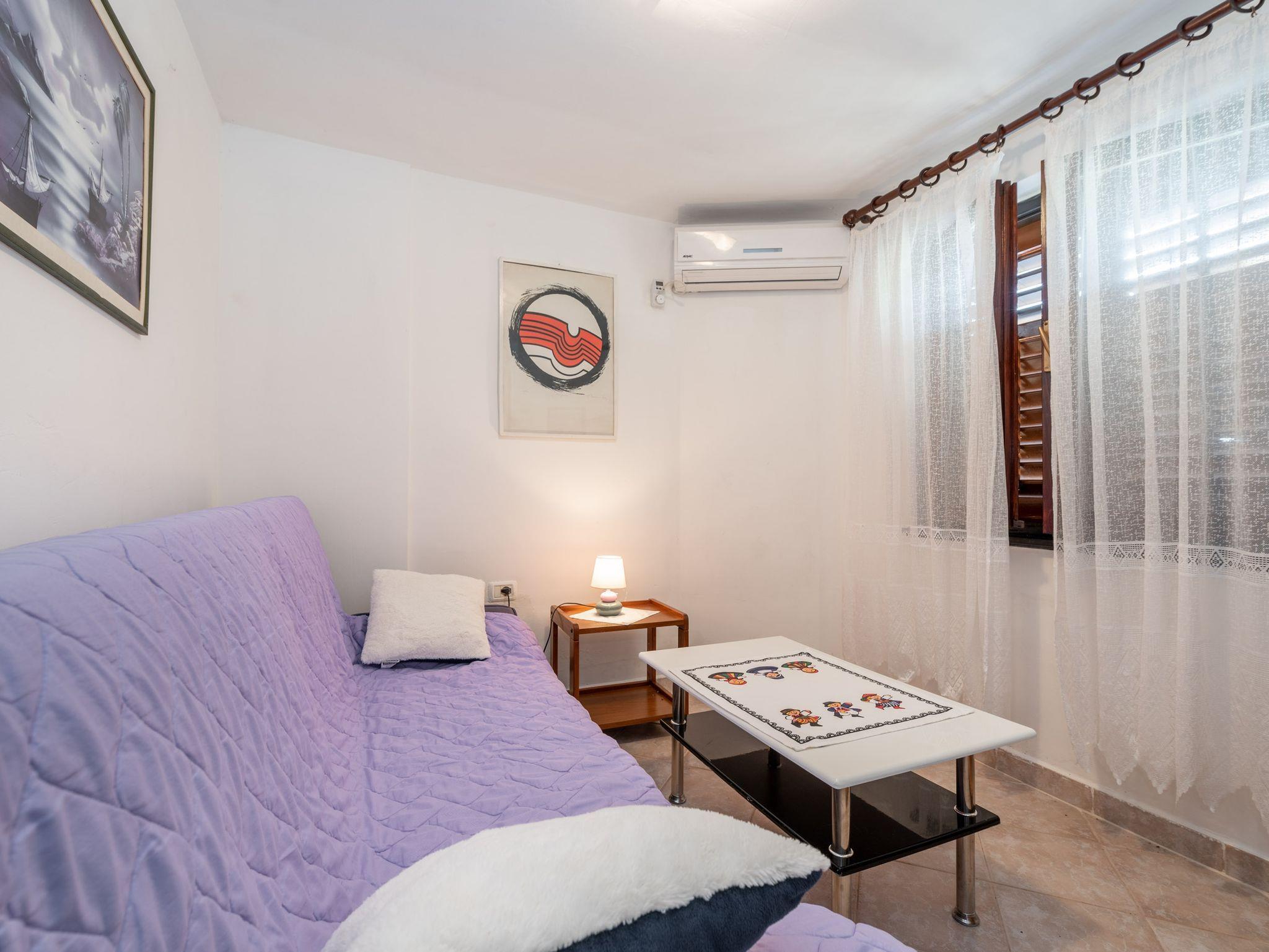 Ferienwohnung bietet Platz für 4 Gäste. Die Betten sind in Schlafzimmern, die es 1 gibt, und in Wohnzimmer, innerhalb einer Gesamtfläche von 36m2, angeordnet. Die Gäste haben eine eigene Terrasse zur Verfügung, auf der sie in warmen Sommernächten genießen können. Das Apartment bietet Meerblick. Für vollen Genuss und Entspannung gibt es einen privaten Grill für Gäste dieser Unterkunft. In der Unterkunftseinheit besteht die Möglichkeit des Mitbringens von Haustieren gegen Aufpreis. Durch die Terrasse der gebuchten Unterkunftseinheit gehen auch andere Gäste oder Vermieter. IM PREIS INBEGRIFFEN: Kurtaxe, Endreinigung, Klimatisierung, Parkplatz, Internet, Wäschewaschen, Kinderbett, Bügeleisen, Bügelbrett, Föhn. UNVERBINDLICHE ZUSÄTZLICHE KOSTEN: Haustiere (10,00 € pro Nacht). Die Verfügbarkeit zusätzlicher Dienstleistungen in Ihrem reservierten Termin und die Preise derselben (falls nicht aufgeführt) müssen im Voraus überprüft werden. Zusätzliche Dienstleistungen die in der Zahlungsaufforderung nicht aufgeführt sind werden direkt beim Vermieter bezahlt, angenommen der Gast nutzt auch diese. Ermäßigung auf den Grundpreis: Gratistag 14=13 (bei einem Aufenthalt von 14 Tagen oder mehr erhalten Sie einen Gratistag für den Aufenthalt bis 31.12.26).