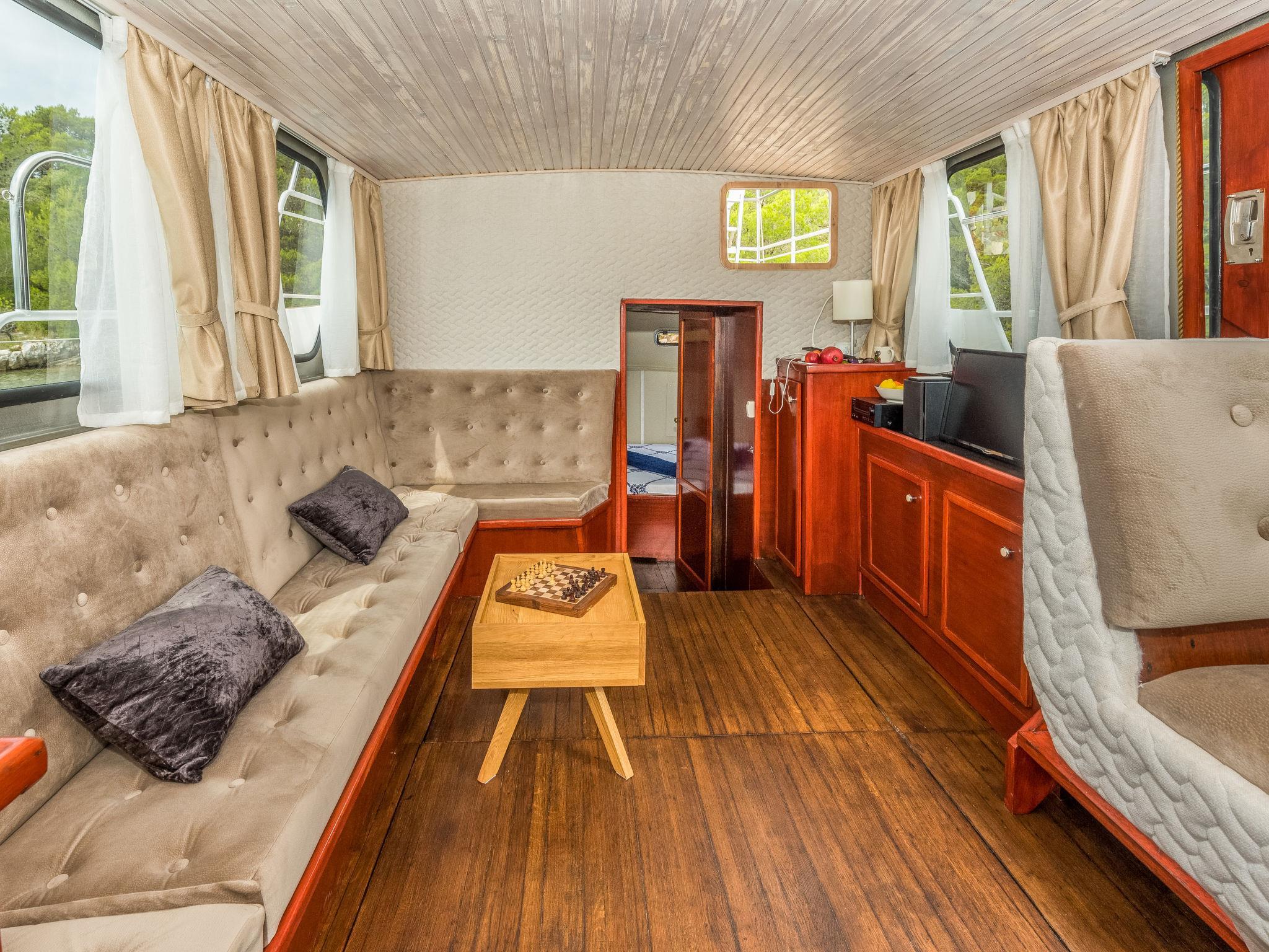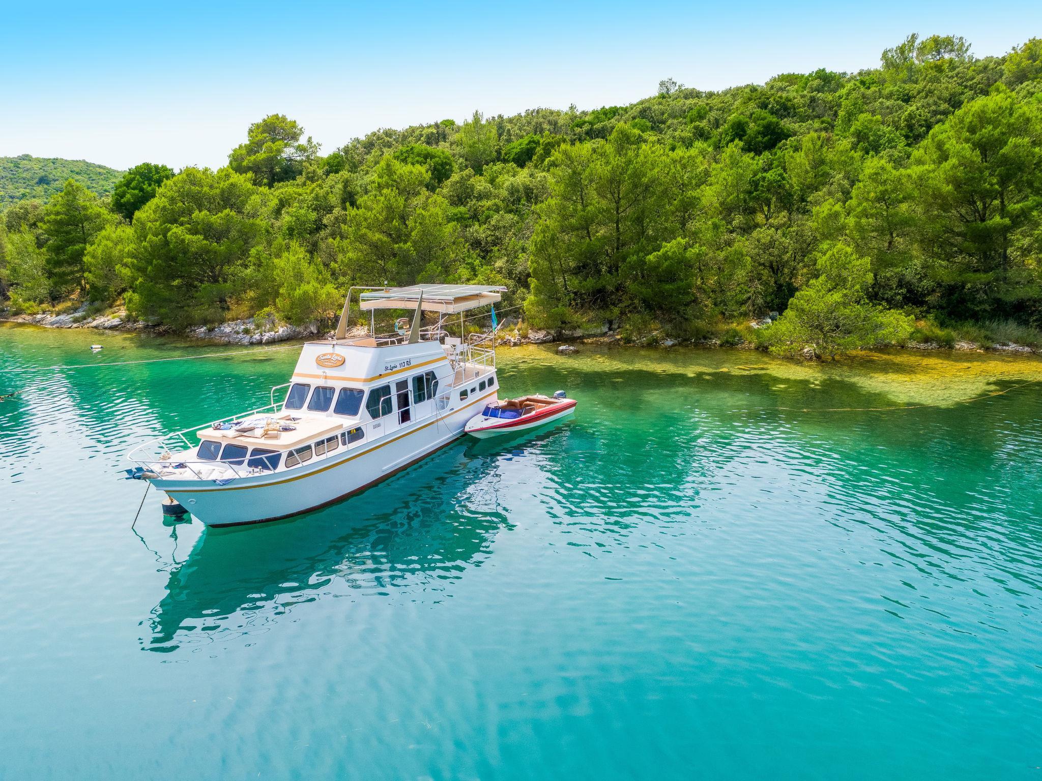 Sveti Lovrec Labinski 20 km von Rabac: Das Hausboot liegt in einer wunderschönen, geschützten und ruhigen Bucht vor Anker. Das mit Sorgfalt und Geschick renovierte Boot bietet alles für einen schönen und entspannten Urlaub. Die Städte Rabac und Labin bieten Unterhaltungsmöglichkeiten und sind in unmittelbarer Nähe. Hausboot "Santa Lucia". 16 km vom Zentrum von Labin, ruhige, sonnige Lage, direkt am Meer, direkt am Strand. Zur Alleinbenutzung: Aussendusche, Terrasse (6 m2), Gartenmöbel, Grill. Im Hause: Internetzugang. Zufahrt bis 100 m zum Haus (800 m Naturweg). Öffentliche Parkplätze 100 m. Einkaufsgeschäft, Restaurant 500 m, Bushaltestelle 18.5 km, Kieselstrand 500 m, Felsstrand 10 m. Wanderwege ab Haus 100 m, Radweg 150 m. Verfügbar: Schnellboot (10 PS) für den Transfer vom Land zum Hausboot und vom Hausboot zum Land und für eine Besichtigung der nahe gelegenen Strände und Restaurants in der Bucht von Raša, im eigenen Arrangement. Verfügbar: Kajak, 2x Stehpaddel, 4x Schnorchelausrüstung (alles im Preis inbegriffen).