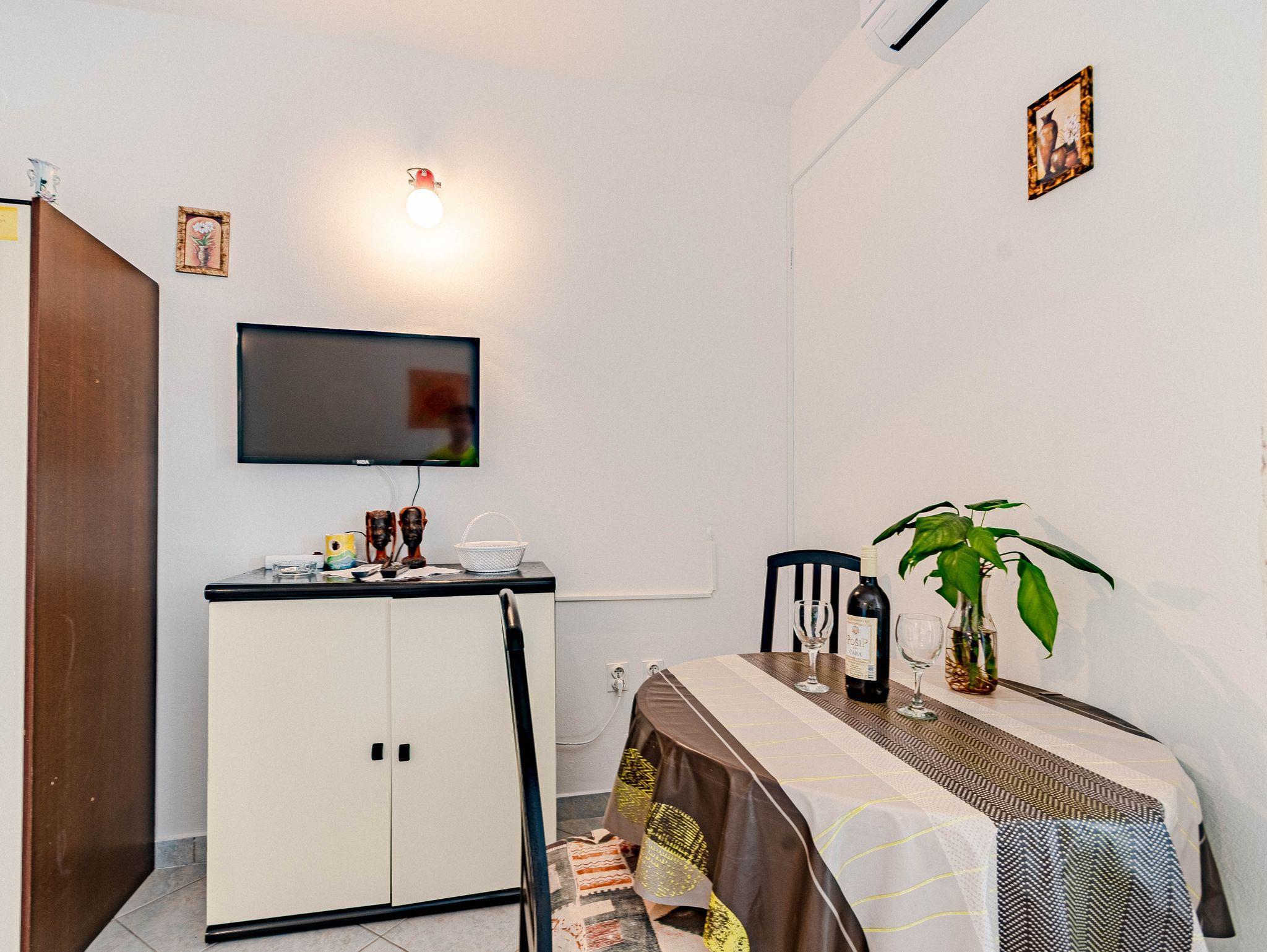 Ferienwohnung bietet Platz für 4 Gäste. Die Betten sind in Schlafzimmern, die es 1 gibt, und in Wohnzimmer, innerhalb einer Gesamtfläche von 39m2, angeordnet. Die Gäste haben eine eigene Terrasse zur Verfügung, auf der sie in warmen Sommernächten genießen können. Das Apartment bietet Meerblick. Es ist erlaubt, Speisen auf dem Gemeinschafts-Grill vorzubereiten. IM PREIS INBEGRIFFEN: Kurtaxe, Endreinigung, Klimatisierung, Parkplatz, Internet, Wäschewaschen, Kinderbett, Bügeleisen, Bügelbrett, Föhn, Liegestühle. VERBINDLICHE ZUSÄTZLICHE KOSTEN: Aufzahlung für Kurzaufenthalte (prozentualer Zuschlag pro Nächtigungsanzahl: 30% - 1, 20% - 2, 10% - 3). Die Verfügbarkeit zusätzlicher Dienstleistungen in Ihrem reservierten Termin und die Preise derselben (falls nicht aufgeführt) müssen im Voraus überprüft werden. Zusätzliche Dienstleistungen die in der Zahlungsaufforderung nicht aufgeführt sind werden direkt beim Vermieter bezahlt, angenommen der Gast nutzt auch diese. Ermäßigung auf den Grundpreis: Gratistag 14=13 (bei einem Aufenthalt von 14 Tagen oder mehr erhalten Sie einen Gratistag für den Aufenthalt bis 31.12.26).