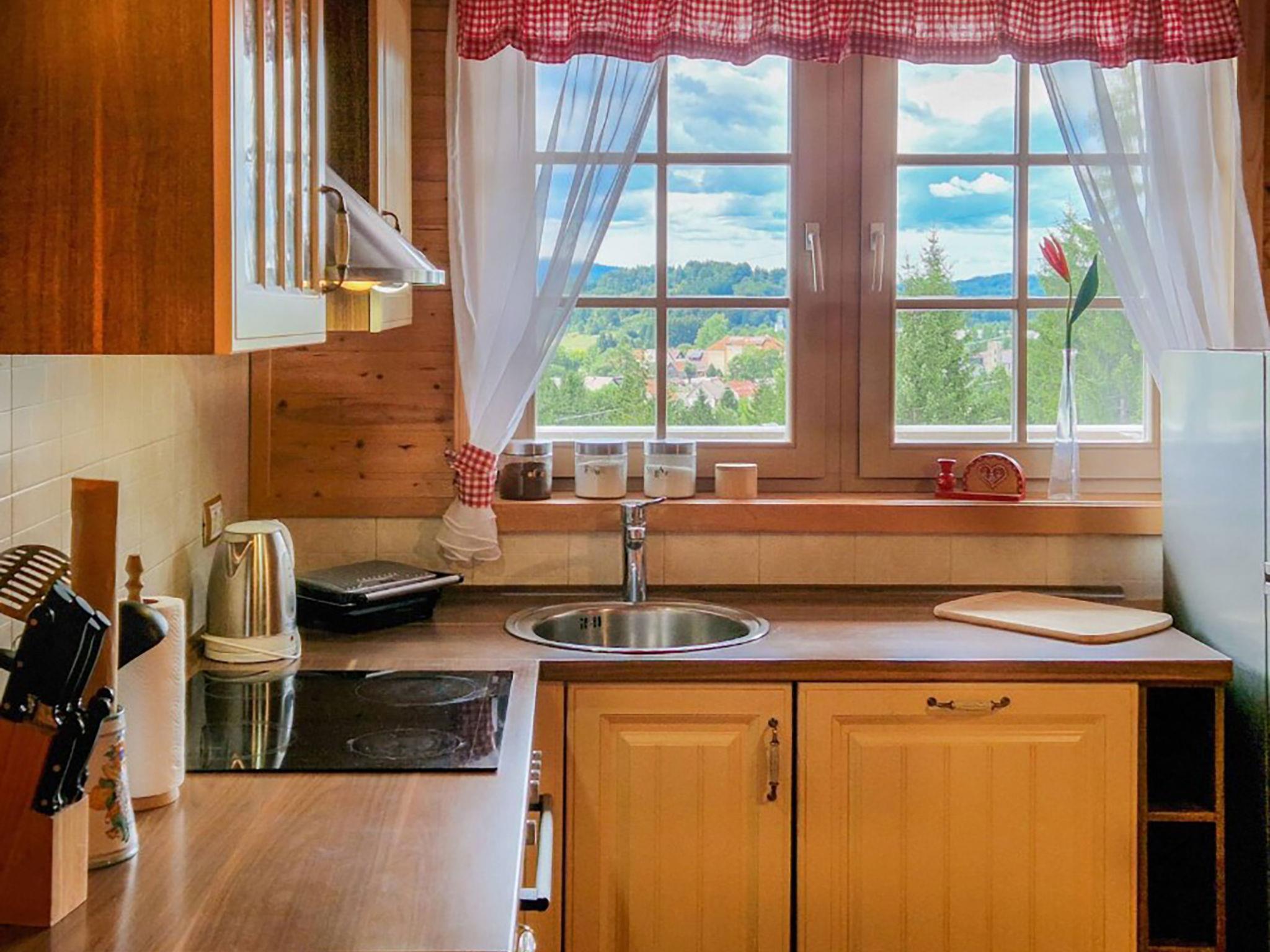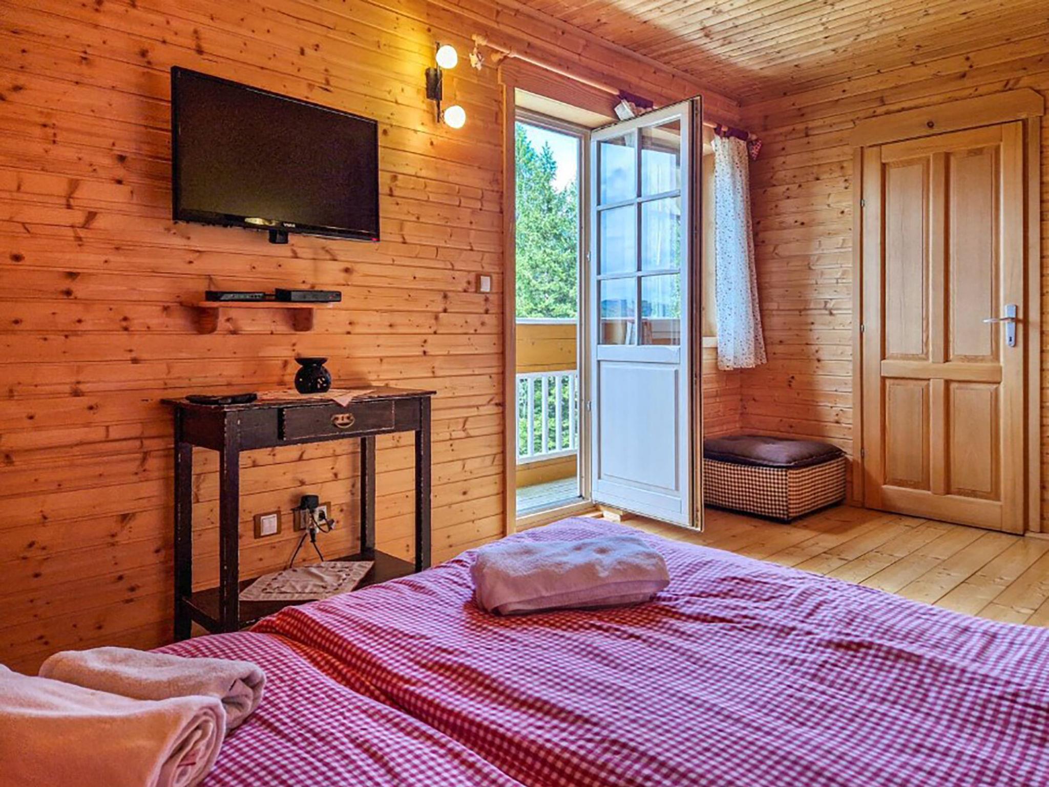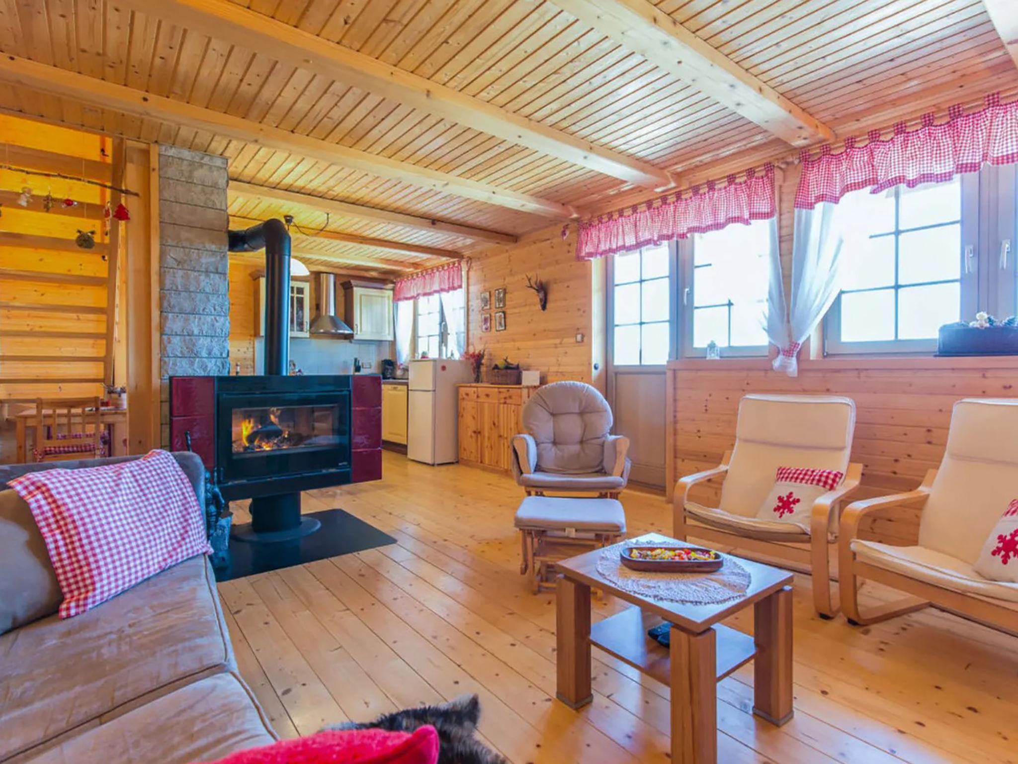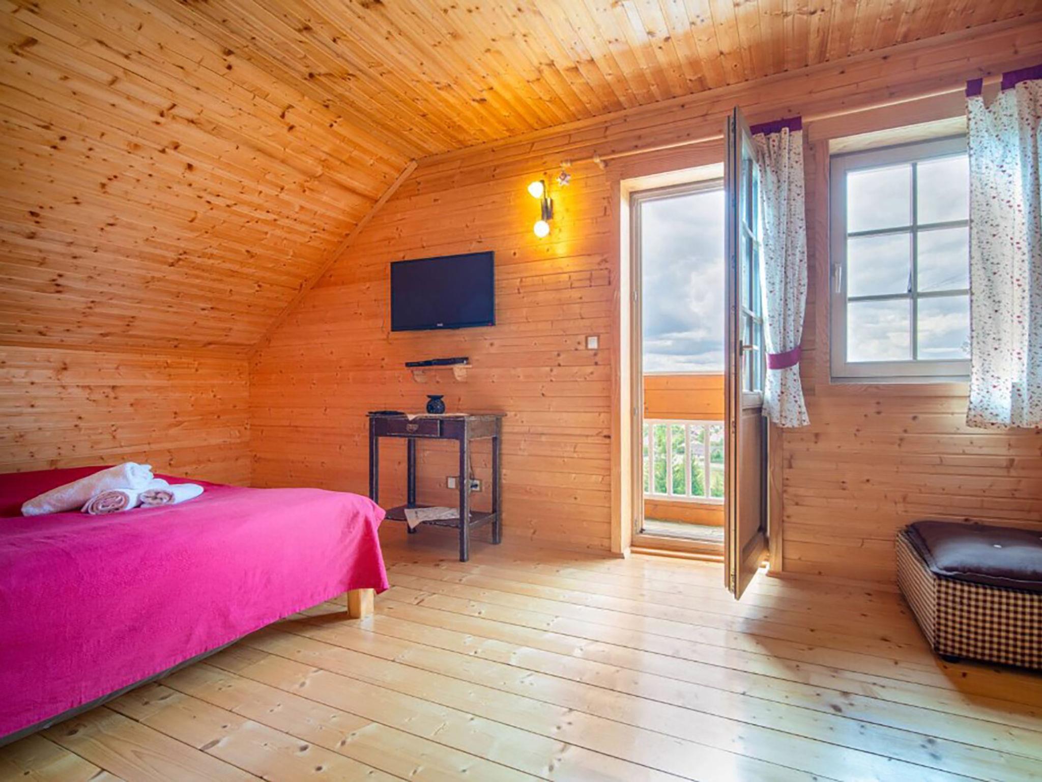 5-Zimmer-Haus 197 m2 auf 3 Stockwerken. Wohn-/Esszimmer mit TV (Flachbildschirm), Holzofen. Ausgang zum Balkon. 1 Zimmer mit 1 Doppelbett (2 x 90 cm, Länge 200 cm). Offene Küche (Backofen, Geschirrspüler, 4 Glaskeramikplatten, Toaster, Wasserkocher, Tiefkühler). Dusche/WC. Unteres Geschoss: (Aussentreppe) Esszimmer mit offenem Kamin. Sep. WC. Dachgeschoss: 1 abgeschrägtes Zimmer, Deckenhöhe 120 - 230 cm mit 1 Bett (90 cm, Länge 200 cm). 1 abgeschrägtes Zimmer, Deckenhöhe 120 - 230 cm mit 2 Betten (90 cm, Länge 200 cm). 1 abgeschrägtes Zimmer, Deckenhöhe 120 - 230 cm mit 1 Doppelbett (2 x 90 cm, Länge 200 cm), Sat-TV (Flachbildschirm). Ausgang zum Balkon. Dusche/WC. Holzheizung. Balkon 16 m2, Balkon 9 m2. Balkonmöbel. Sicht auf das Tal und den Wald. Zur Verfügung: Babybett, Haartrockner, Holz (gratis). Internet (WLAN, gratis). Bitte beachten: Nichtraucher-Haus.