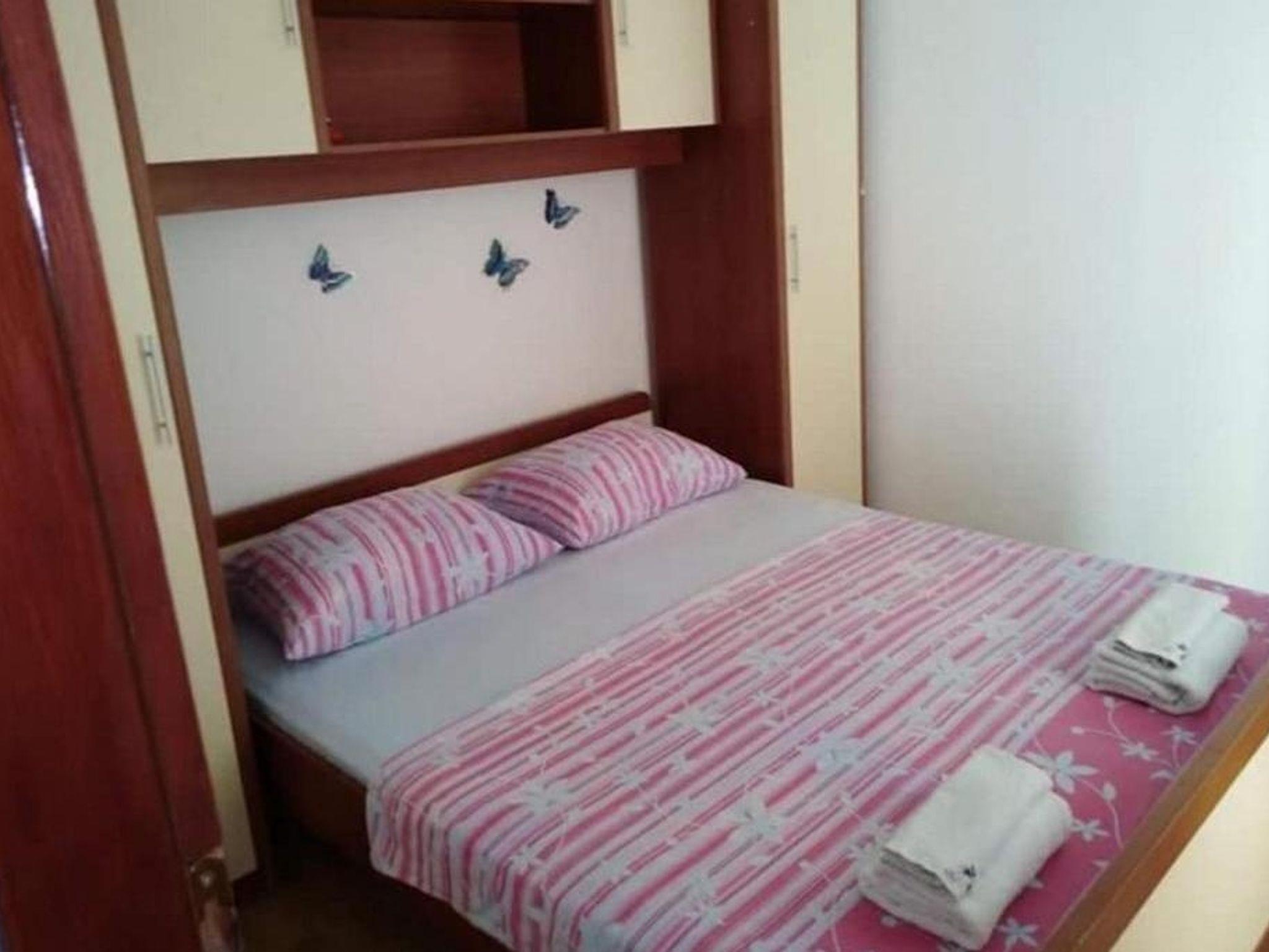 Ferienwohnung bietet Platz für 6 Gäste. Die Betten sind in Schlafzimmern, die es 2 gibt, und in Wohnzimmer, innerhalb einer Gesamtfläche von 69m2, angeordnet. Die Gäste haben eine eigene Terrasse zur Verfügung, auf der sie in warmen Sommernächten genießen können. Das Apartment bietet Meerblick. Für vollen Genuss und Entspannung gibt es einen privaten Grill für Gäste dieser Unterkunft. IM PREIS INBEGRIFFEN: Kurtaxe, Endreinigung, Klimatisierung, Parkplatz, Garage, Internet, Kinderbett, Bügeleisen, Bügelbrett, Föhn. Die Verfügbarkeit zusätzlicher Dienstleistungen in Ihrem reservierten Termin und die Preise derselben (falls nicht aufgeführt) müssen im Voraus überprüft werden. Zusätzliche Dienstleistungen die in der Zahlungsaufforderung nicht aufgeführt sind werden direkt beim Vermieter bezahlt, angenommen der Gast nutzt auch diese.