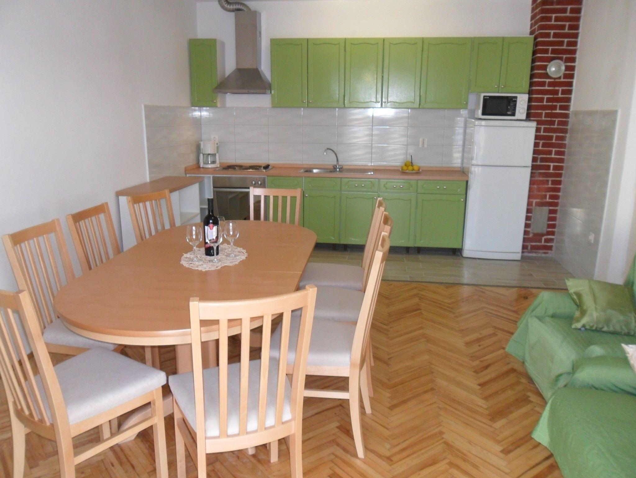 Ferienwohnung bietet Platz für 8 Gäste. Die Betten sind in Schlafzimmern, die es 3 gibt, innerhalb einer Gesamtfläche von 83m2, angeordnet. Die Gäste haben eine eigene Terrasse zur Verfügung, auf der sie in warmen Sommernächten genießen können. Das Apartment bietet Meerblick. Es ist erlaubt, Speisen auf dem Gemeinschafts-Grill vorzubereiten. In der Unterkunftseinheit besteht die Möglichkeit des Mitbringens von Haustieren gegen Aufpreis. IM PREIS INBEGRIFFEN: Kurtaxe, Endreinigung, Klimatisierung, Parkplatz, Internet, Kinderbett, Bügeleisen, Bügelbrett. VERBINDLICHE ZUSÄTZLICHE KOSTEN: Aufzahlung für Kurzaufenthalte (prozentualer Zuschlag pro Nächtigungsanzahl: 30% - 1, 20% - 2, 10% - 3). UNVERBINDLICHE ZUSÄTZLICHE KOSTEN: Haustiere (5,00 € pro Nacht). Die Verfügbarkeit zusätzlicher Dienstleistungen in Ihrem reservierten Termin und die Preise derselben (falls nicht aufgeführt) müssen im Voraus überprüft werden. Zusätzliche Dienstleistungen die in der Zahlungsaufforderung nicht aufgeführt sind werden direkt beim Vermieter bezahlt, angenommen der Gast nutzt auch diese.