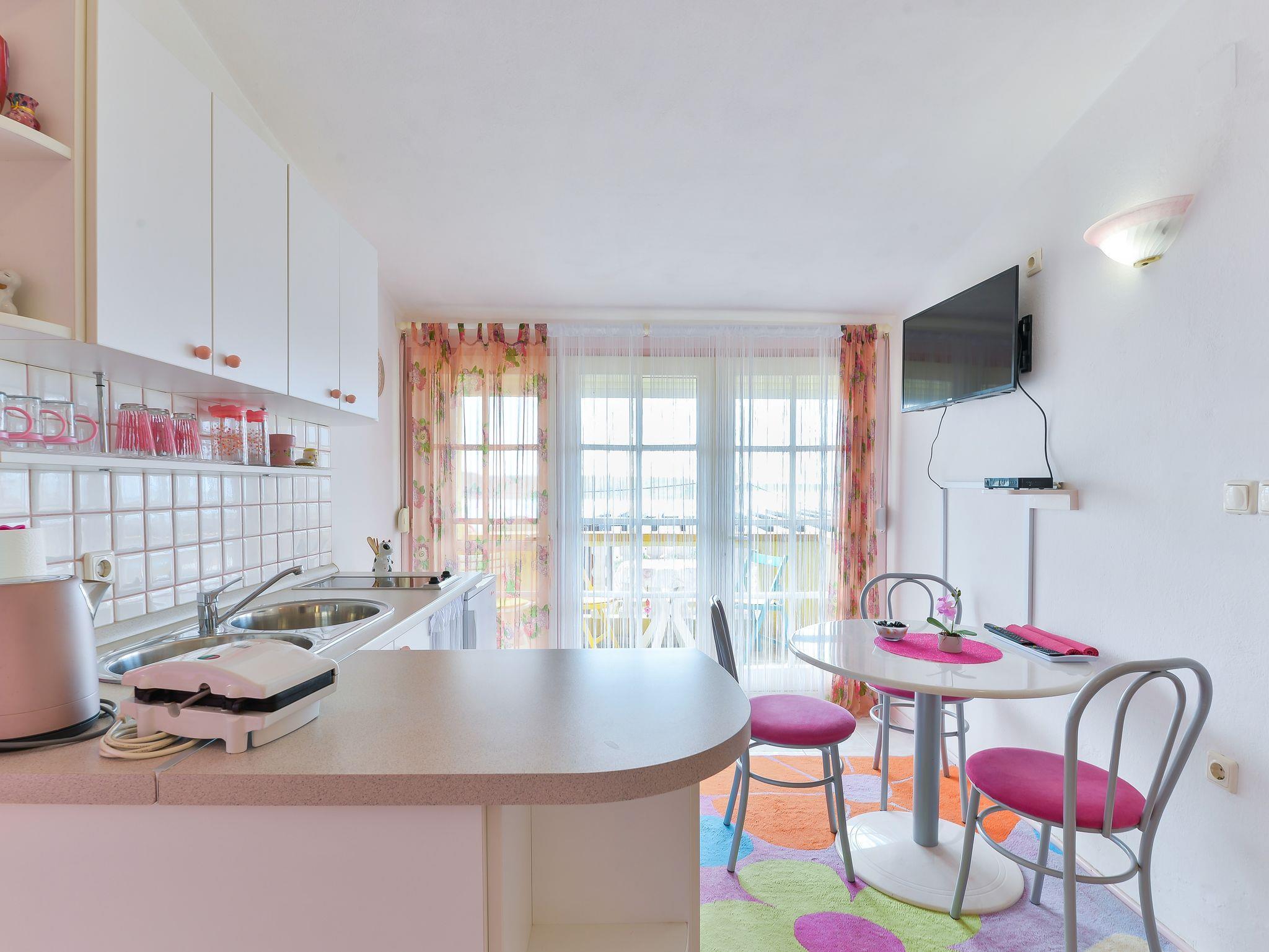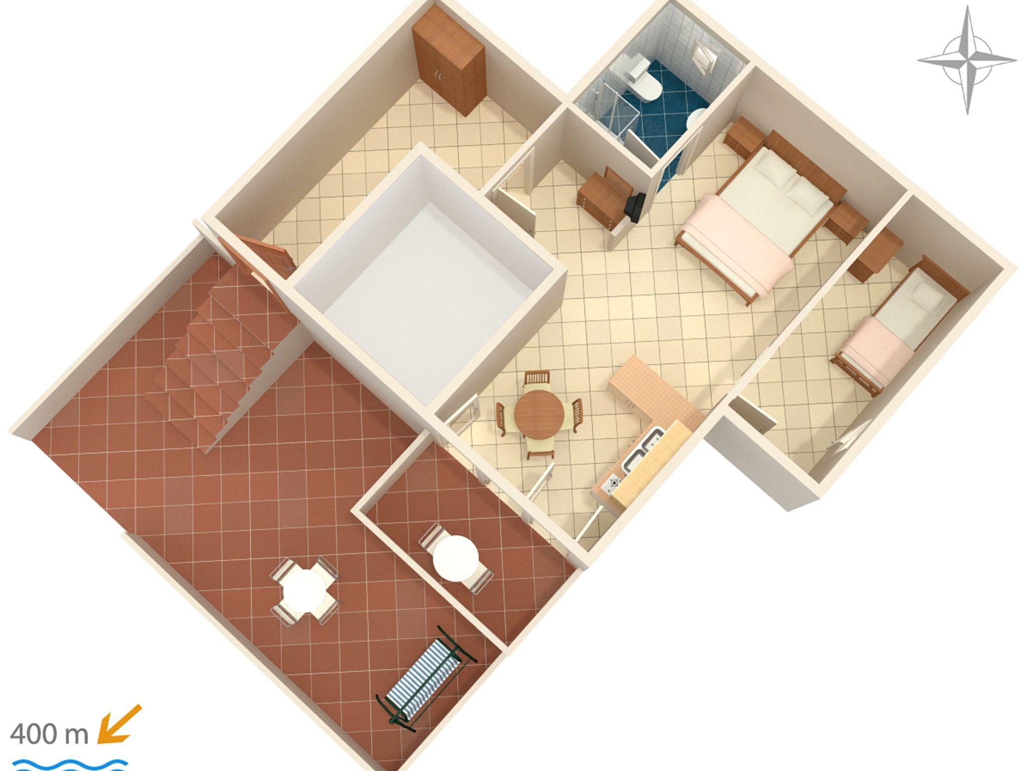 Studio bietet Platz für 3 Gäste. Die Betten sind in Schlafzimmern, die es 2 gibt, innerhalb einer Gesamtfläche von 31m2, angeordnet. Die Gäste haben eine eigene Terrasse zur Verfügung, auf der sie in warmen Sommernächten genießen können. Das Studio-Apartment bietet Meerblick. Es ist erlaubt, Speisen auf dem Gemeinschafts-Grill vorzubereiten. In der Unterkunftseinheit besteht die Möglichkeit des Mitbringens von Haustieren gegen Aufpreis. IM PREIS INBEGRIFFEN: Kurtaxe, Endreinigung, Parkplatz, Internet, Föhn, Sonnenschirm. VERBINDLICHE ZUSÄTZLICHE KOSTEN: Aufzahlung für Kurzaufenthalte (prozentualer Zuschlag pro Nächtigungsanzahl: 30% - 1, 20% - 2, 10% - 3). UNVERBINDLICHE ZUSÄTZLICHE KOSTEN: Klimatisierung (5,00 € pro Nacht), Haustiere (5,00 € pro Nacht). Die Verfügbarkeit zusätzlicher Dienstleistungen in Ihrem reservierten Termin und die Preise derselben (falls nicht aufgeführt) müssen im Voraus überprüft werden. Zusätzliche Dienstleistungen die in der Zahlungsaufforderung nicht aufgeführt sind werden direkt beim Vermieter bezahlt, angenommen der Gast nutzt auch diese.