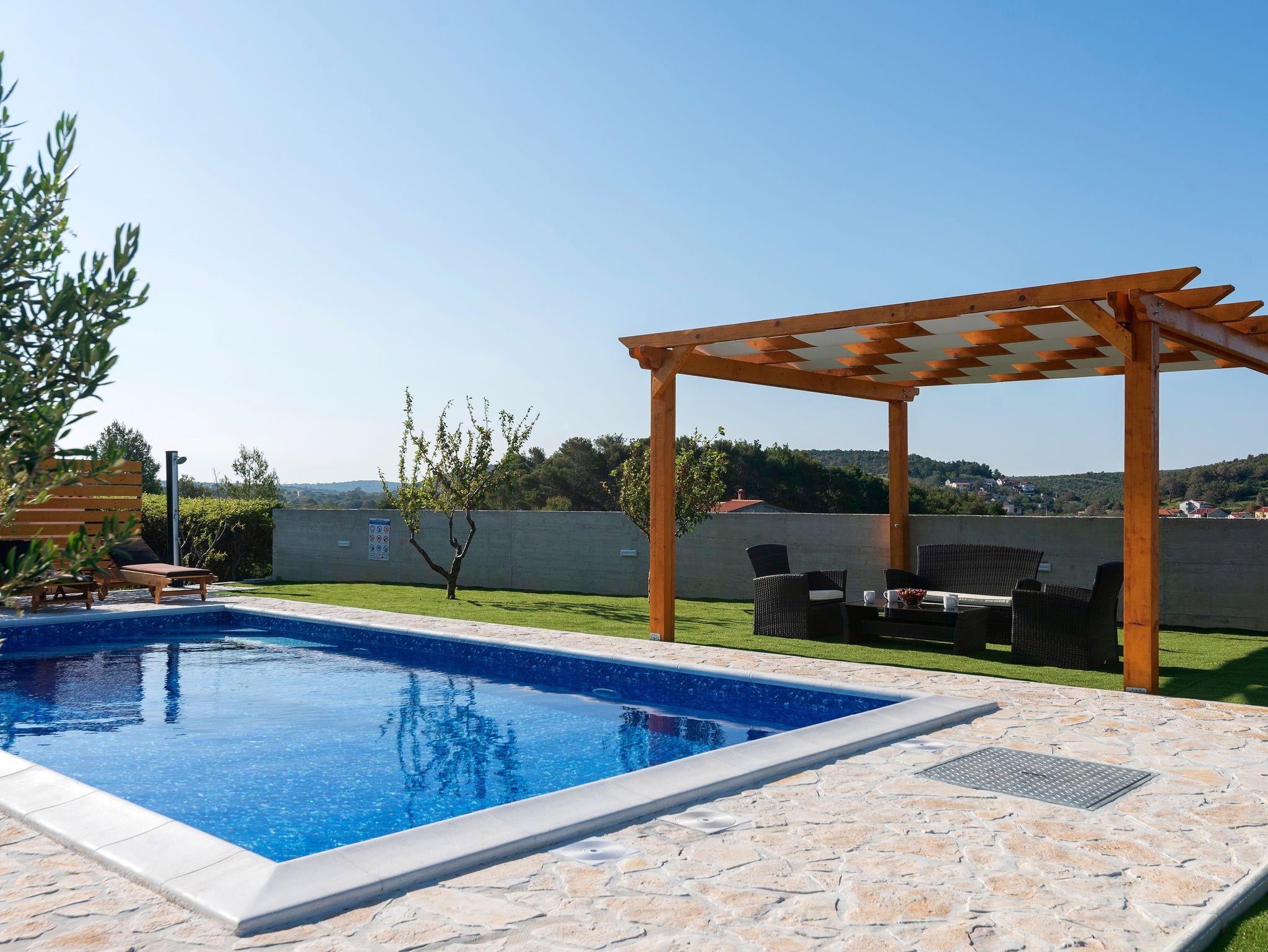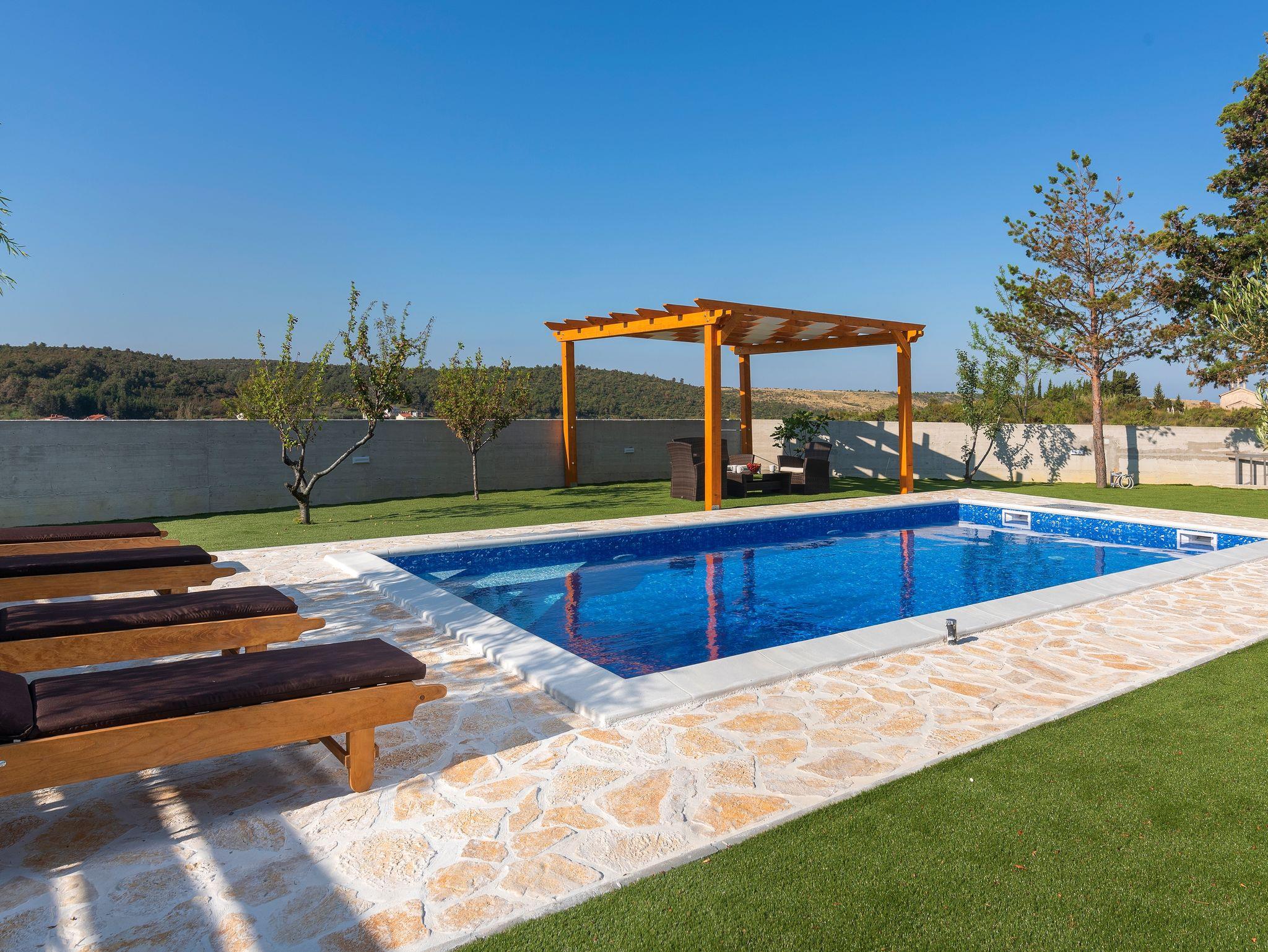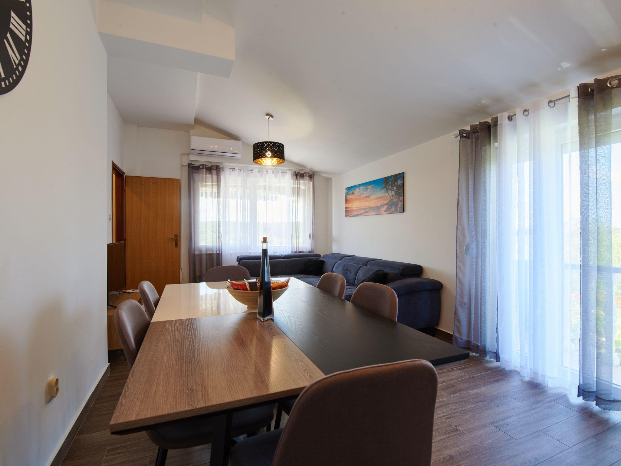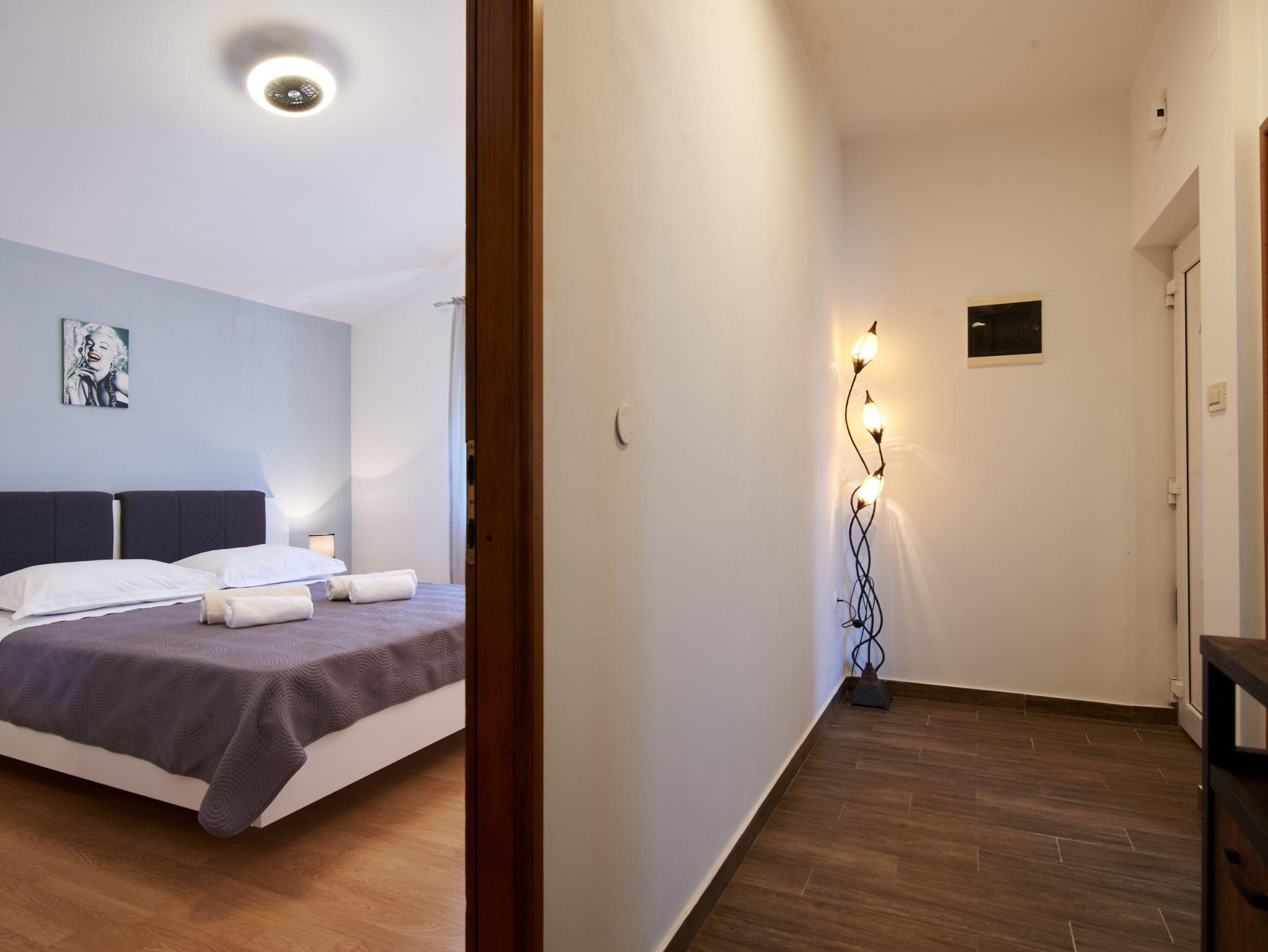 Ferienwohnung bietet Platz für 6 Gäste. Die Betten sind in Schlafzimmern, die es 3 gibt, innerhalb einer Gesamtfläche von 77m2, angeordnet. Die Gäste haben eine eigene Terrasse zur Verfügung, auf der sie in warmen Sommernächten genießen können. Das Apartment bietet Meerblick. Es ist erlaubt, Speisen auf dem Gemeinschafts-Grill vorzubereiten. Während ihres Aufenthalts können sich Gäste im privaten Schwimmbad entspannen. IM PREIS INBEGRIFFEN: Kurtaxe, Endreinigung, Klimatisierung, Pool, Parkplatz, Internet, Kinderbett, Bügeleisen, Bügelbrett, Föhn. VERBINDLICHE ZUSÄTZLICHE KOSTEN: Aufzahlung für Kurzaufenthalte (prozentualer Zuschlag pro Nächtigungsanzahl: 30% - 1, 20% - 2, 10% - 3). Die Verfügbarkeit zusätzlicher Dienstleistungen in Ihrem reservierten Termin und die Preise derselben (falls nicht aufgeführt) müssen im Voraus überprüft werden. Zusätzliche Dienstleistungen die in der Zahlungsaufforderung nicht aufgeführt sind werden direkt beim Vermieter bezahlt, angenommen der Gast nutzt auch diese.