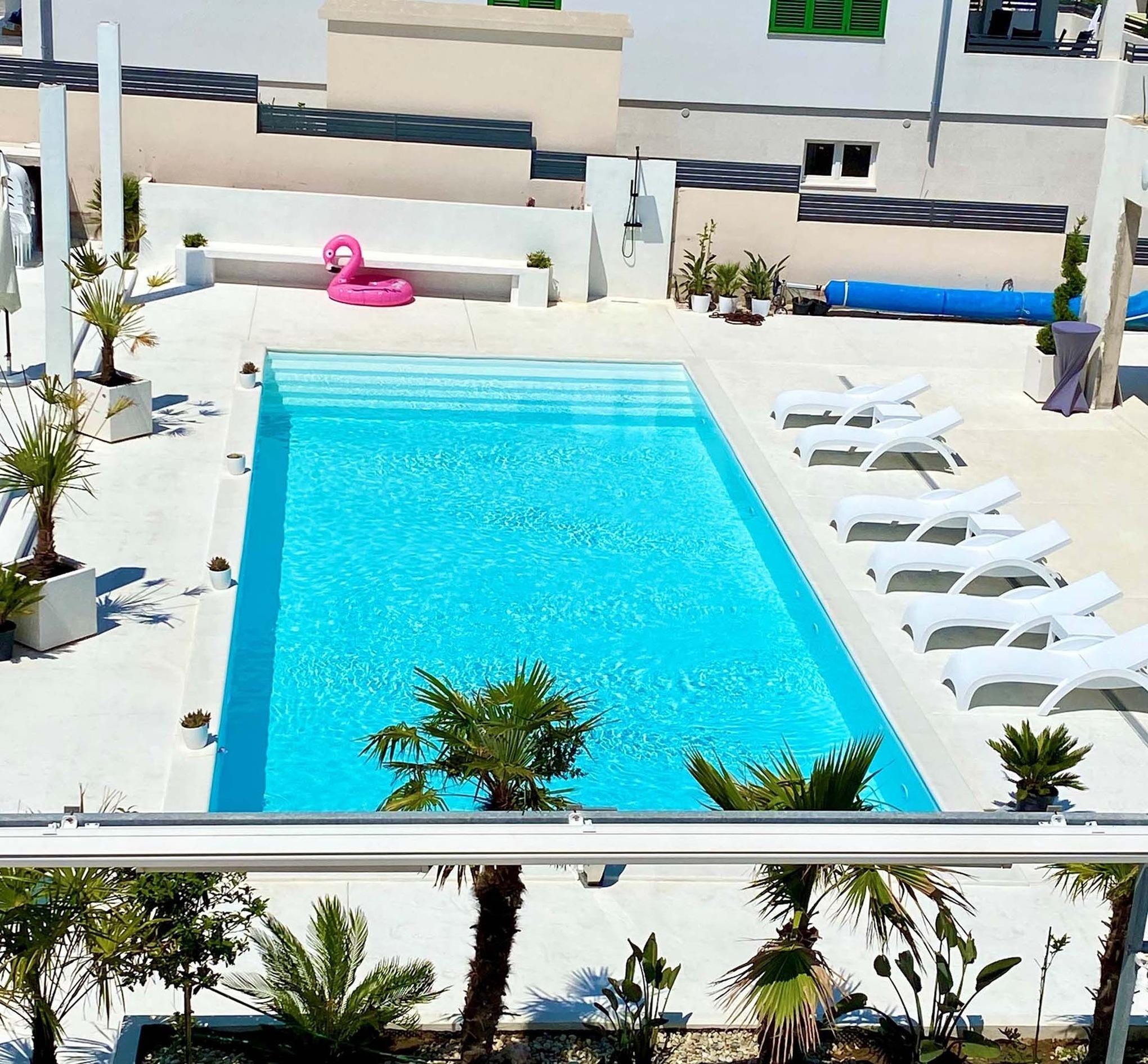 Atrium Blue Holiday House D. Kroatienurlaub im eigenen Reihenhaus in atemberaubender Lage und spektakulären, unverbautem Blick auf das Meer und die Berge.