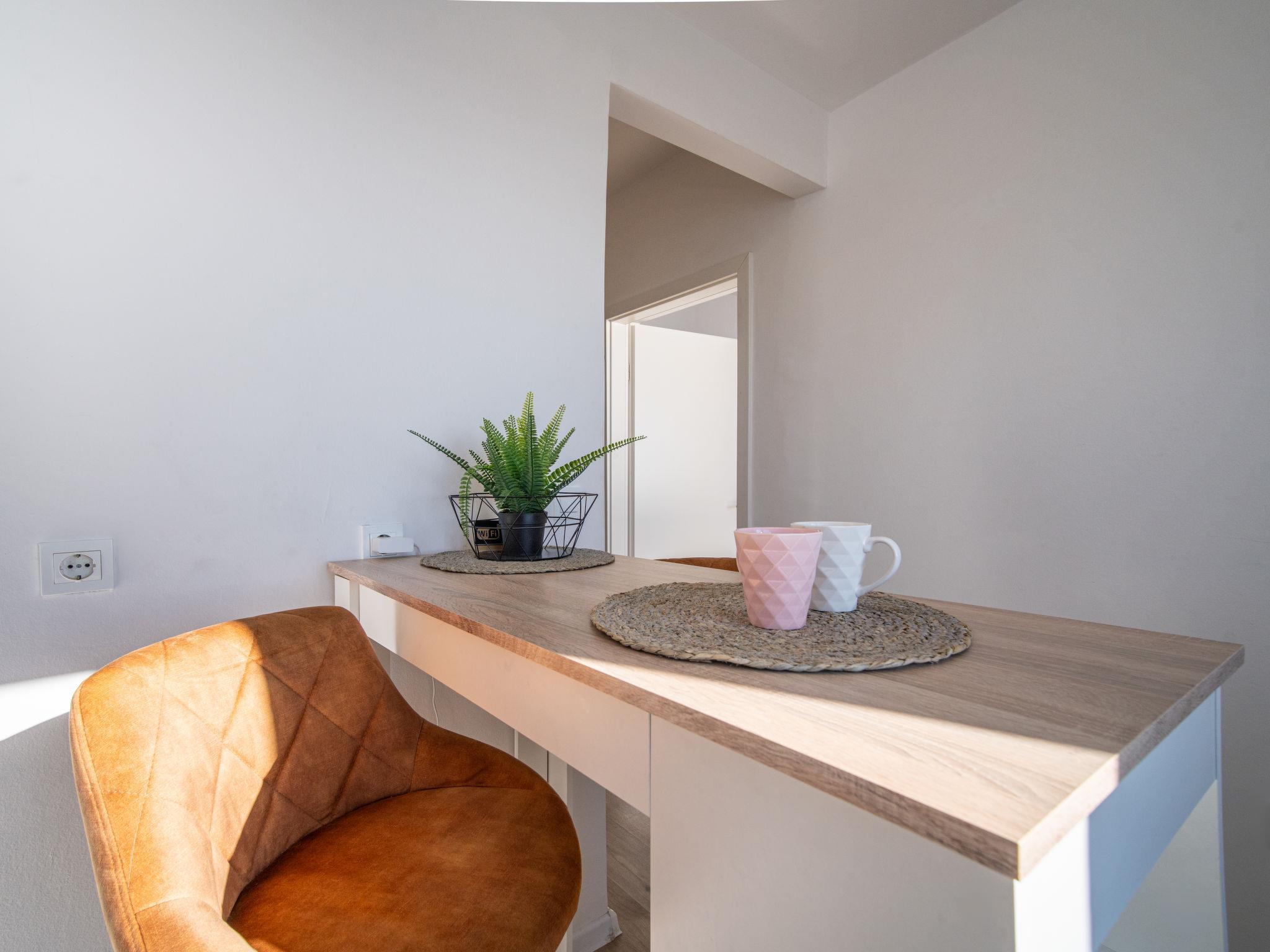 "Bella Vista", 1-Zimmer-Wohnung 25 m2 im 9. Stock. 1 Zimmer mit 1 franz. Bett (180 cm, Länge 200 cm), Kabel-TV und Klimaanlage. Küche (2 Glaskeramikplatten, Toaster, Wasserkocher, Tiefkühler, elektrische Kaffeemaschine) mit kleinem Esstisch. Dusche/WC. Klimaanlage. Schöne Sicht auf das Meer. Zur Verfügung: Waschmaschine. Internet (Wireless LAN, gratis). 1 kleines Haustier/Hund erlaubt.