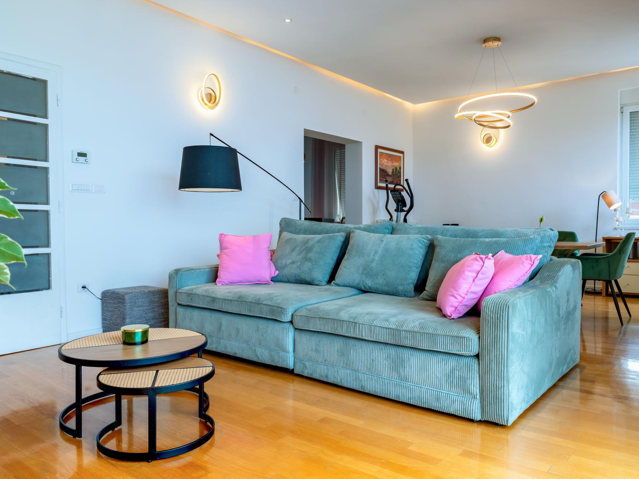 3-Zimmer-Wohnung 110 m2, im Erdgeschoss. Vollständig renoviert im Jahre 2024, modern eingerichtet: Wohn-/Esszimmer mit 1 Diwanbett (120 cm, Länge 240 cm), Sat-TV (Flachbildschirm). Ausgang zum Balkon. Eingang mit Klimaanlage. 1 Zimmer mit 2 Betten (80 cm, Länge 200 cm). 1 Zimmer mit 1 franz. Bett (180 cm, Länge 200 cm). Ausgang zum Balkon. Offene Küche (Backofen, Geschirrspüler, 4 Induktionskochplatten, Toaster, Tiefkühler). Ausgang zur Terrasse. Dusche/WC, sep. WC. G-Heizung. Balkon 19 m2. Balkonmöbel. Schöne Panoramasicht auf das Meer und die Bucht. Zur Verfügung: Waschmaschine, Safe, Bügeleisen, Babybett. Internet (WLAN, gratis). Bitte beachten: Nichtraucher-Haus.