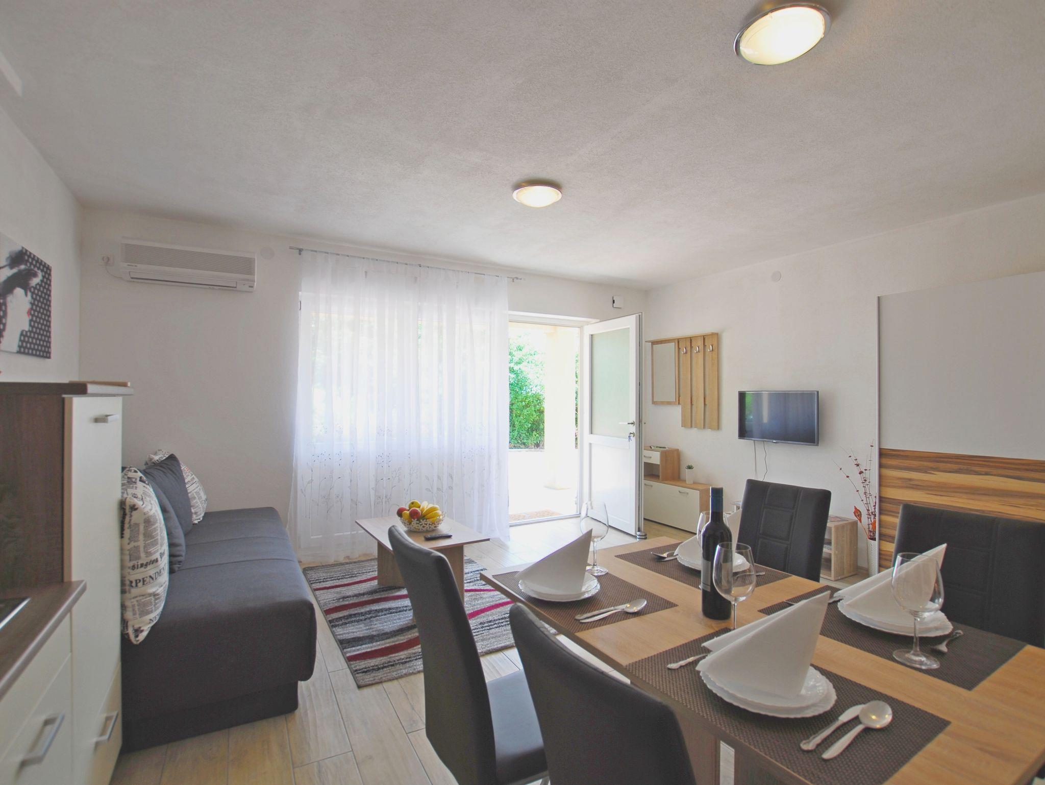 Studio bietet Platz für 4 Gäste. Die Betten sind in Schlafzimmern, die es 1 gibt, und in Wohnzimmer, innerhalb einer Gesamtfläche von 32m2, angeordnet. Die Gäste haben eine eigene Terrasse zur Verfügung, auf der sie in warmen Sommernächten genießen können. Es ist erlaubt, Speisen auf dem Gemeinschafts-Grill vorzubereiten. IM PREIS INBEGRIFFEN: Kurtaxe, Endreinigung, Klimatisierung, Zentralheizung, Parkplatz, Internet, Föhn. VERBINDLICHE ZUSÄTZLICHE KOSTEN: Aufzahlung für Kurzaufenthalte (prozentualer Zuschlag pro Nächtigungsanzahl: 30% - 1, 20% - 2, 10% - 3). Die Verfügbarkeit zusätzlicher Dienstleistungen in Ihrem reservierten Termin und die Preise derselben (falls nicht aufgeführt) müssen im Voraus überprüft werden. Zusätzliche Dienstleistungen die in der Zahlungsaufforderung nicht aufgeführt sind werden direkt beim Vermieter bezahlt, angenommen der Gast nutzt auch diese. Ermäßigung auf den Grundpreis: Gratistag 14=13 (bei einem Aufenthalt von 14 Tagen oder mehr erhalten Sie einen Gratistag für den Aufenthalt bis 31.12.26).