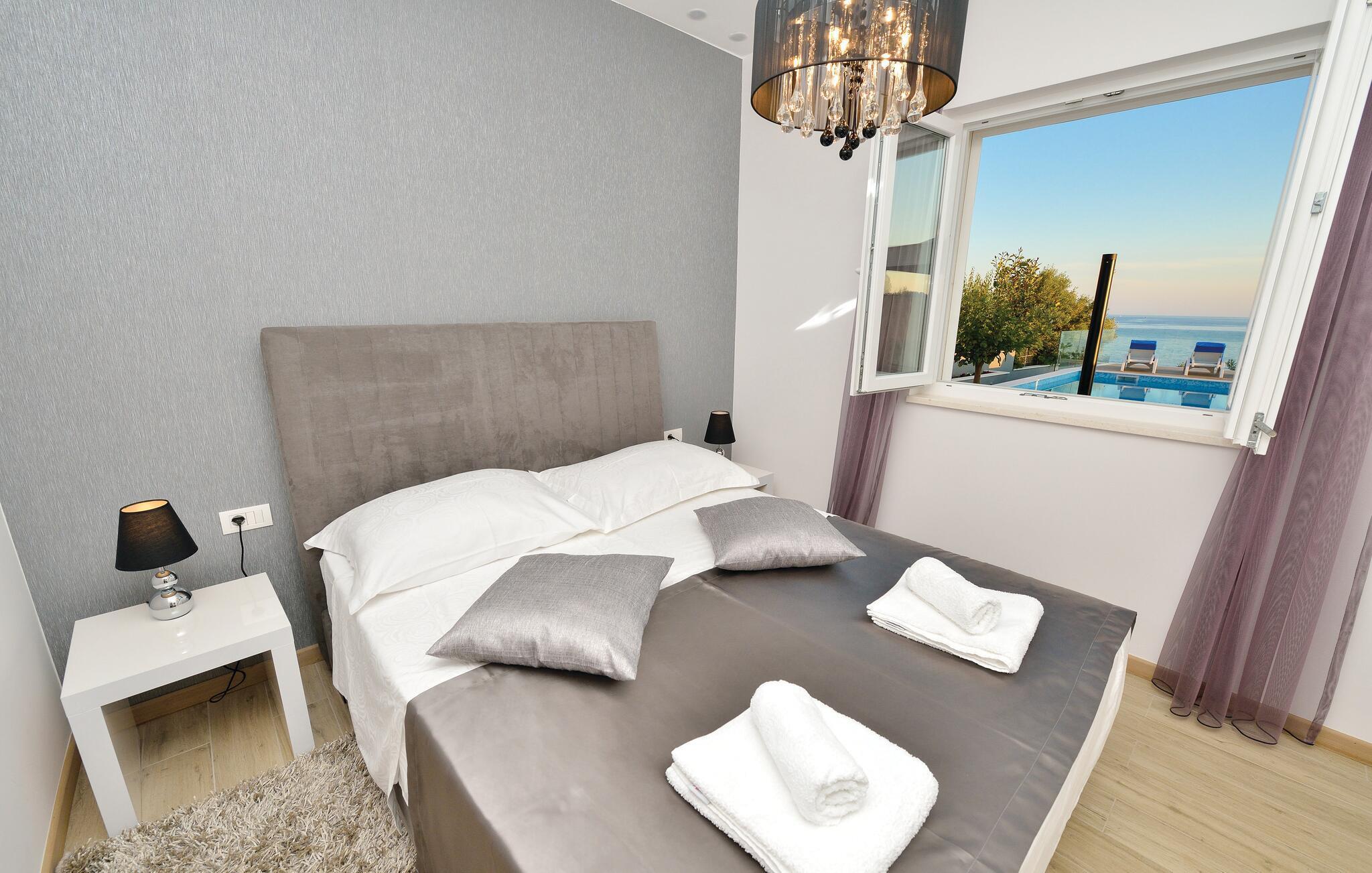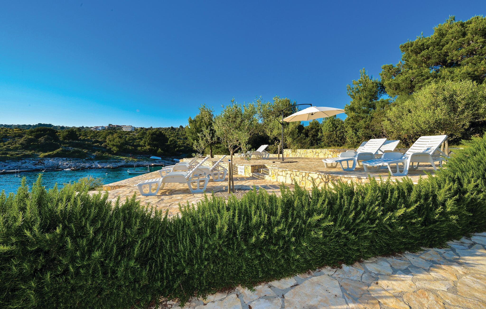 Schlendern Sie zum nahegelegenen Strand und genießen Sie Sonne und Meer in vollen Zügen. Starten Sie Ihren Tag mit einem Spaziergang entlang der malerischen Küste, die von kristallklarem Wasser und charmanten Buchten gesäumt ist. Die Gegend bietet zahlreiche Wander- und Radwege, die Sie zu atemberaubenden Aussichtspunkten führen. Spazieren Sie durch die engen Gassen der historischen Altstadt von Rogoznica und bewundern Sie die traditionelle Architektur.