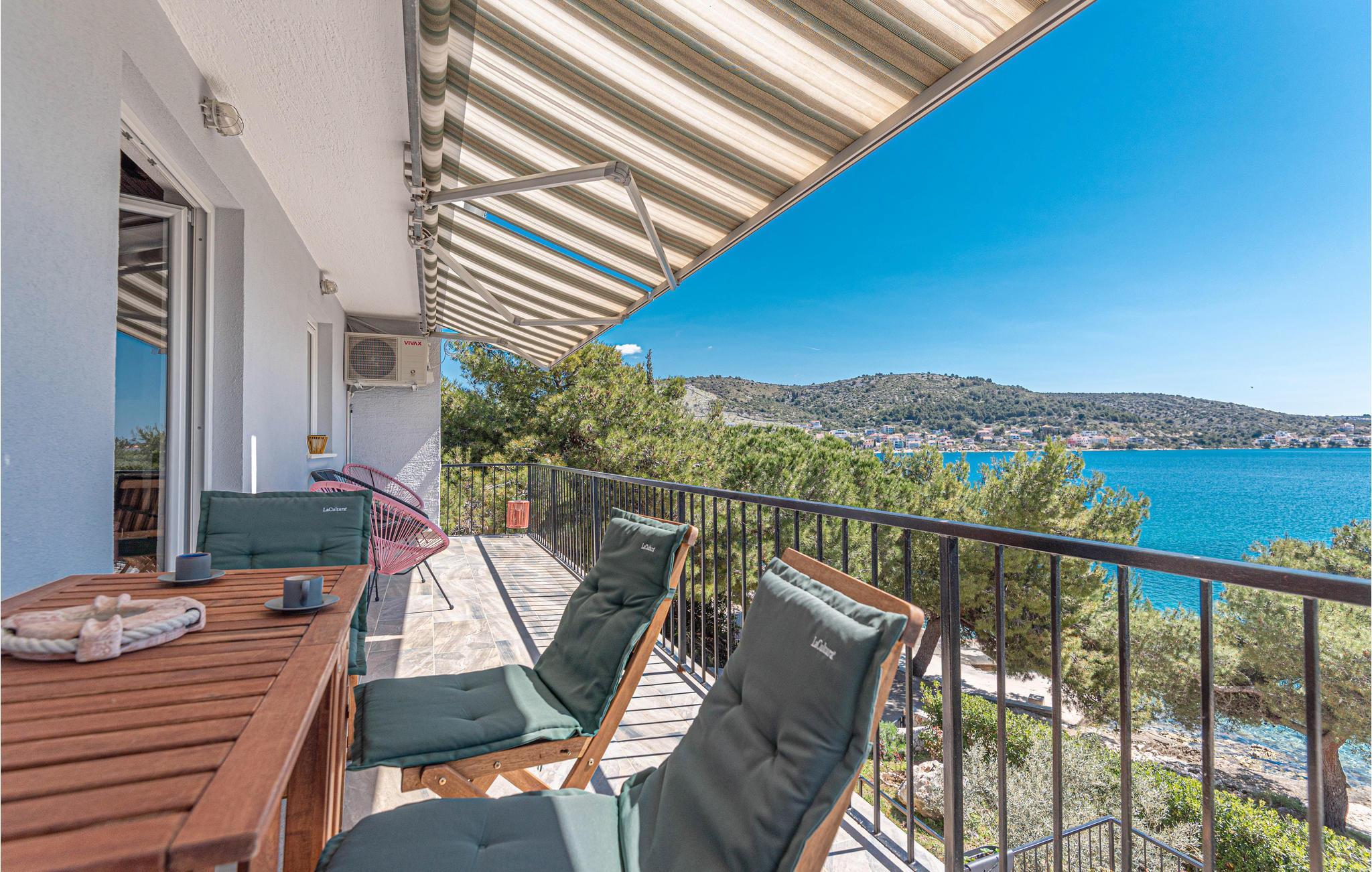 Treten Sie ein in eine authentische Wohnung in der 1. Etage und 1. Reihe zum Meer. Hier werden Sie sich über die Ruhe und Behaglichkeit freuen, von diesem Teil von Rogoznica. Im Wohnraum erwarten Sie bequeme Sitzmöglichkeiten mit charmanten und ausfallenden Details, die eine wunderbare wohlfühl-Atmosphäre erschaffen. Freuen Sie sich auch besonders auf den Panoramablick, den Sie vom Balkon genießen können, während Sie eventuell Ihr Frühstück im Freien verspeisen und sich gemeinsam mit Ihrer Begleitung auf den Tag vorbereiten.