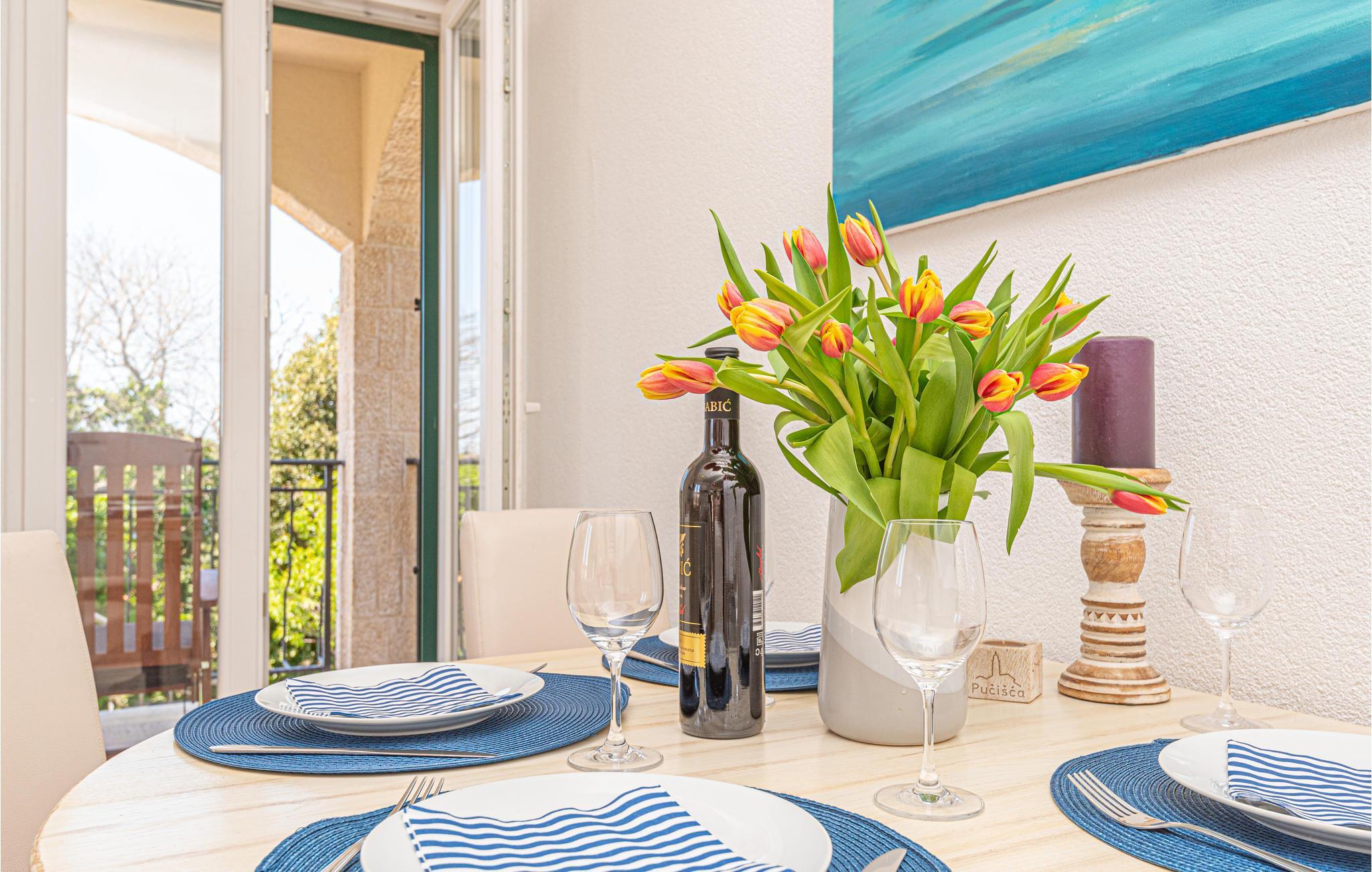 Genießen Sie einen wunderbaren Sommeraufenthalt in dieser schönen Unterkunft. Die helle Einrichtung sorgt für eine fröhliche Atmosphäre, die Sie auch auf die helle, sonnendurchflutete Umgebung vorbereitet. Frühstücken Sie gemütlich auf dem Balkon bei spektakulärer Aussicht auf das Wasser oder betrachten Sie am Abend von den Liegen aus die farbenprächtigsten Sonnenuntergänge über dem Meer.