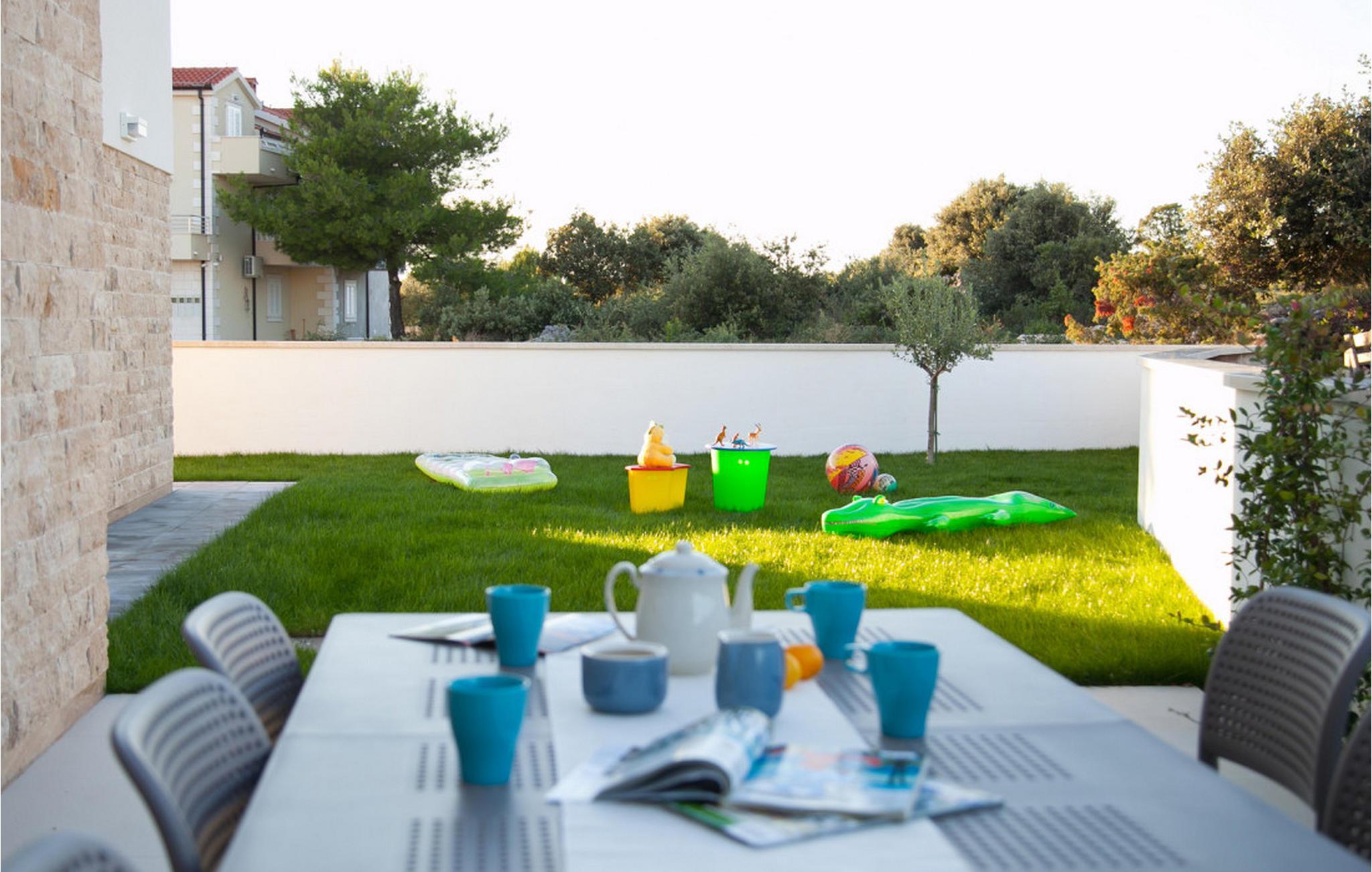 Der elegante Außenbereich ist wie geschaffen, um das angenehme Klima zu jeder Tageszeit im Freien zu genießen. Ziehen Sie morgens gemächlich Ihre Bahnen im Pool, servieren Sie sich ein köstliches Frühstück auf der Terrasse und lassen Sie Ihre Kinder auf dem grünen Rasen spielen. Tanken Sie neue Energie auf bequemen Sonnenliegen, genießen Sie den Sonnenuntergang bei einem Glas Wein und zelebrieren Sie die gemeinsame Zeit mit stimmungsvollen Grillabenden.