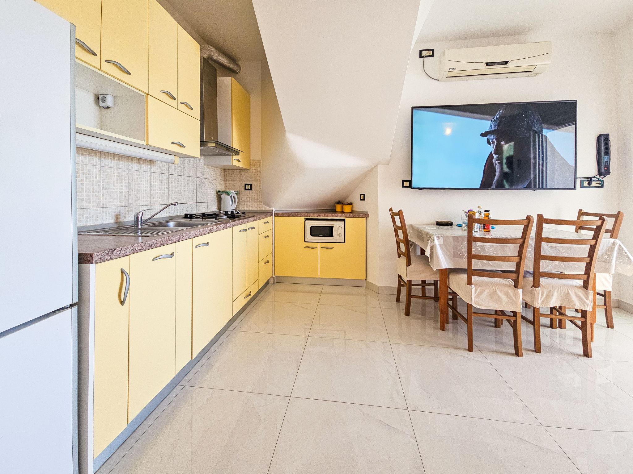 Mehrfamilienhaus "Miline". Im Ortszentrum von Rogoznica, 30 m vom Meer, 100 m vom Strand. Zur Mitbenutzung: Grundstück 570 m2. Im Hause: Internetzugang. Parkplatz (für 4 Autos, beschränkte Anzahl) beim Haus auf dem Grundstück, öffentliche Parkplätze 10 m auf der Strasse extra. Einkaufsgeschäft 200 m, Restaurant 500 m, Bushaltestelle 230 m, Kieselstrand 100 m, Felsstrand 500 m.