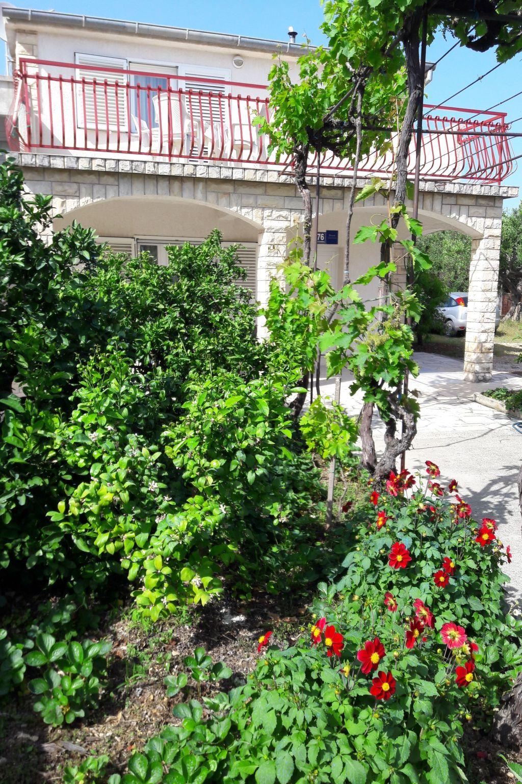 Auf der Terrasse können Sie in aller Ruhe die leichte dalmatinische Brise genießen. Obwohl die Wohnung keinen Ausblick bietet, ist der Außenbereich ein ruhiger Ort für den Morgenkaffee oder die abendliche Entspannung. Die Abwesenheit von Haustieren sorgt dafür, dass alle Gäste ihren Aufenthalt in einer ruhigen und sauberen Umgebung genießen können, und die Klimaanlage sorgt dafür, dass es in den warmen Sommermonaten angenehm kühl bleibt.