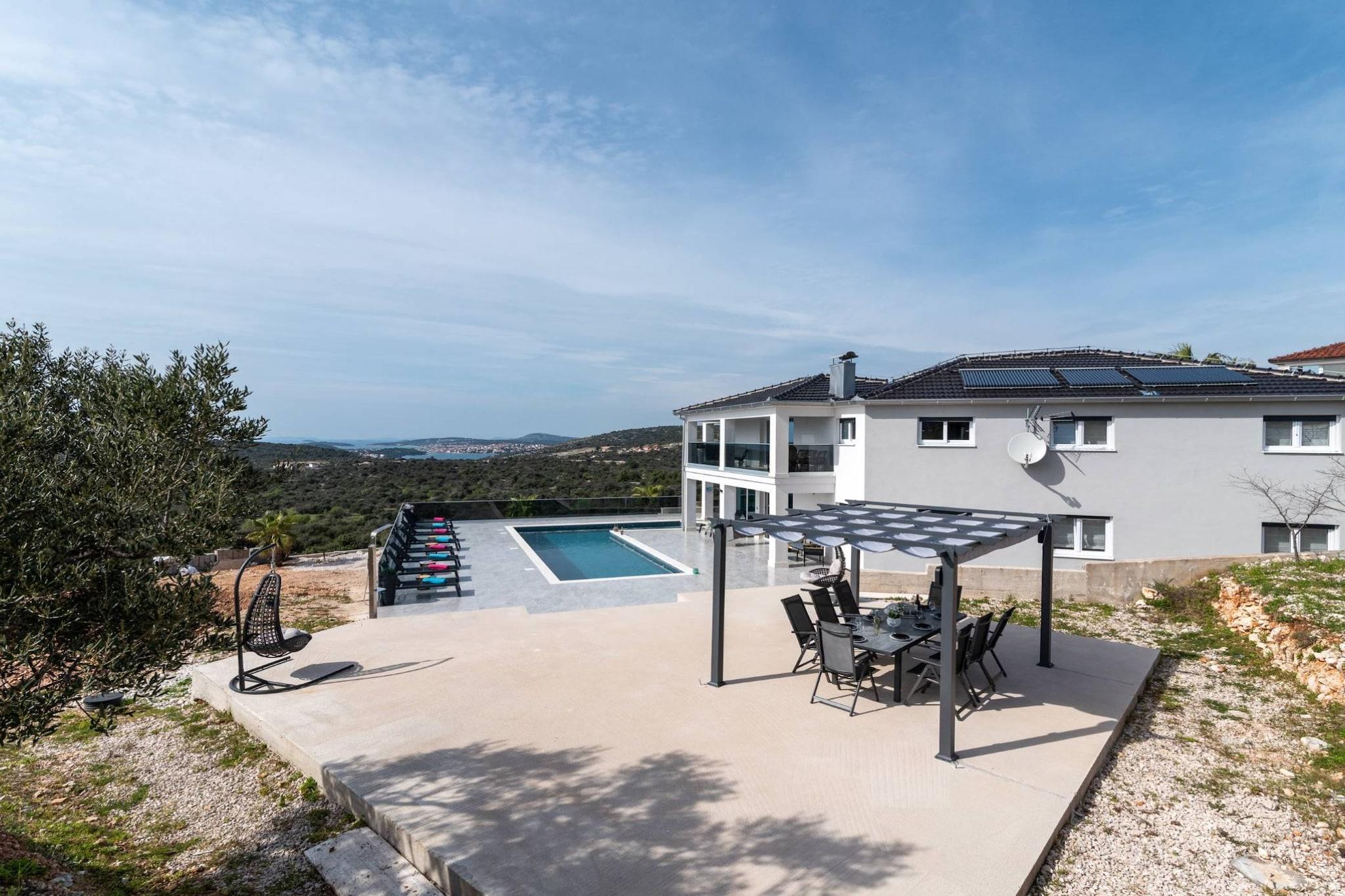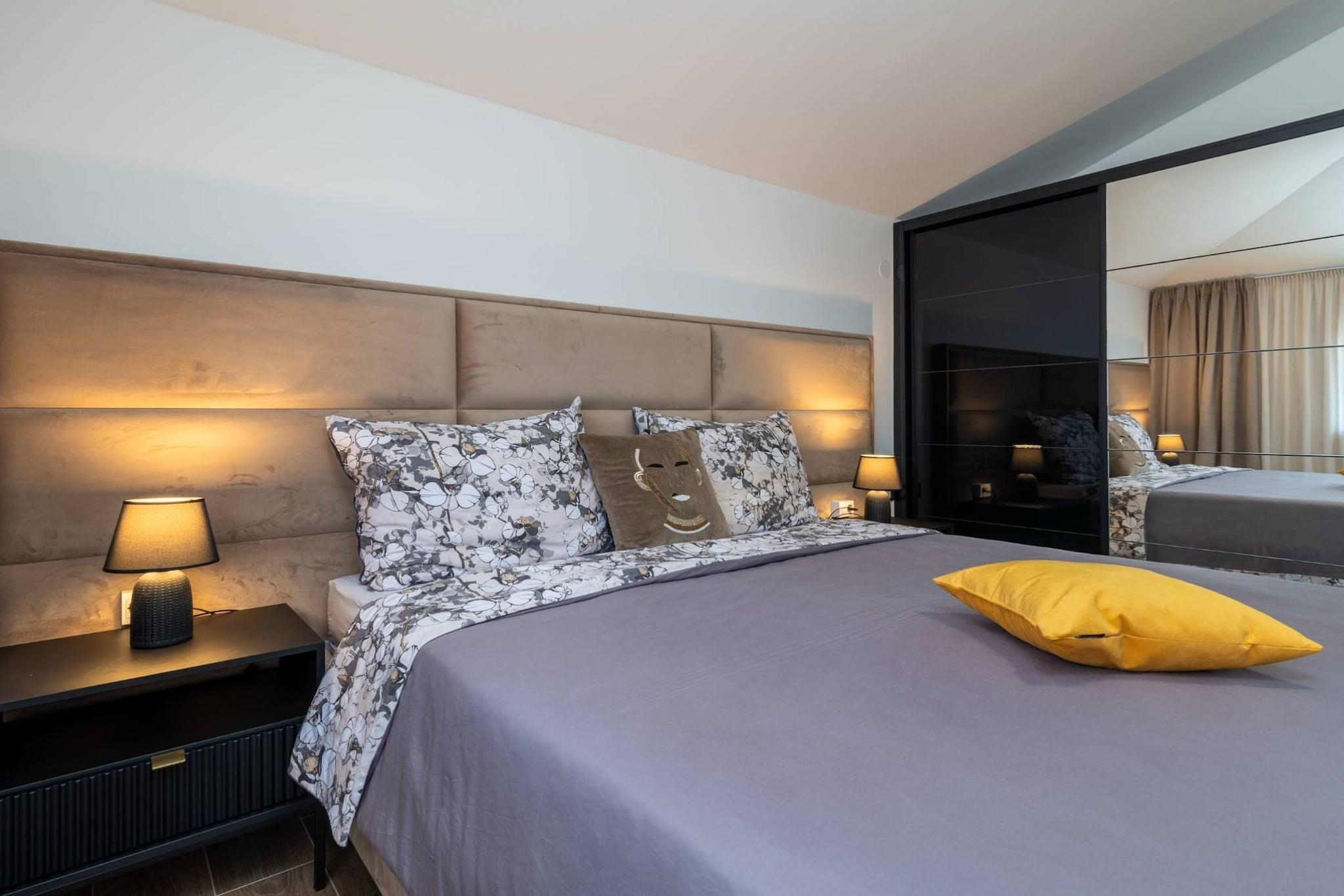 Luminous Infinity Villa is a luxurious rental property located in Rogoznica, a picturesque coastal town in Split-Dalmatia County, Croatia. Known for its stunning views of the Adriatic Sea, this villa combines modern amenities with an elegant design, making it an ideal destination for relaxation and leisure.Luminous Infinity Villa in Rogoznica offers a unique blend of luxury, comfort, and breathtaking views, making it an ideal choice for travelers looking to experience the beauty of Croatia's Dalmatian coast. Note: Baby cot is available on request. Pets are not allowed. Private parking, reservation is not required. Free Wi-fi is available throughout the property. This six-bedroom can accommodate up to twelve guests. It features a TV and is combined with a living room and kitchen. The private bathroom is equipped with a shower and toilet. Thanks to its excellent location, everything you'll need for your vacation is just a short walk away from the property. Grocery stores-4.08 km , cafes and restaurants—1.30 km . The beach is 1.16 km away from the property. The airport is 24 km away from the property.