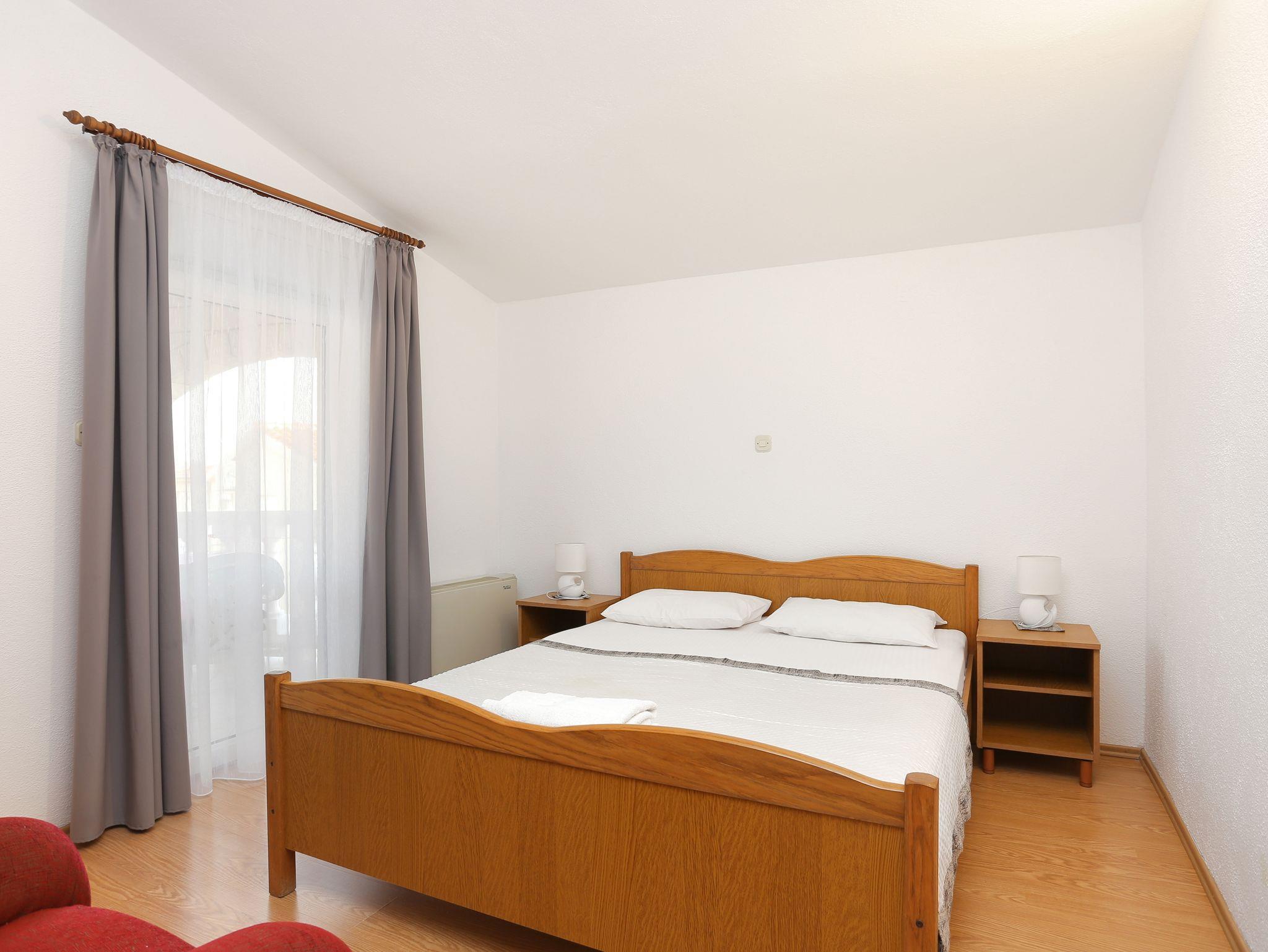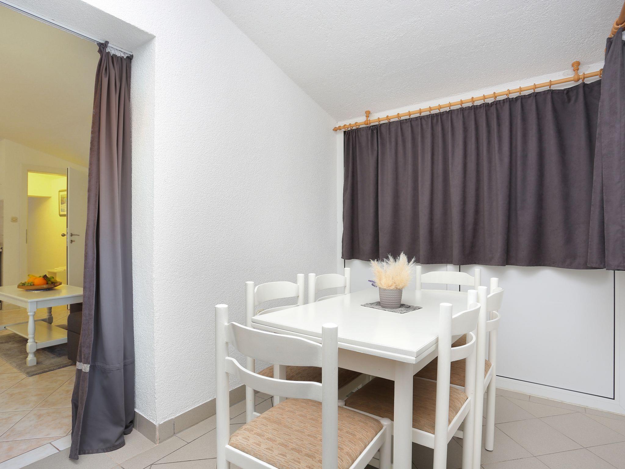 Ferienwohnung bietet Platz für 6 Gäste. Die Betten sind in Schlafzimmern, die es 2 gibt, und in Wohnzimmer, innerhalb einer Gesamtfläche von 45m2, angeordnet. Die Gäste haben eine eigene Terrasse zur Verfügung, auf der sie in warmen Sommernächten genießen können. Das Apartment bietet Meerblick. Es ist erlaubt, Speisen auf dem Gemeinschafts-Grill vorzubereiten. IM PREIS INBEGRIFFEN: Kurtaxe, Endreinigung, Klimatisierung, Parkplatz, Internet, Kinderbett, Bügeleisen, Bügelbrett. VERBINDLICHE ZUSÄTZLICHE KOSTEN: Aufzahlung für Kurzaufenthalte (prozentualer Zuschlag pro Nächtigungsanzahl: 30% - 1, 20% - 2, 10% - 3). UNVERBINDLICHE ZUSÄTZLICHE KOSTEN: Wäschewaschen (1,00 € Waschen). Die Verfügbarkeit zusätzlicher Dienstleistungen in Ihrem reservierten Termin und die Preise derselben (falls nicht aufgeführt) müssen im Voraus überprüft werden. Zusätzliche Dienstleistungen die in der Zahlungsaufforderung nicht aufgeführt sind werden direkt beim Vermieter bezahlt, angenommen der Gast nutzt auch diese.