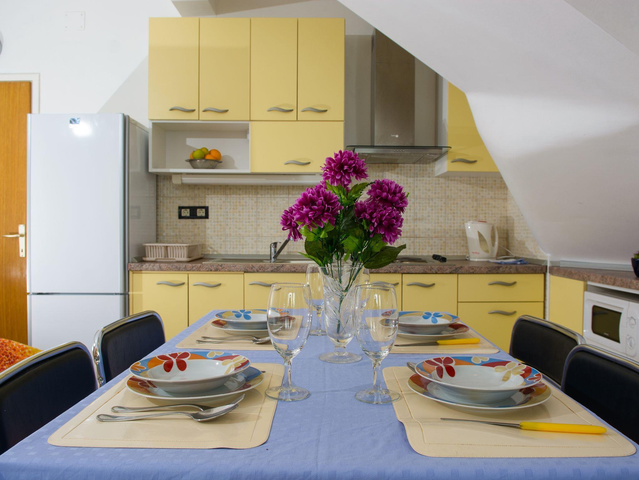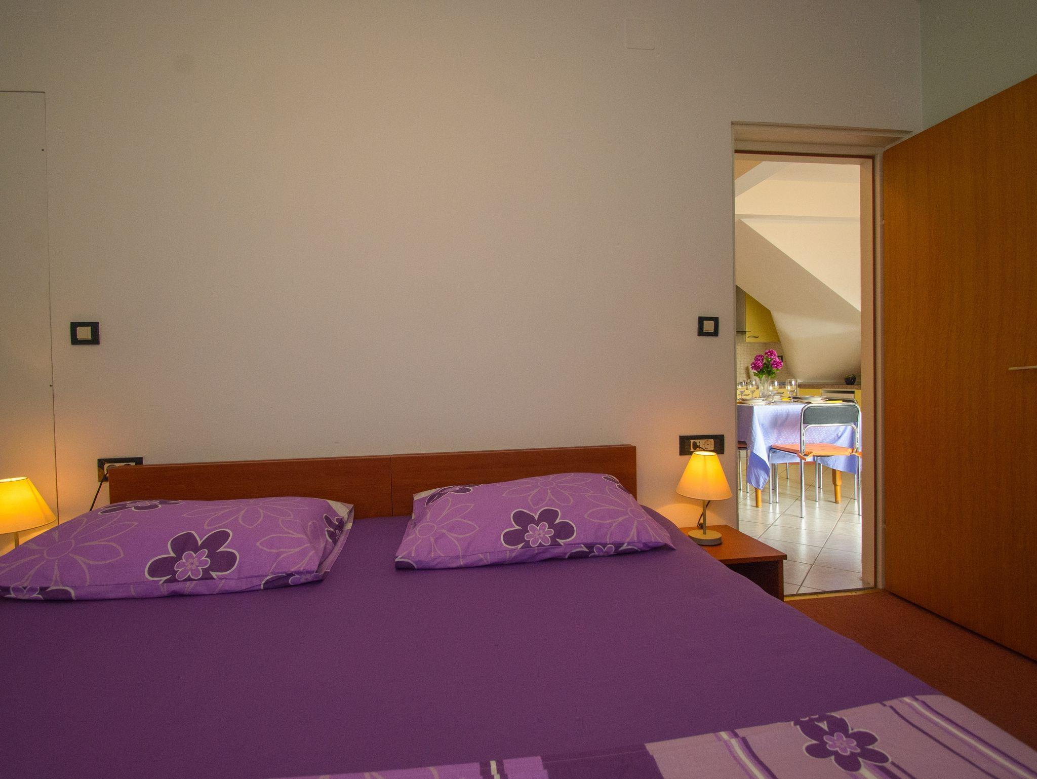 Ferienwohnung bietet Platz für 4 Gäste. Die Betten sind in Schlafzimmern, die es 1 gibt, und in Esszimmer, innerhalb einer Gesamtfläche von 34m2, angeordnet. Die Gäste haben eine eigene Terrasse zur Verfügung, auf der sie in warmen Sommernächten genießen können. Das Apartment bietet Meerblick. IM PREIS INBEGRIFFEN: Kurtaxe, Endreinigung, Klimatisierung, Parkplatz, Internet, Kinderbett, Zusatzbett, Bügeleisen, Föhn. VERBINDLICHE ZUSÄTZLICHE KOSTEN: Aufzahlung für Kurzaufenthalte (prozentualer Zuschlag pro Nächtigungsanzahl: 30% - 1, 20% - 2, 10% - 3). UNVERBINDLICHE ZUSÄTZLICHE KOSTEN: Bootsanlegeplatz (20,00 € pro Nacht). Die Verfügbarkeit zusätzlicher Dienstleistungen in Ihrem reservierten Termin und die Preise derselben (falls nicht aufgeführt) müssen im Voraus überprüft werden. Zusätzliche Dienstleistungen die in der Zahlungsaufforderung nicht aufgeführt sind werden direkt beim Vermieter bezahlt, angenommen der Gast nutzt auch diese.
