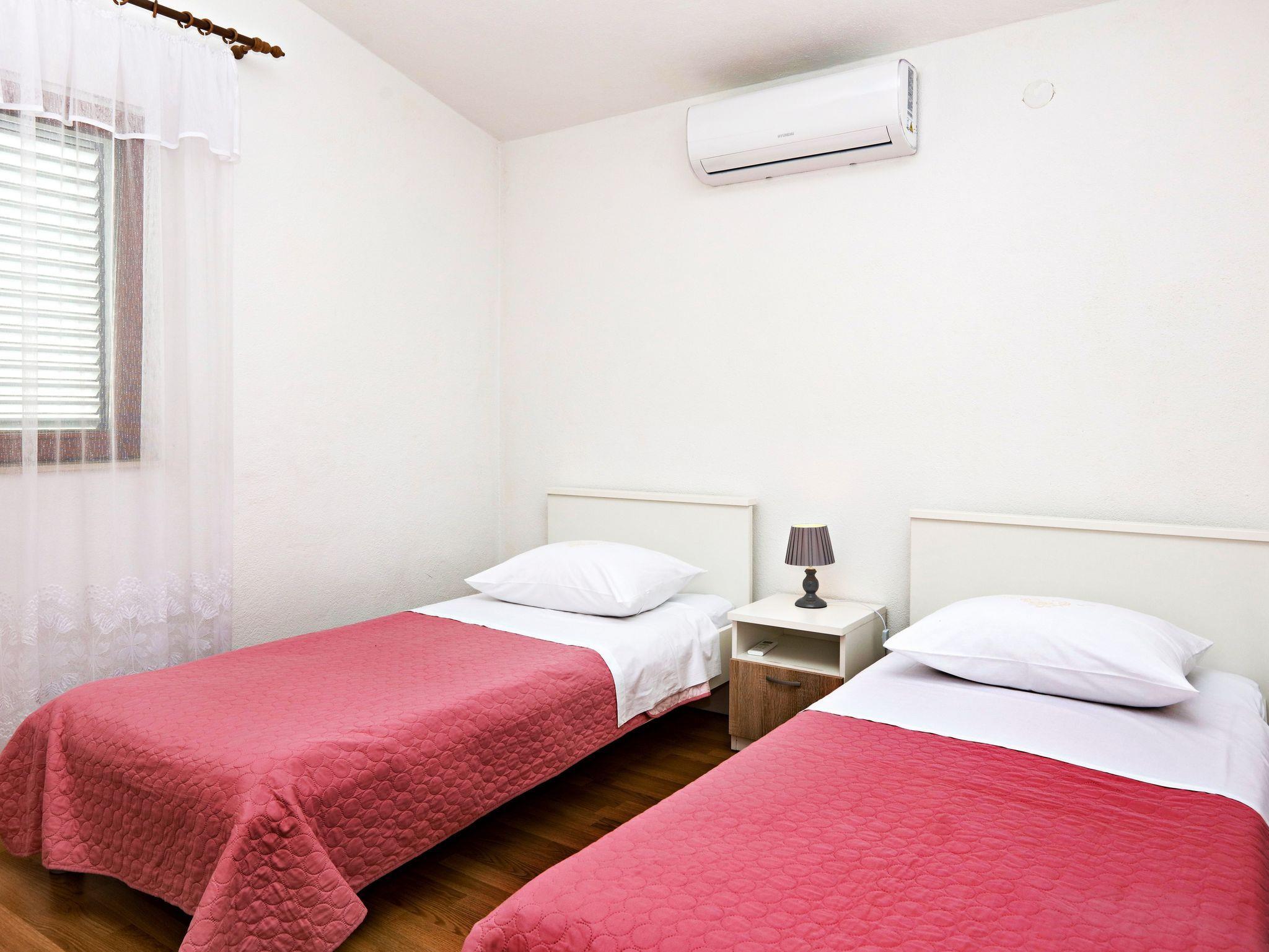 Ferienwohnung bietet Platz für 4 Gäste. Die Betten sind in Schlafzimmern, die es 2 gibt, innerhalb einer Gesamtfläche von 56m2, angeordnet. Die Gäste haben einen eigenen Balkon zur Verfügung, auf der sie in warmen Sommernächten genießen können. Das Apartment bietet Meerblick. Es ist erlaubt, Speisen auf dem Gemeinschafts-Grill vorzubereiten. IM PREIS INBEGRIFFEN: Kurtaxe, Endreinigung, Klimatisierung, Parkplatz, Internet, Wäschewaschen, Bügeleisen, Föhn. VERBINDLICHE ZUSÄTZLICHE KOSTEN: Aufzahlung für Kurzaufenthalte (prozentualer Zuschlag pro Nächtigungsanzahl: 30% - 1, 20% - 2, 10% - 3). Die Verfügbarkeit zusätzlicher Dienstleistungen in Ihrem reservierten Termin und die Preise derselben (falls nicht aufgeführt) müssen im Voraus überprüft werden. Zusätzliche Dienstleistungen die in der Zahlungsaufforderung nicht aufgeführt sind werden direkt beim Vermieter bezahlt, angenommen der Gast nutzt auch diese.