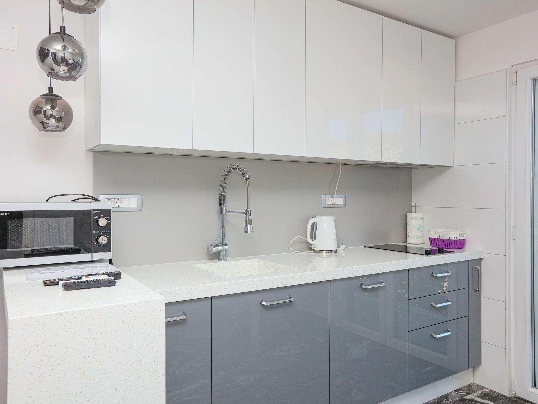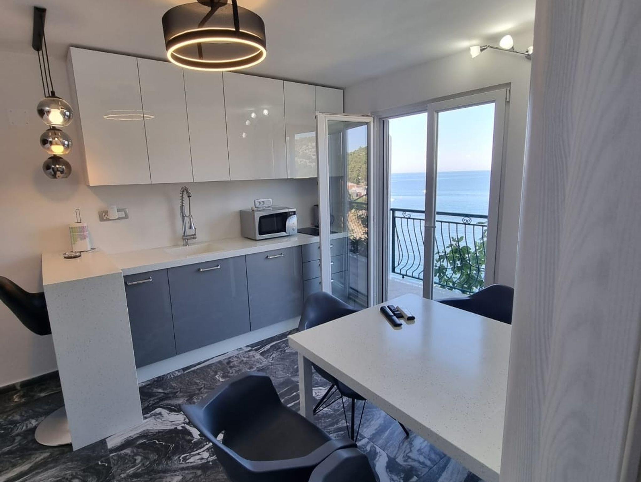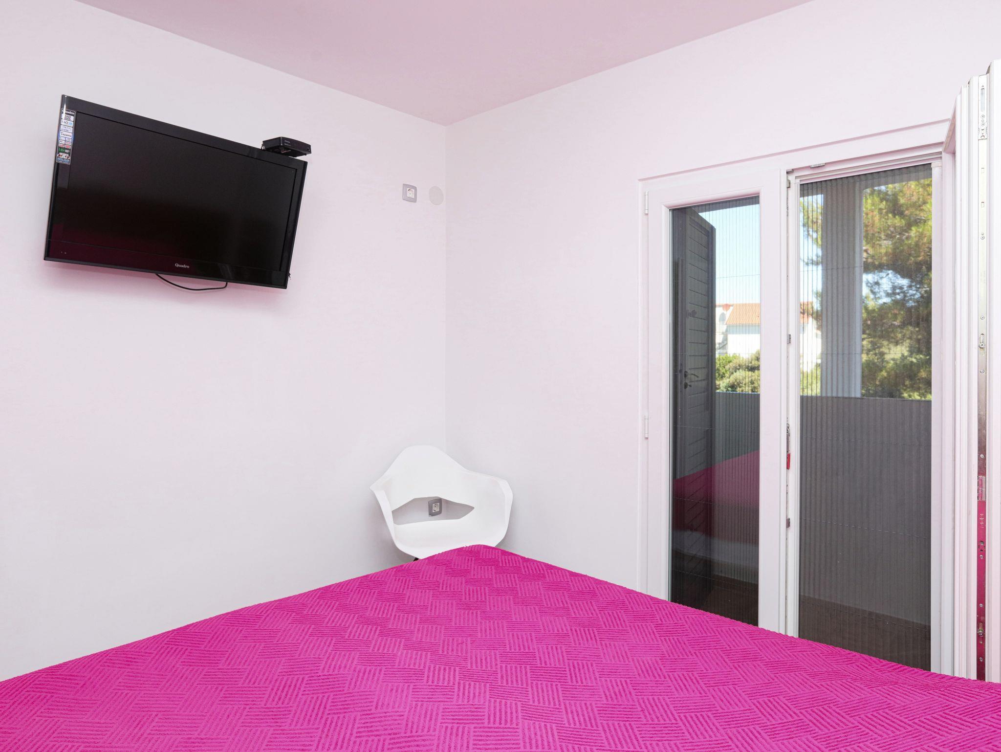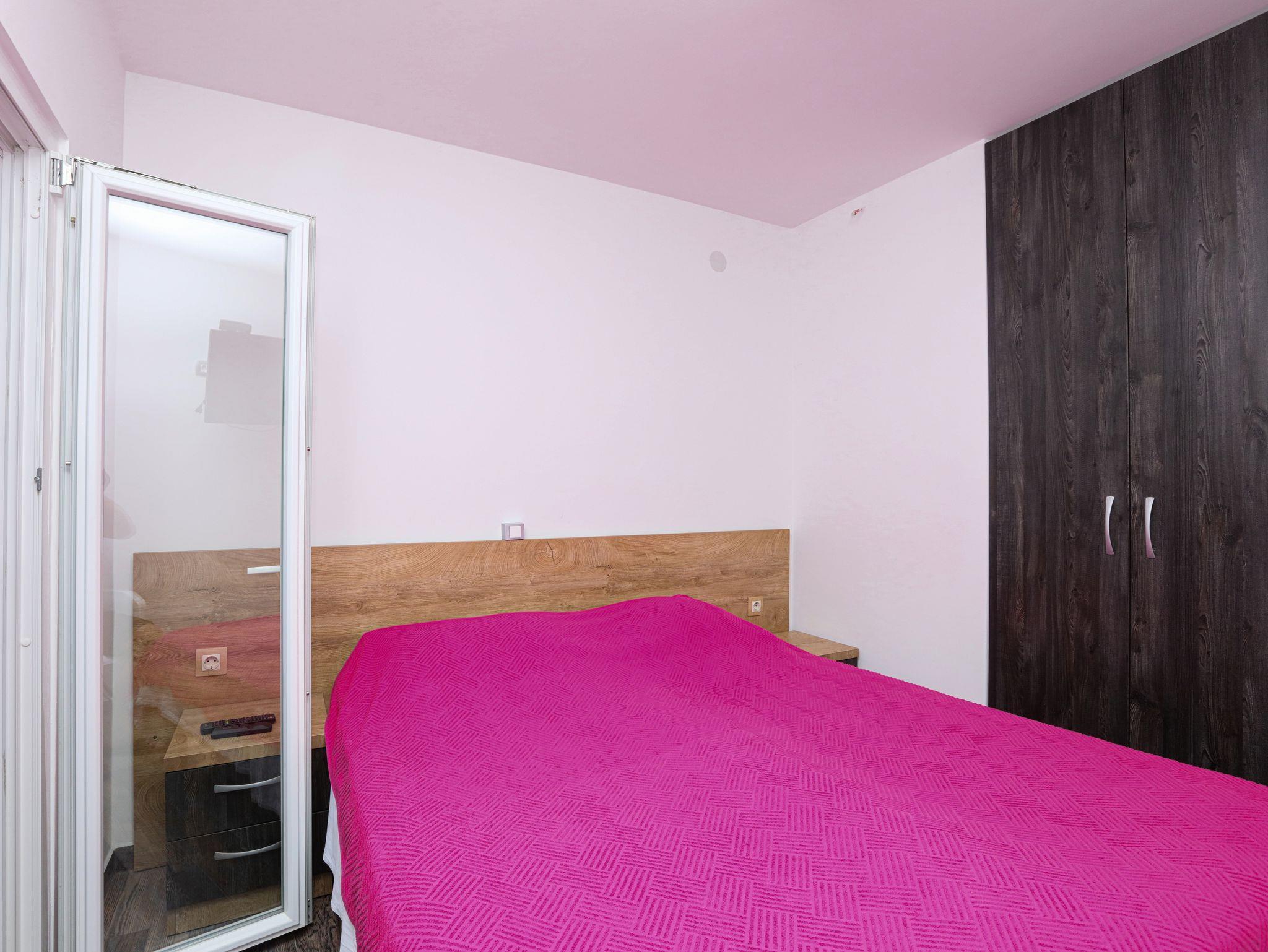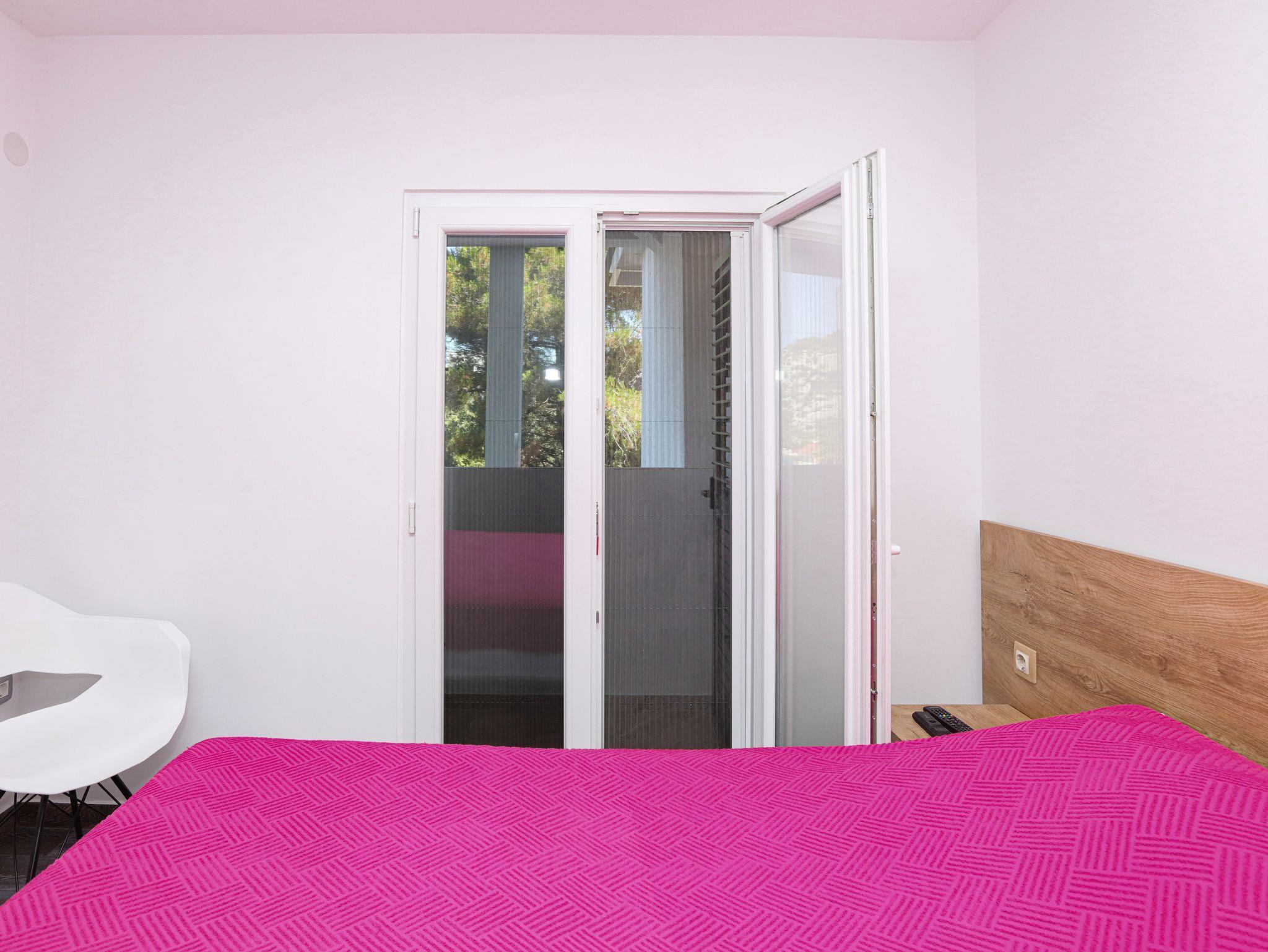 Ferienwohnung bietet Platz für 4 Gäste. Die Betten sind in Schlafzimmern, die es 2 gibt, innerhalb einer Gesamtfläche von 35m2, angeordnet. Die Gäste haben einen eigenen Balkon zur Verfügung, auf der sie in warmen Sommernächten genießen können. Das Apartment bietet Meerblick. Es ist erlaubt, Speisen auf dem Gemeinschafts-Grill vorzubereiten. IM PREIS INBEGRIFFEN: Kurtaxe, Endreinigung, Klimatisierung, Parkplatz, Internet, Bootsanlegeplatz, Kinderbett, Bügeleisen, Bügelbrett, tragbarer Grill, Sonnenschirm. VERBINDLICHE ZUSÄTZLICHE KOSTEN: Aufzahlung für Kurzaufenthalte (prozentualer Zuschlag pro Nächtigungsanzahl: 30% - 1, 20% - 2, 10% - 3). Die Verfügbarkeit zusätzlicher Dienstleistungen in Ihrem reservierten Termin und die Preise derselben (falls nicht aufgeführt) müssen im Voraus überprüft werden. Zusätzliche Dienstleistungen die in der Zahlungsaufforderung nicht aufgeführt sind werden direkt beim Vermieter bezahlt, angenommen der Gast nutzt auch diese. Ermäßigung auf den Grundpreis: Gratistag 14=13 (bei einem Aufenthalt von 14 Tagen oder mehr erhalten Sie einen Gratistag für den Aufenthalt bis 31.12.26).
