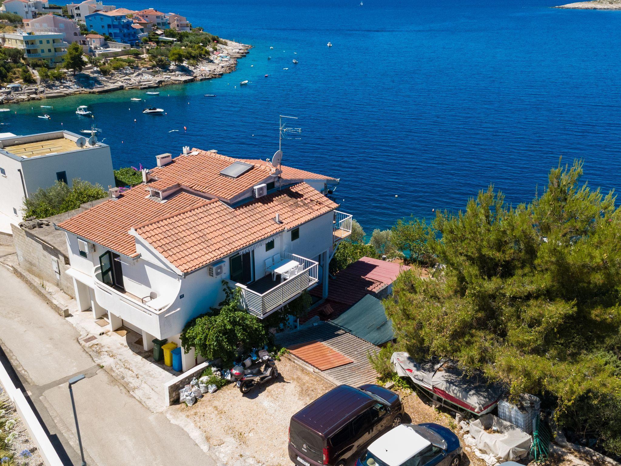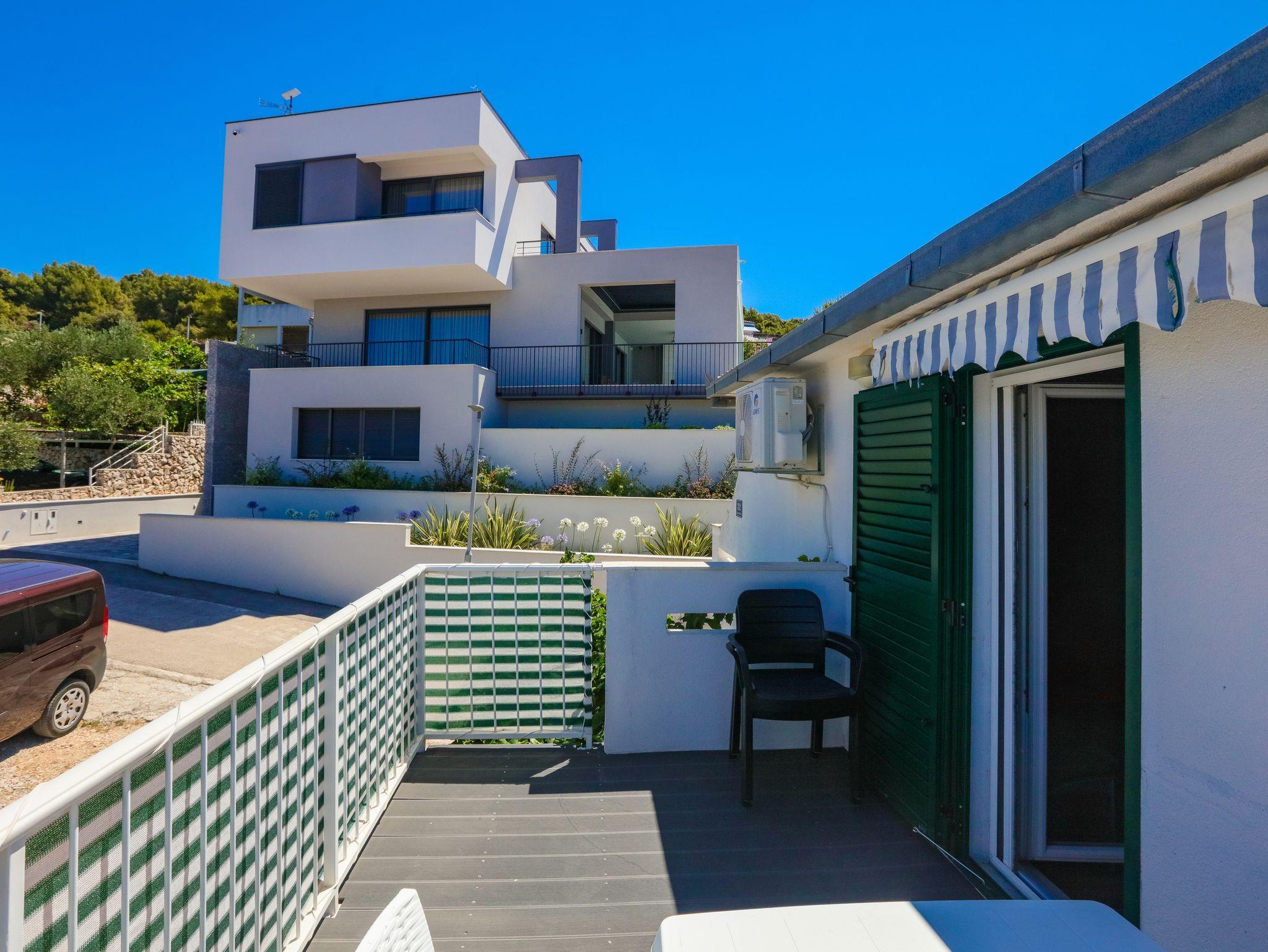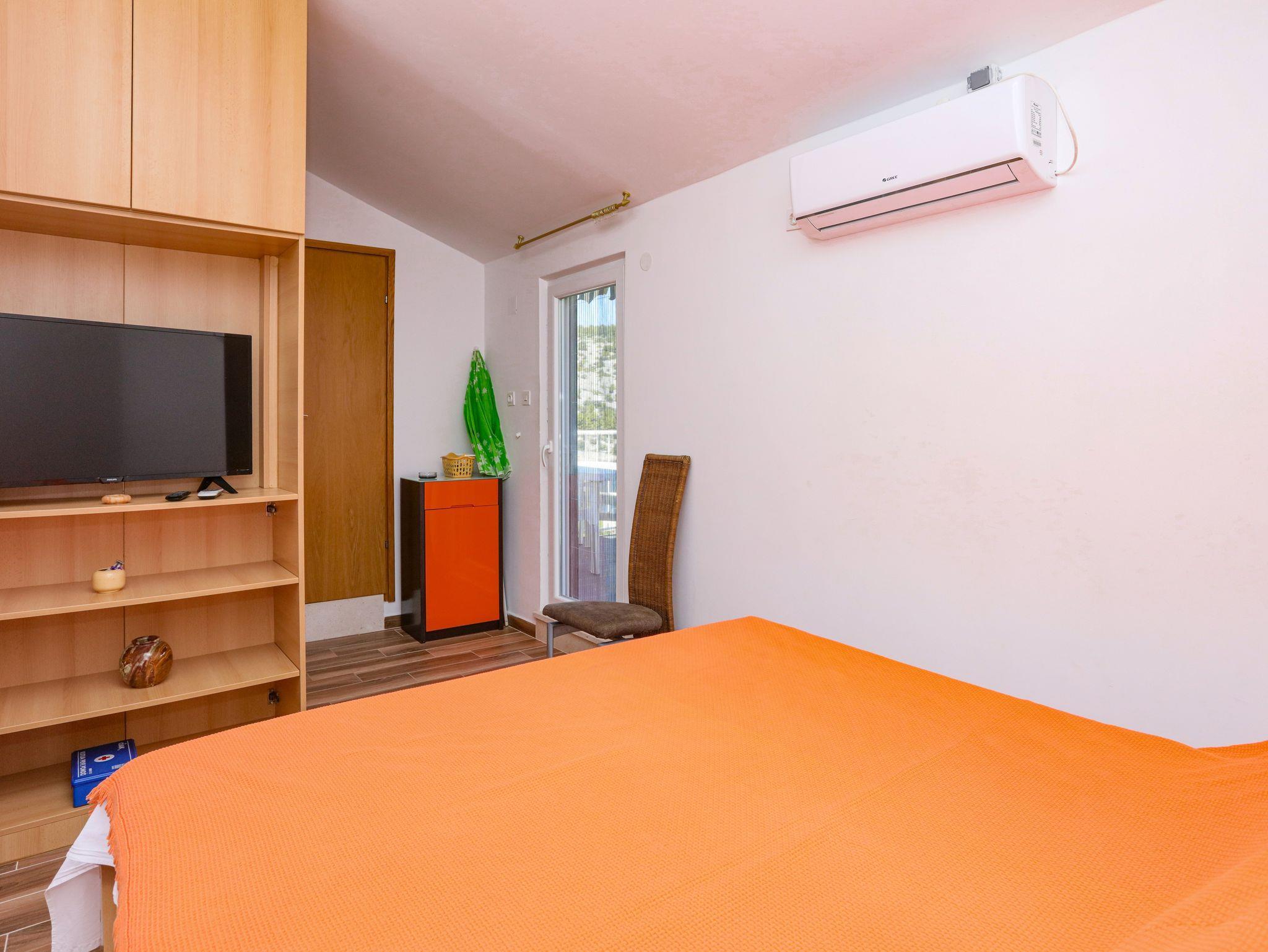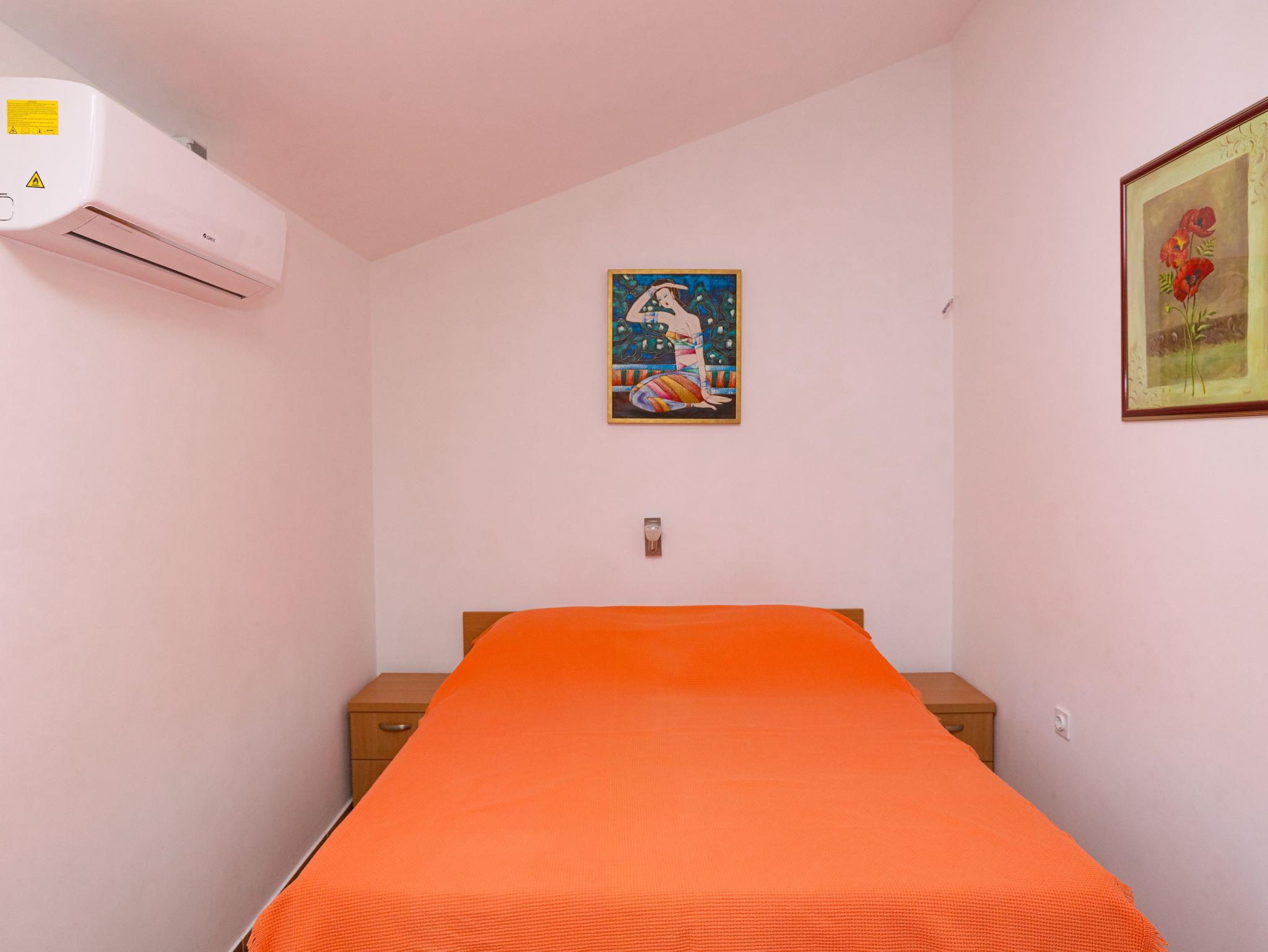 Ferienwohnung bietet Platz für 4 Gäste. Die Betten sind in Schlafzimmern, die es 1 gibt, und in Esszimmer, innerhalb einer Gesamtfläche von 28m2, angeordnet. Die Gäste haben eine eigene Terrasse zur Verfügung, auf der sie in warmen Sommernächten genießen können. Das Apartment bietet Meerblick. Es ist erlaubt, Speisen auf dem Gemeinschafts-Grill vorzubereiten. IM PREIS INBEGRIFFEN: Kurtaxe, Endreinigung, Klimatisierung, Parkplatz, Internet, Bootsanlegeplatz, Kinderbett, Bügeleisen, Bügelbrett, tragbarer Grill, Sonnenschirm. VERBINDLICHE ZUSÄTZLICHE KOSTEN: Aufzahlung für Kurzaufenthalte (prozentualer Zuschlag pro Nächtigungsanzahl: 30% - 1, 20% - 2, 10% - 3). Die Verfügbarkeit zusätzlicher Dienstleistungen in Ihrem reservierten Termin und die Preise derselben (falls nicht aufgeführt) müssen im Voraus überprüft werden. Zusätzliche Dienstleistungen die in der Zahlungsaufforderung nicht aufgeführt sind werden direkt beim Vermieter bezahlt, angenommen der Gast nutzt auch diese. Ermäßigung auf den Grundpreis: Gratistag 14=13 (bei einem Aufenthalt von 14 Tagen oder mehr erhalten Sie einen Gratistag für den Aufenthalt bis 31.12.26).