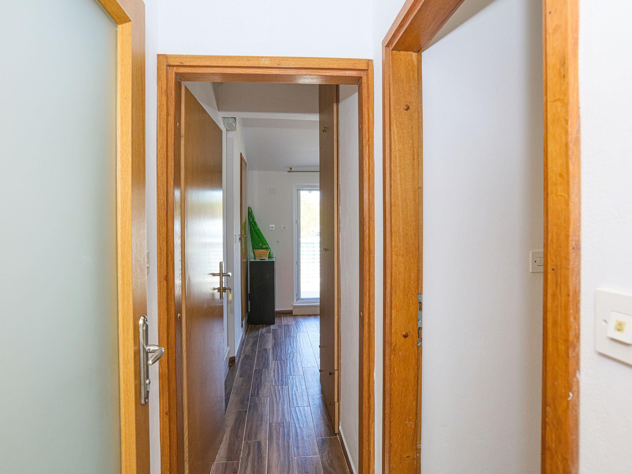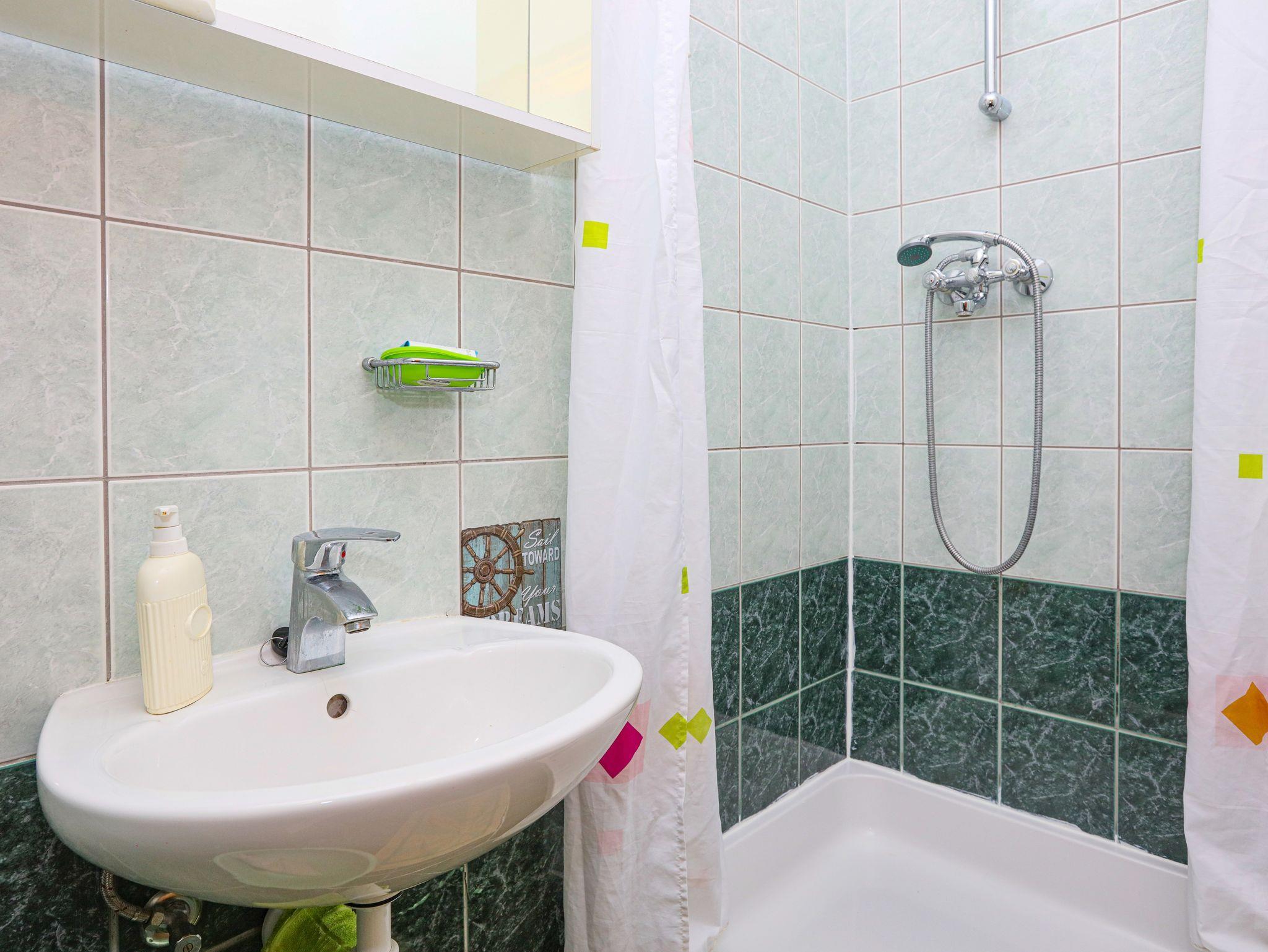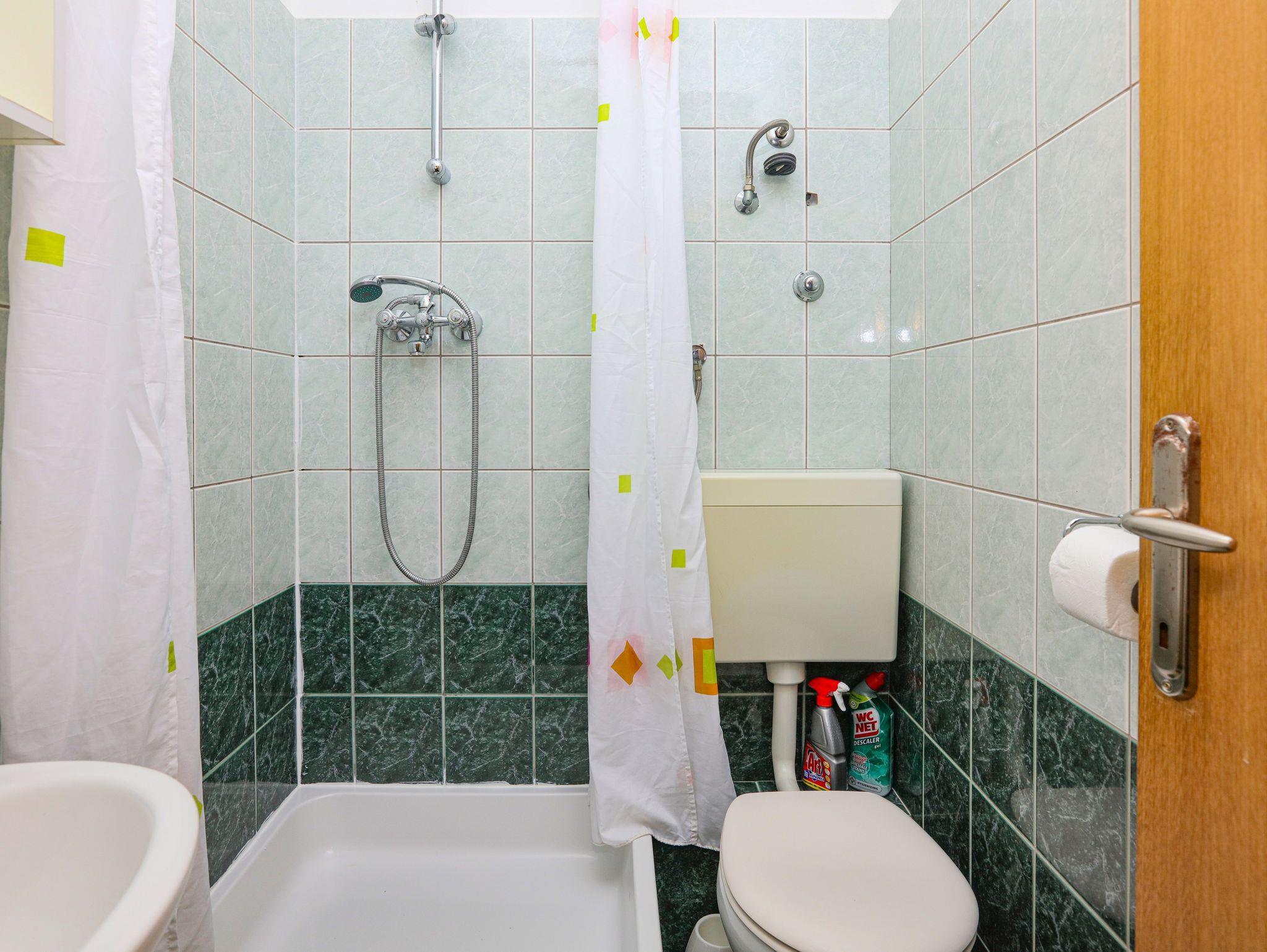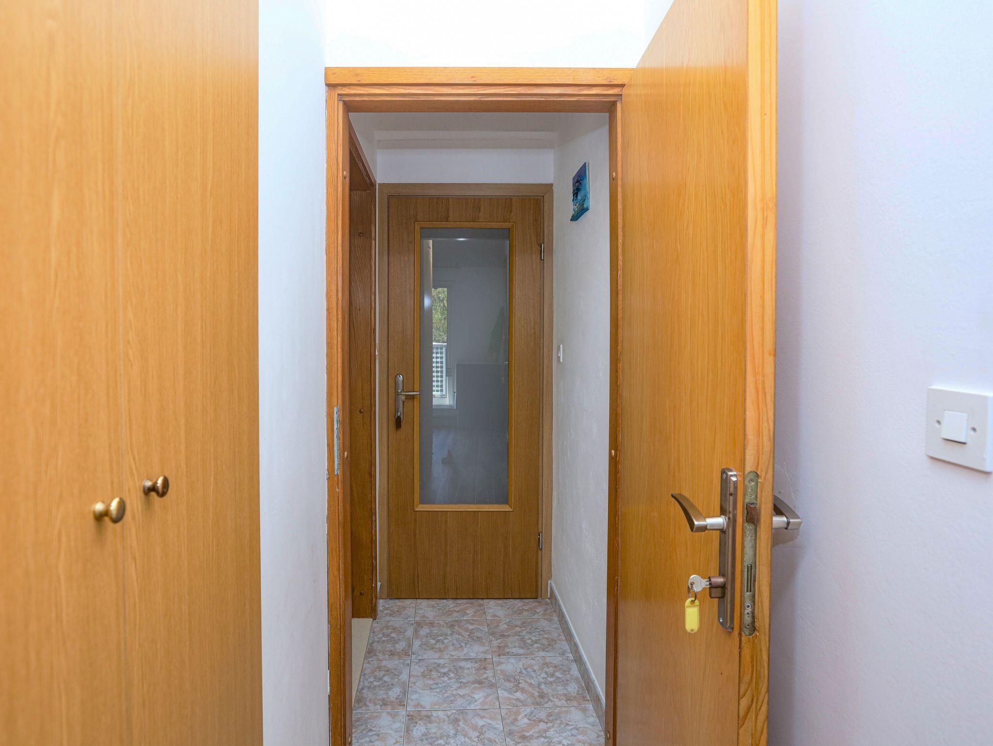 Ferienwohnung bietet Platz für 4 Gäste. Die Betten sind in Schlafzimmern, die es 1 gibt, und in Esszimmer, innerhalb einer Gesamtfläche von 28m2, angeordnet. Die Gäste haben eine eigene Terrasse zur Verfügung, auf der sie in warmen Sommernächten genießen können. Das Apartment bietet Meerblick. Es ist erlaubt, Speisen auf dem Gemeinschafts-Grill vorzubereiten. IM PREIS INBEGRIFFEN: Kurtaxe, Endreinigung, Klimatisierung, Parkplatz, Internet, Bootsanlegeplatz, Kinderbett, Bügeleisen, Bügelbrett, tragbarer Grill, Sonnenschirm. VERBINDLICHE ZUSÄTZLICHE KOSTEN: Aufzahlung für Kurzaufenthalte (prozentualer Zuschlag pro Nächtigungsanzahl: 30% - 1, 20% - 2, 10% - 3). Die Verfügbarkeit zusätzlicher Dienstleistungen in Ihrem reservierten Termin und die Preise derselben (falls nicht aufgeführt) müssen im Voraus überprüft werden. Zusätzliche Dienstleistungen die in der Zahlungsaufforderung nicht aufgeführt sind werden direkt beim Vermieter bezahlt, angenommen der Gast nutzt auch diese. Ermäßigung auf den Grundpreis: Gratistag 14=13 (bei einem Aufenthalt von 14 Tagen oder mehr erhalten Sie einen Gratistag für den Aufenthalt bis 31.12.26).