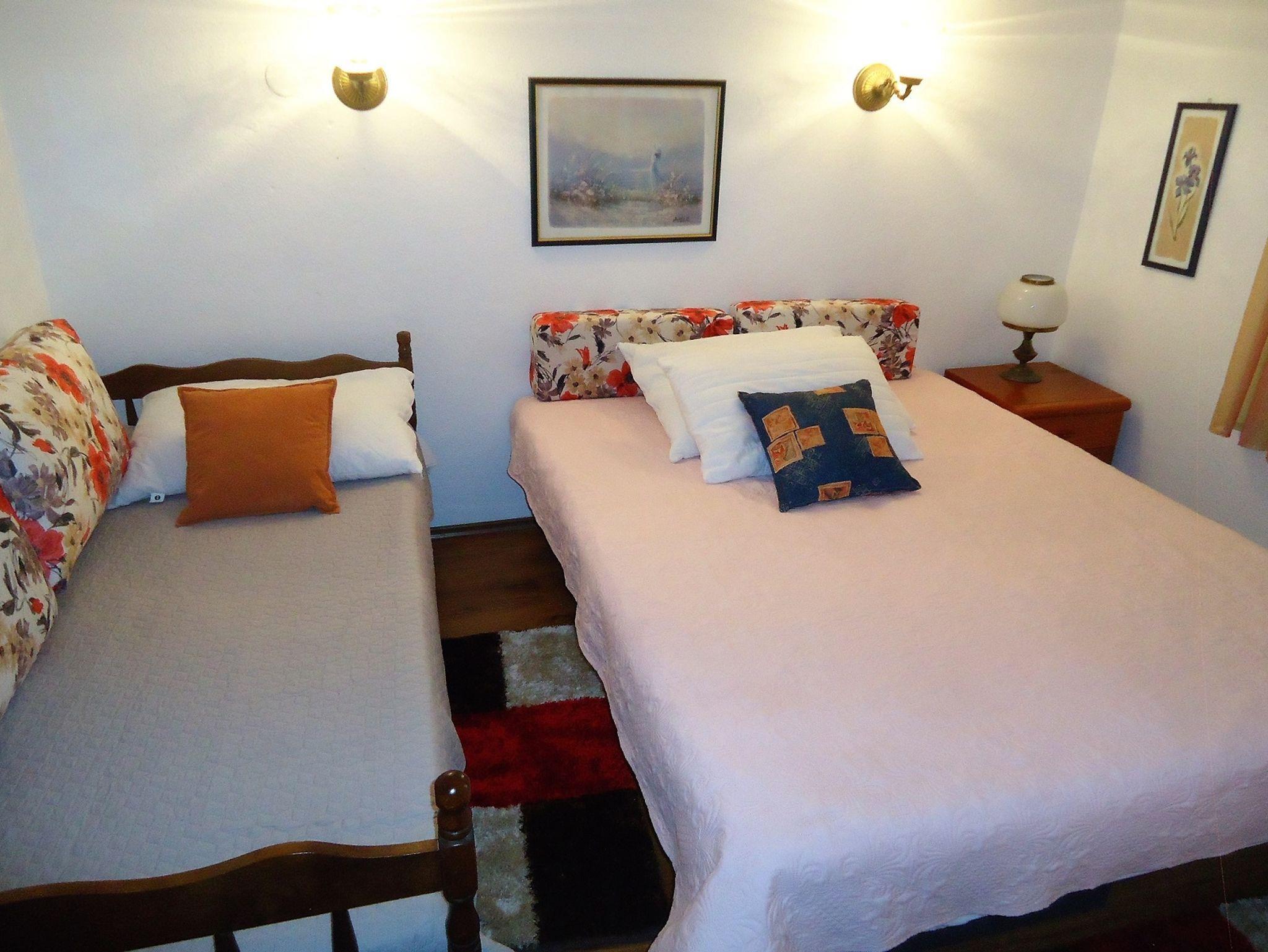 Ferienwohnung bietet Platz für 5 Gäste. Die Betten sind in Schlafzimmern, die es 2 gibt, innerhalb einer Gesamtfläche von 45m2, angeordnet. Die Gäste haben eine eigene Terrasse zur Verfügung, auf der sie in warmen Sommernächten genießen können. Es ist erlaubt, Speisen auf dem Gemeinschafts-Grill vorzubereiten. IM PREIS INBEGRIFFEN: Kurtaxe, Endreinigung, Klimatisierung, Parkplatz, Internet, Kinderbett, Zusatzbett, Bügeleisen, Bügelbrett, Föhn. VERBINDLICHE ZUSÄTZLICHE KOSTEN: Aufzahlung für Kurzaufenthalte (prozentualer Zuschlag pro Nächtigungsanzahl: 30% - 1, 20% - 2, 10% - 3). Die Verfügbarkeit zusätzlicher Dienstleistungen in Ihrem reservierten Termin und die Preise derselben (falls nicht aufgeführt) müssen im Voraus überprüft werden. Zusätzliche Dienstleistungen die in der Zahlungsaufforderung nicht aufgeführt sind werden direkt beim Vermieter bezahlt, angenommen der Gast nutzt auch diese. Ermäßigung auf den Grundpreis: Gratistag 14=13 (bei einem Aufenthalt von 14 Tagen oder mehr erhalten Sie einen Gratistag für den Aufenthalt bis 31.12.26).