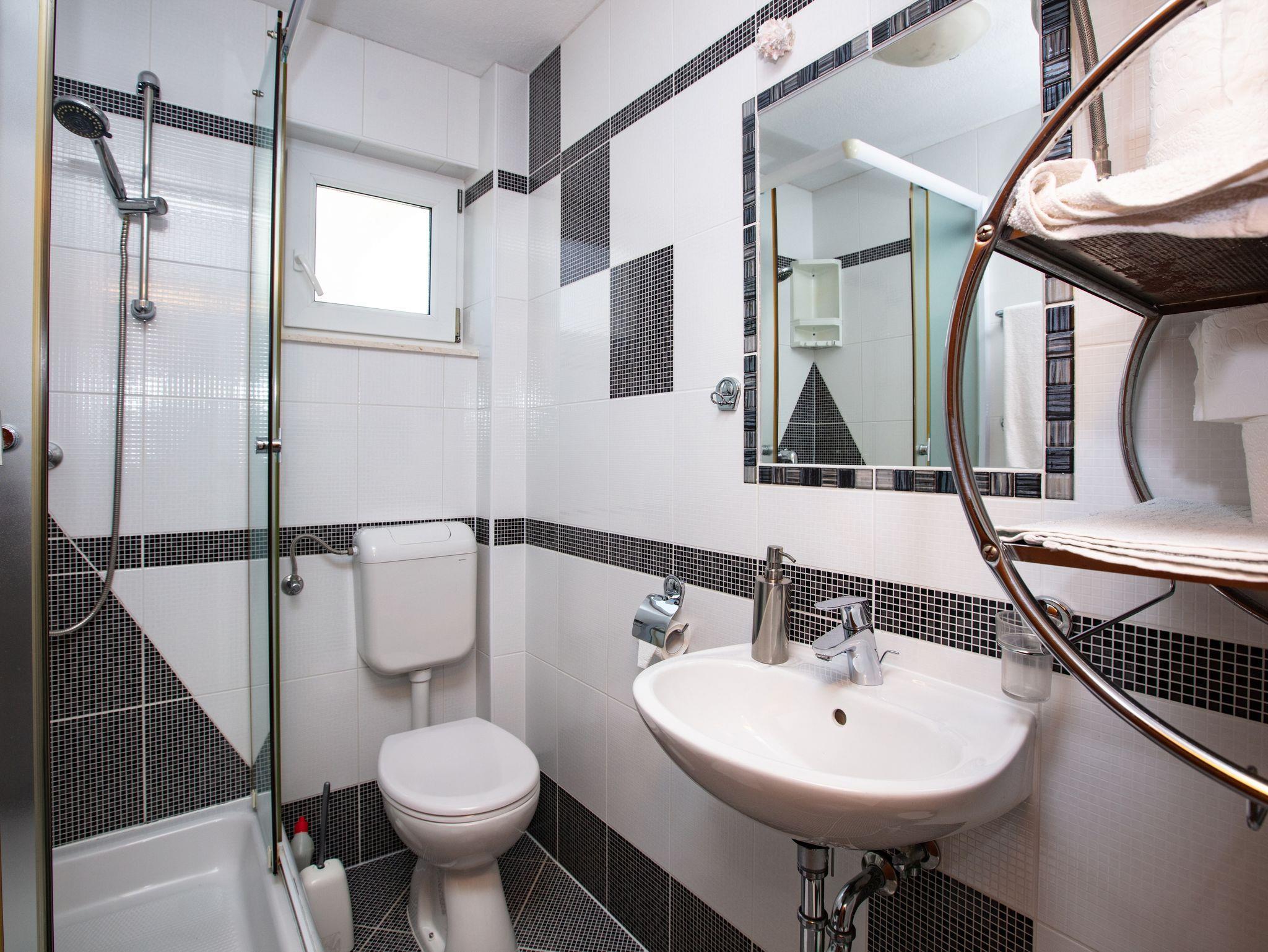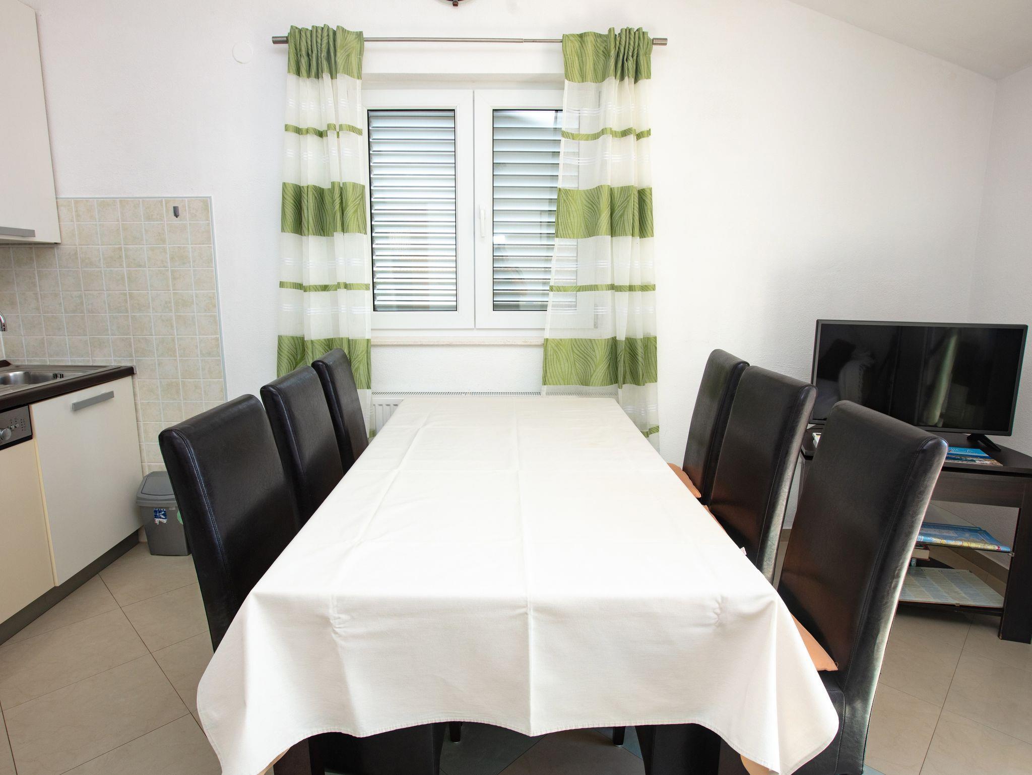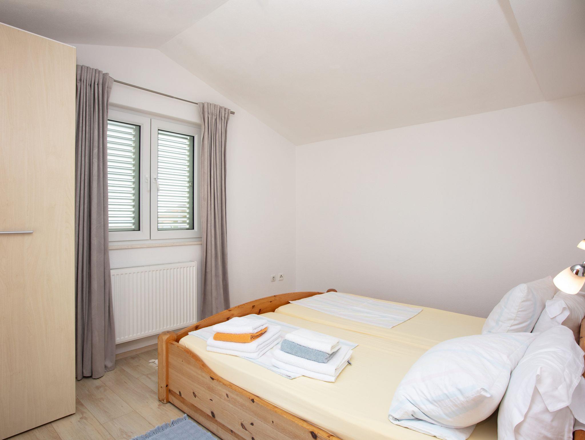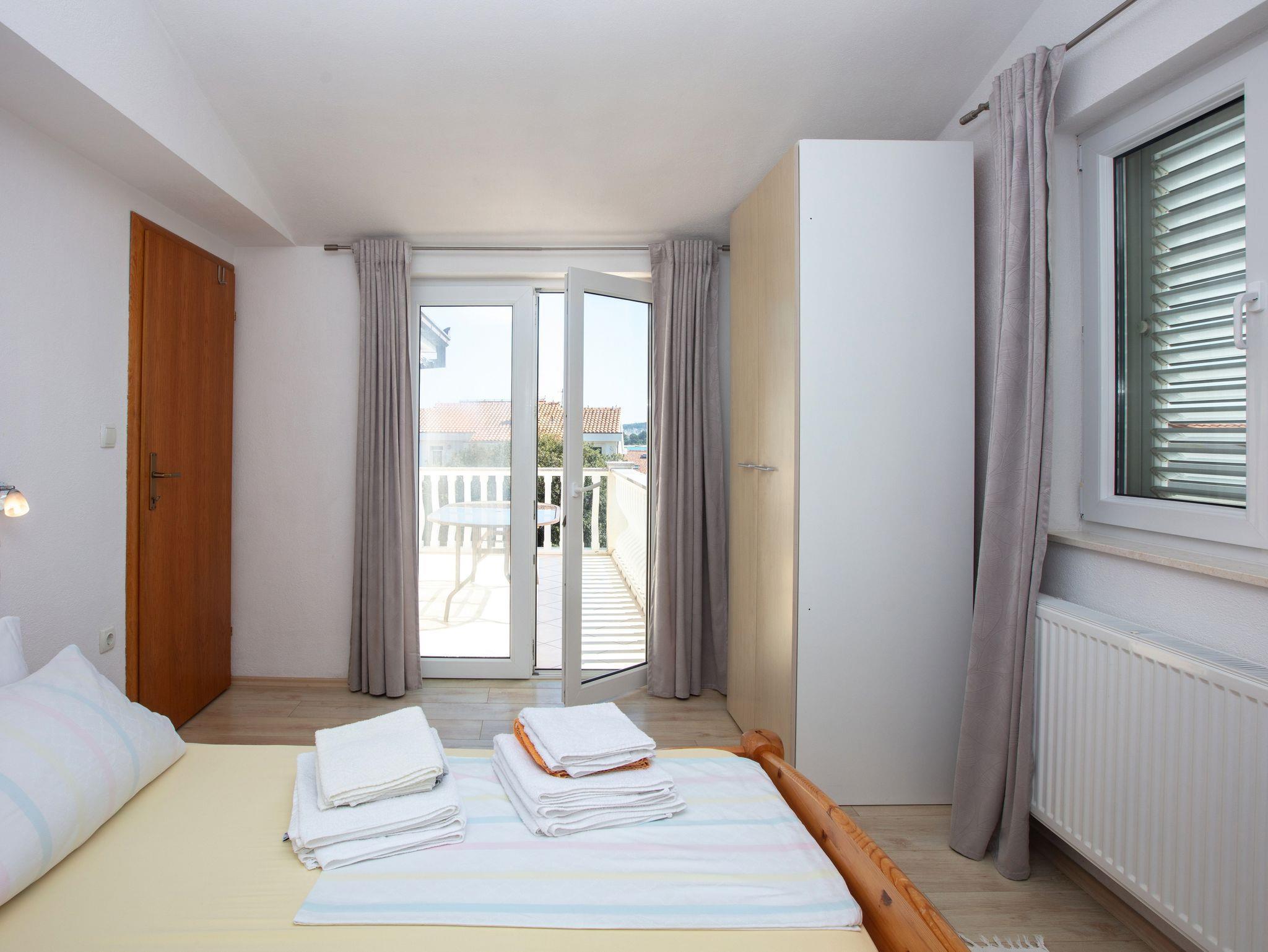 Ferienwohnung bietet Platz für 5 Gäste. Die Betten sind in Schlafzimmern, die es 2 gibt, und in Wohnzimmer, innerhalb einer Gesamtfläche von 47m2, angeordnet. Die Gäste haben eine eigene Terrasse zur Verfügung, auf der sie in warmen Sommernächten genießen können. Das Apartment bietet Meerblick. Es ist erlaubt, Speisen auf dem Gemeinschafts-Grill vorzubereiten. IM PREIS INBEGRIFFEN: Kurtaxe, Endreinigung, Klimatisierung, Zentralheizung, Parkplatz, Internet, Bügeleisen, Bügelbrett, Föhn. VERBINDLICHE ZUSÄTZLICHE KOSTEN: Aufzahlung für Kurzaufenthalte (prozentualer Zuschlag pro Nächtigungsanzahl: 30% - 1, 20% - 2, 10% - 3). UNVERBINDLICHE ZUSÄTZLICHE KOSTEN: Wäschewaschen (5,00 € Waschen), Bootsanlegeplatz (3,00 € pro Nacht). Die Verfügbarkeit zusätzlicher Dienstleistungen in Ihrem reservierten Termin und die Preise derselben (falls nicht aufgeführt) müssen im Voraus überprüft werden. Zusätzliche Dienstleistungen die in der Zahlungsaufforderung nicht aufgeführt sind werden direkt beim Vermieter bezahlt, angenommen der Gast nutzt auch diese.