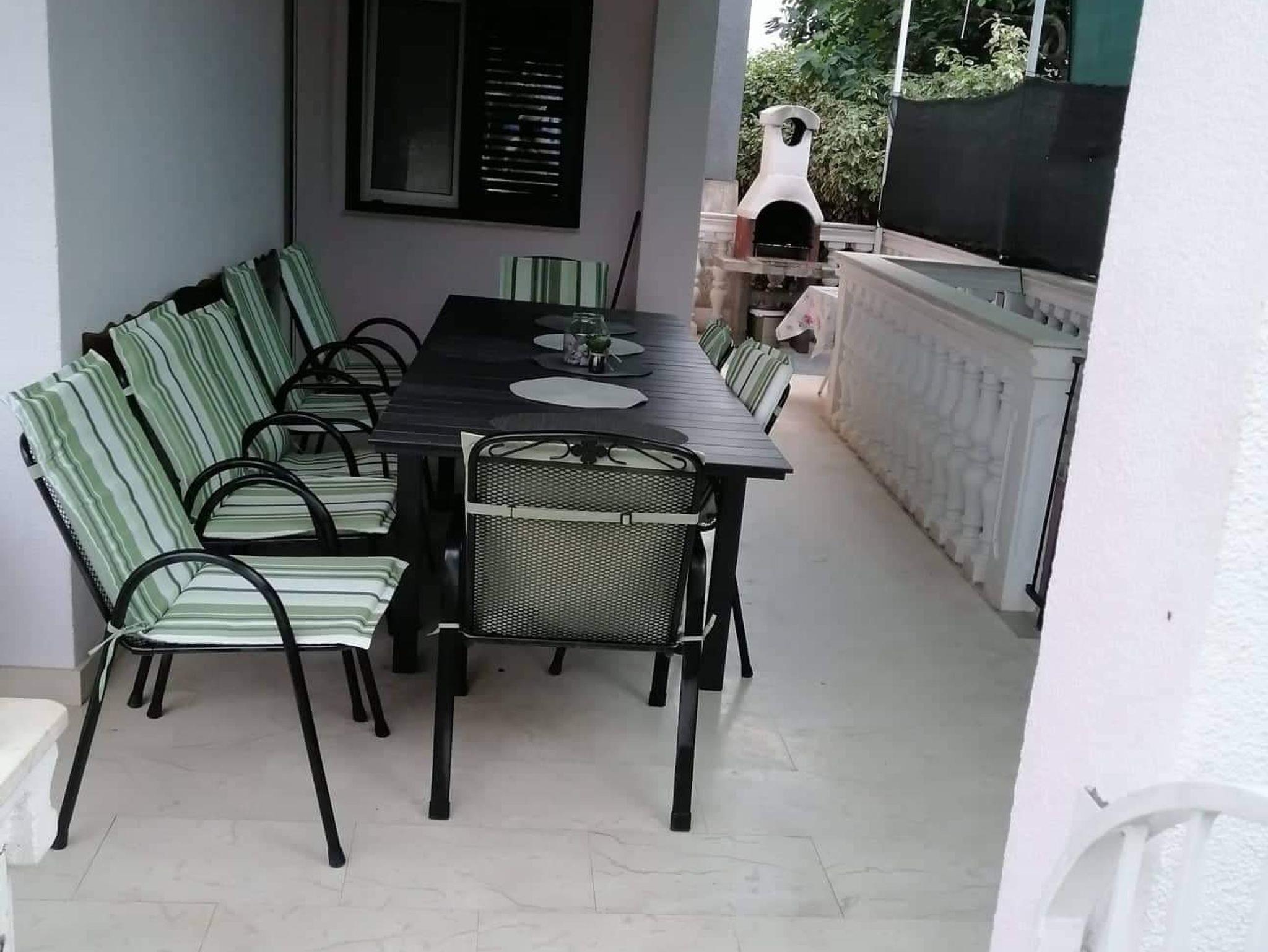 Haus bietet Platz für 12 Gäste. Die Betten sind in Schlafzimmern, die es 5 gibt, und in Wohnzimmer, innerhalb einer Gesamtfläche von 106m2, angeordnet. Die Gäste haben eine eigene Terrasse zur Verfügung, auf der sie in warmen Sommernächten genießen können. Für vollen Genuss und Entspannung gibt es einen privaten Grill für Gäste dieser Unterkunft. Räume der gebuchten Unterkunftseinheit werden nicht in eine Ganze verbunden. IM PREIS INBEGRIFFEN: Kurtaxe, Endreinigung, Klimatisierung, Parkplatz, Internet, Kinderbett, Föhn. VERBINDLICHE ZUSÄTZLICHE KOSTEN: Aufzahlung für Kurzaufenthalte (prozentualer Zuschlag pro Nächtigungsanzahl: 30% - 1, 20% - 2, 10% - 3). UNVERBINDLICHE ZUSÄTZLICHE KOSTEN: Bootsanlegeplatz (10,00 € pro Nacht). Die Verfügbarkeit zusätzlicher Dienstleistungen in Ihrem reservierten Termin und die Preise derselben (falls nicht aufgeführt) müssen im Voraus überprüft werden. Zusätzliche Dienstleistungen die in der Zahlungsaufforderung nicht aufgeführt sind werden direkt beim Vermieter bezahlt, angenommen der Gast nutzt auch diese.