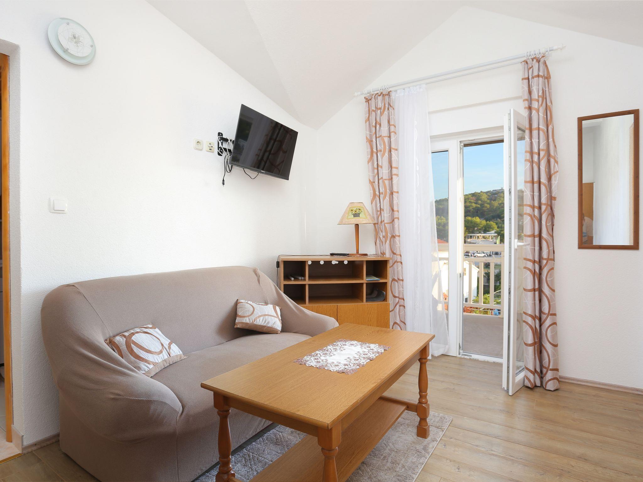 Ferienwohnung bietet Platz für 4 Gäste. Die Betten sind in Schlafzimmern, die es 1 gibt, und in Wohnzimmer, innerhalb einer Gesamtfläche von 29m2, angeordnet. Die Gäste haben einen eigenen Balkon zur Verfügung, auf der sie in warmen Sommernächten genießen können. Das Apartment bietet Meerblick. Es ist erlaubt, Speisen auf dem Gemeinschafts-Grill vorzubereiten. IM PREIS INBEGRIFFEN: Kurtaxe, Endreinigung, Klimatisierung, Parkplatz, Internet, Kinderbett, Bügeleisen, Bügelbrett. VERBINDLICHE ZUSÄTZLICHE KOSTEN: Aufzahlung für Kurzaufenthalte (prozentualer Zuschlag pro Nächtigungsanzahl: 30% - 1, 20% - 2, 10% - 3). UNVERBINDLICHE ZUSÄTZLICHE KOSTEN: Wäschewaschen (1,00 € Waschen). Die Verfügbarkeit zusätzlicher Dienstleistungen in Ihrem reservierten Termin und die Preise derselben (falls nicht aufgeführt) müssen im Voraus überprüft werden. Zusätzliche Dienstleistungen die in der Zahlungsaufforderung nicht aufgeführt sind werden direkt beim Vermieter bezahlt, angenommen der Gast nutzt auch diese.