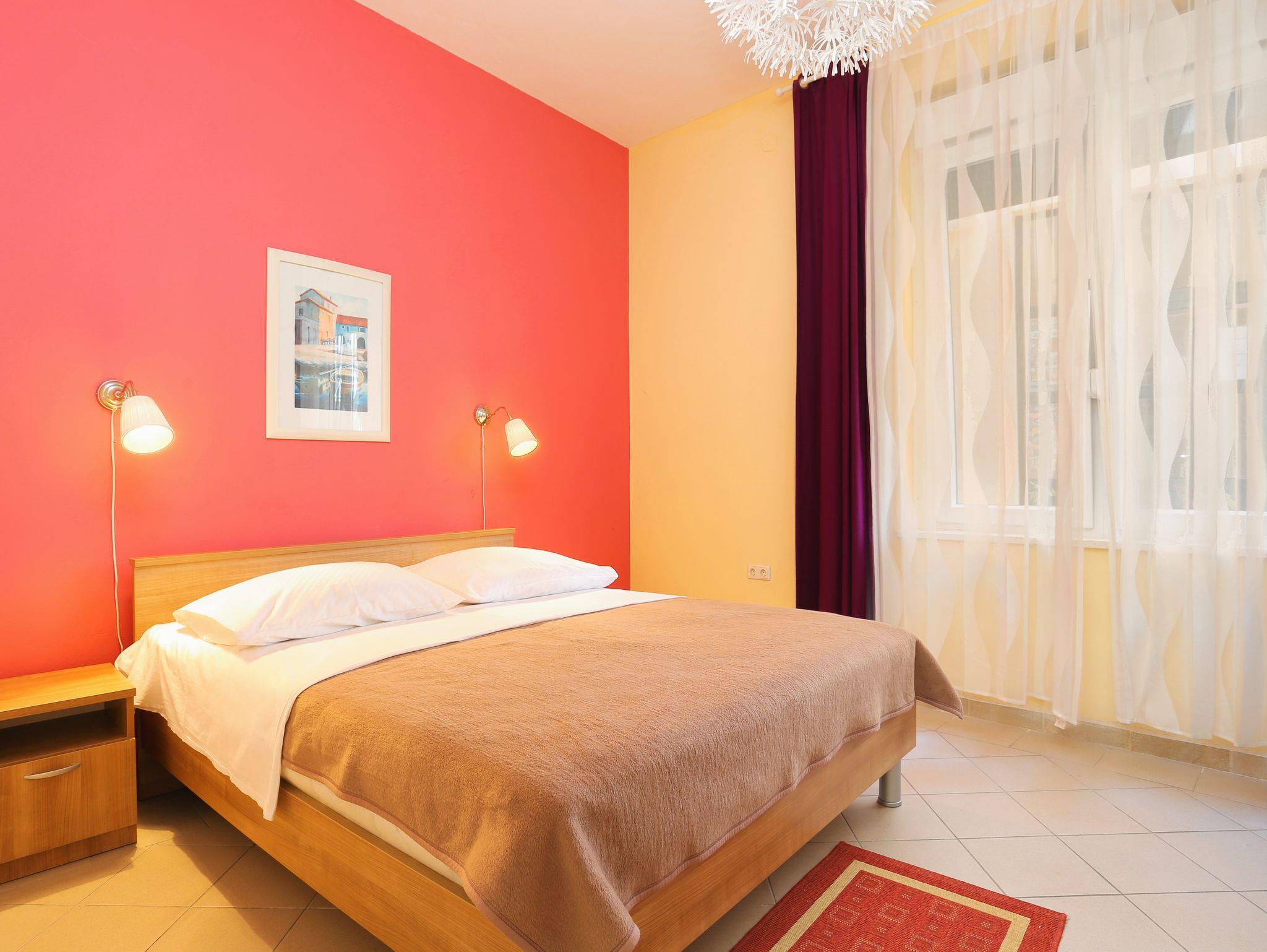 Ferienwohnung bietet Platz für 6 Gäste. Die Betten sind in Schlafzimmern, die es 2 gibt, und in Wohnzimmer, innerhalb einer Gesamtfläche von 54m2, angeordnet. Die Gäste haben eine eigene Terrasse zur Verfügung, auf der sie in warmen Sommernächten genießen können. Das Apartment bietet Meerblick. Es ist erlaubt, Speisen auf dem Gemeinschafts-Grill vorzubereiten. In der Unterkunftseinheit besteht die Möglichkeit des Mitbringens von Haustieren gegen Aufpreis. IM PREIS INBEGRIFFEN: Kurtaxe, Endreinigung, Klimatisierung, Parkplatz, Internet, Kinderbett, Föhn. VERBINDLICHE ZUSÄTZLICHE KOSTEN: Aufzahlung für Kurzaufenthalte (prozentualer Zuschlag pro Nächtigungsanzahl: 30% - 1, 20% - 2, 10% - 3). UNVERBINDLICHE ZUSÄTZLICHE KOSTEN: Bootsanlegeplatz (25,00 € pro Nacht), Haustiere (20,00 € pro Nacht). Die Verfügbarkeit zusätzlicher Dienstleistungen in Ihrem reservierten Termin und die Preise derselben (falls nicht aufgeführt) müssen im Voraus überprüft werden. Zusätzliche Dienstleistungen die in der Zahlungsaufforderung nicht aufgeführt sind werden direkt beim Vermieter bezahlt, angenommen der Gast nutzt auch diese.