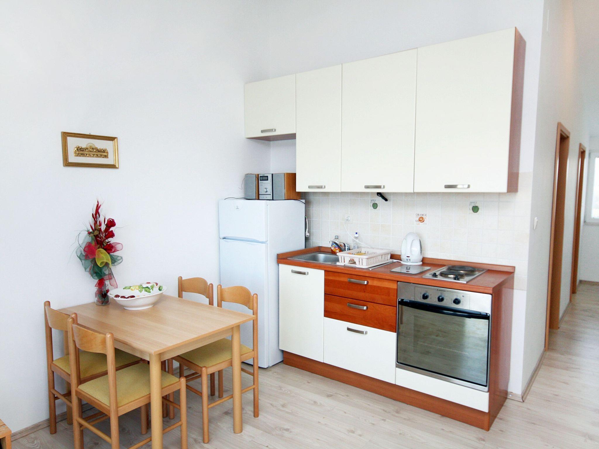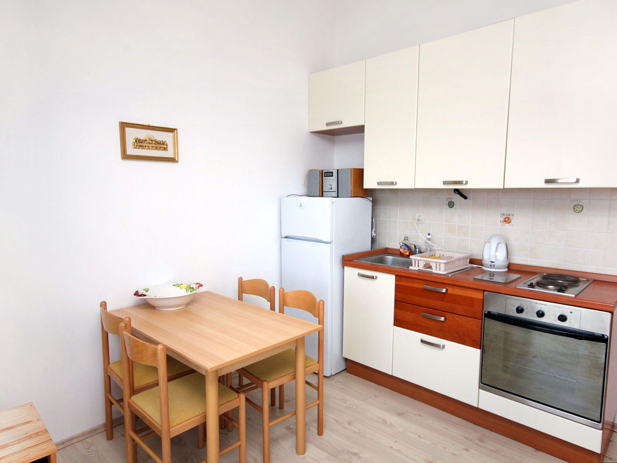 Ferienwohnung bietet Platz für 4 Gäste. Die Betten sind in Schlafzimmern, die es 1 gibt, und in Wohnzimmer, innerhalb einer Gesamtfläche von 29m2, angeordnet. Die Gäste haben eine eigene Terrasse zur Verfügung, auf der sie in warmen Sommernächten genießen können. Das Apartment bietet Meerblick. Es ist erlaubt, Speisen auf dem Gemeinschafts-Grill vorzubereiten. IM PREIS INBEGRIFFEN: Kurtaxe, Endreinigung, Klimatisierung, Parkplatz, Internet, Wäschewaschen, Bootsanlegeplatz, Kinderbett, Bügeleisen, Bügelbrett, Föhn, Sonnenschirm. VERBINDLICHE ZUSÄTZLICHE KOSTEN: Aufzahlung für Kurzaufenthalte (prozentualer Zuschlag pro Nächtigungsanzahl: 30% - 1, 20% - 2, 10% - 3). UNVERBINDLICHE ZUSÄTZLICHE KOSTEN: Fahrrad (5,00 € täglich (pro Stück)), Zusatzbett (10,00 € pro Nacht). Die Verfügbarkeit zusätzlicher Dienstleistungen in Ihrem reservierten Termin und die Preise derselben (falls nicht aufgeführt) müssen im Voraus überprüft werden. Zusätzliche Dienstleistungen die in der Zahlungsaufforderung nicht aufgeführt sind werden direkt beim Vermieter bezahlt, angenommen der Gast nutzt auch diese.
